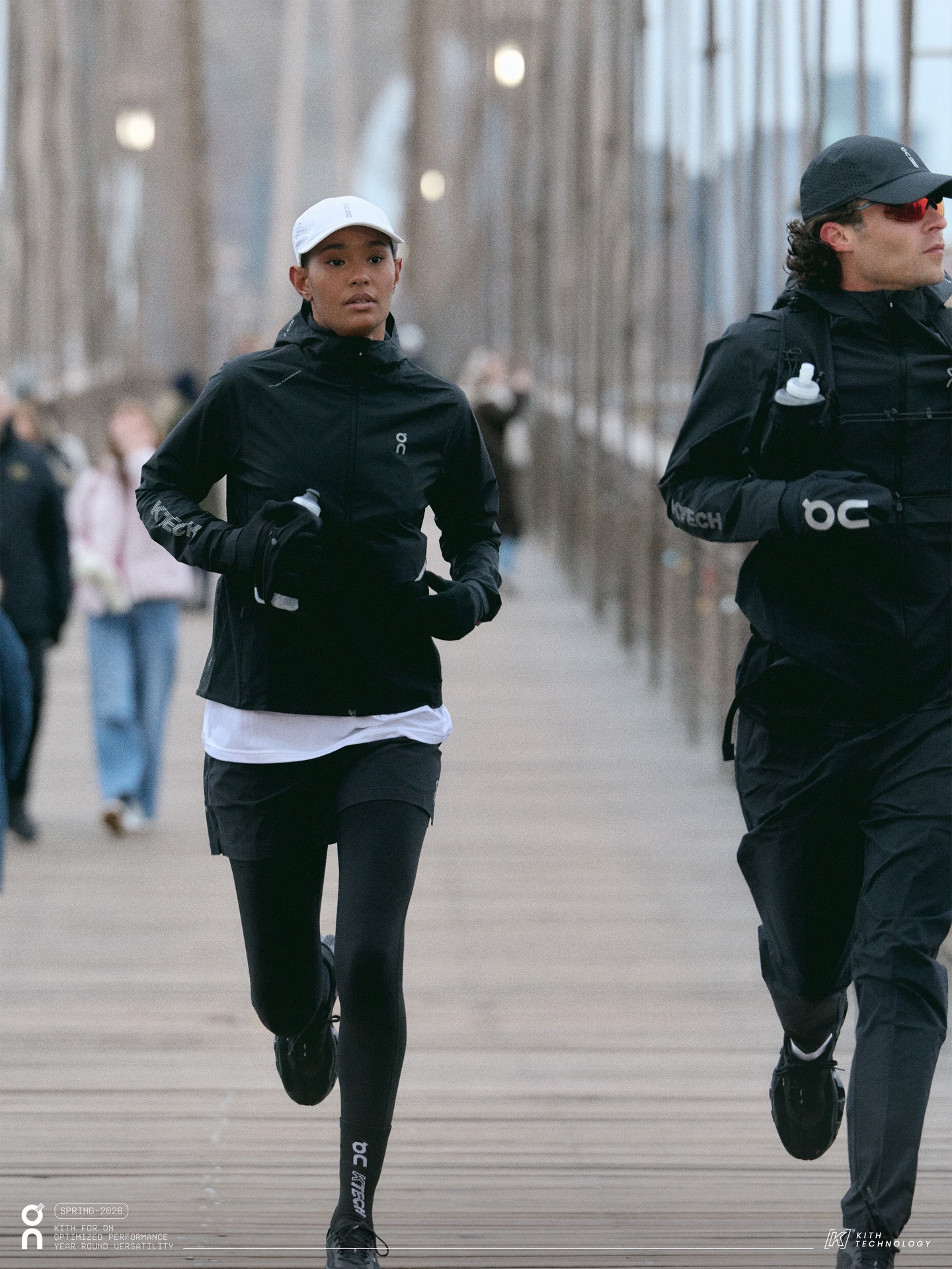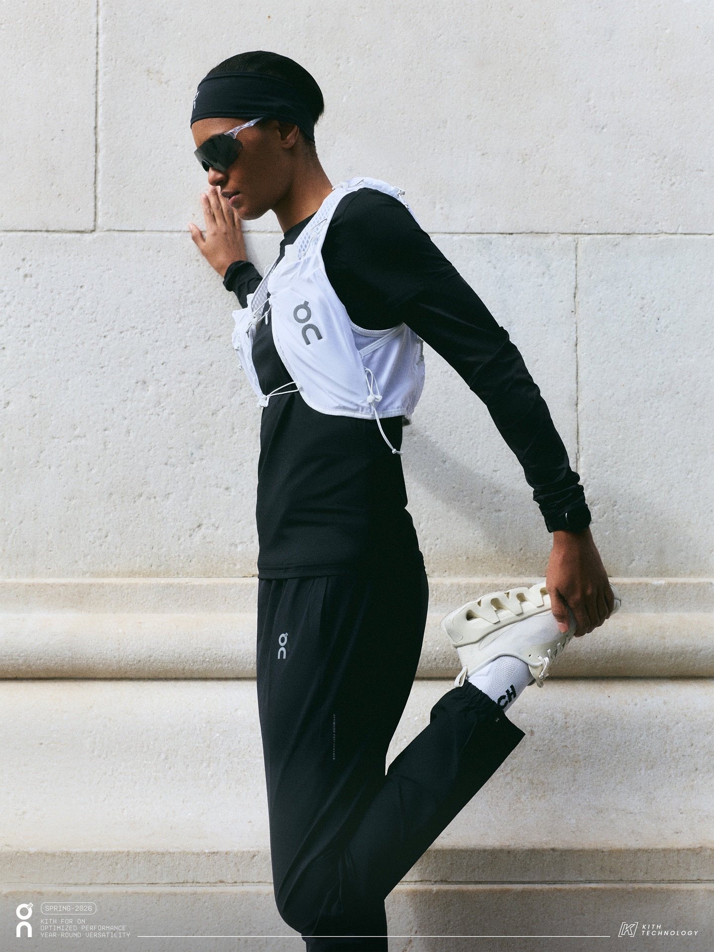 两款新鞋均采用全新 Cloudswift® 中底和 KITH Monogram 纹理外底,配备定制的联名鞋扣,采用开放式网眼衬里和合成麂皮覆面,兼具透气性和灵活性。两款新鞋均有三个配色可供选择。KITH 还重新设计了 On 的 Core 系列,包括夹克、T 恤、背心、运动文胸、短裤和长裤。新系列还将推出跑步配件,例如黑白两色的 Lightweight 2.0 帽子和 Waist Pack Lite 2L 腰包,后者作为 Monday Program 的先行产品,在服装和鞋款发布前推出。