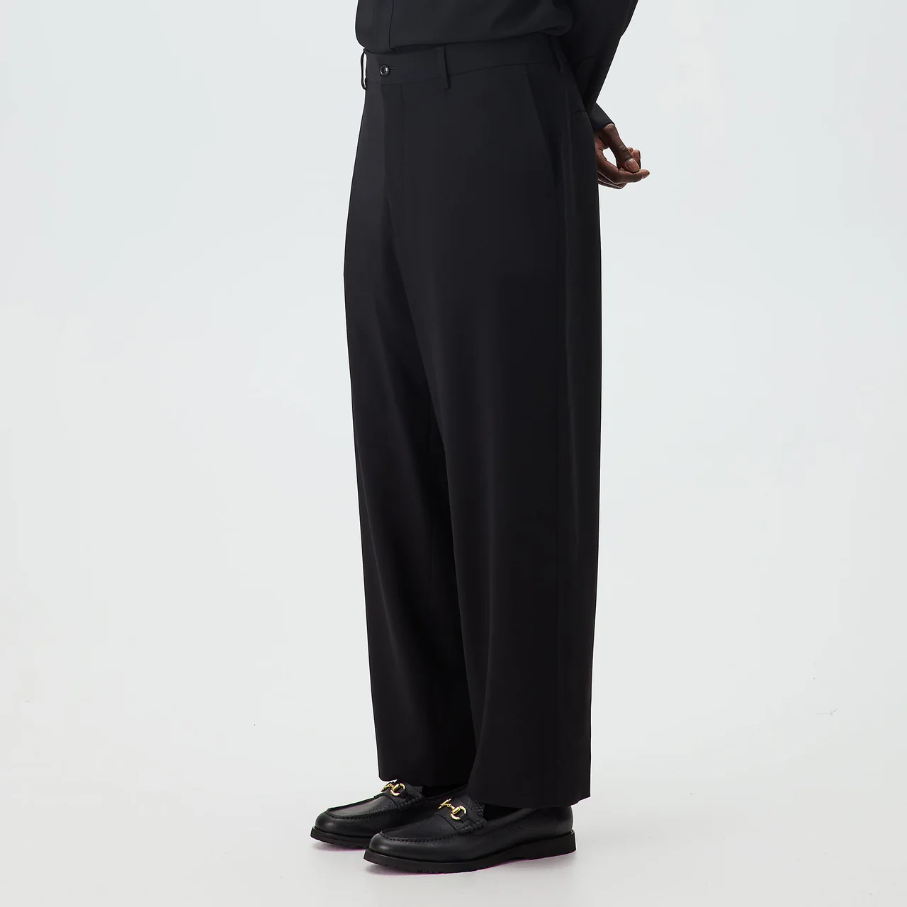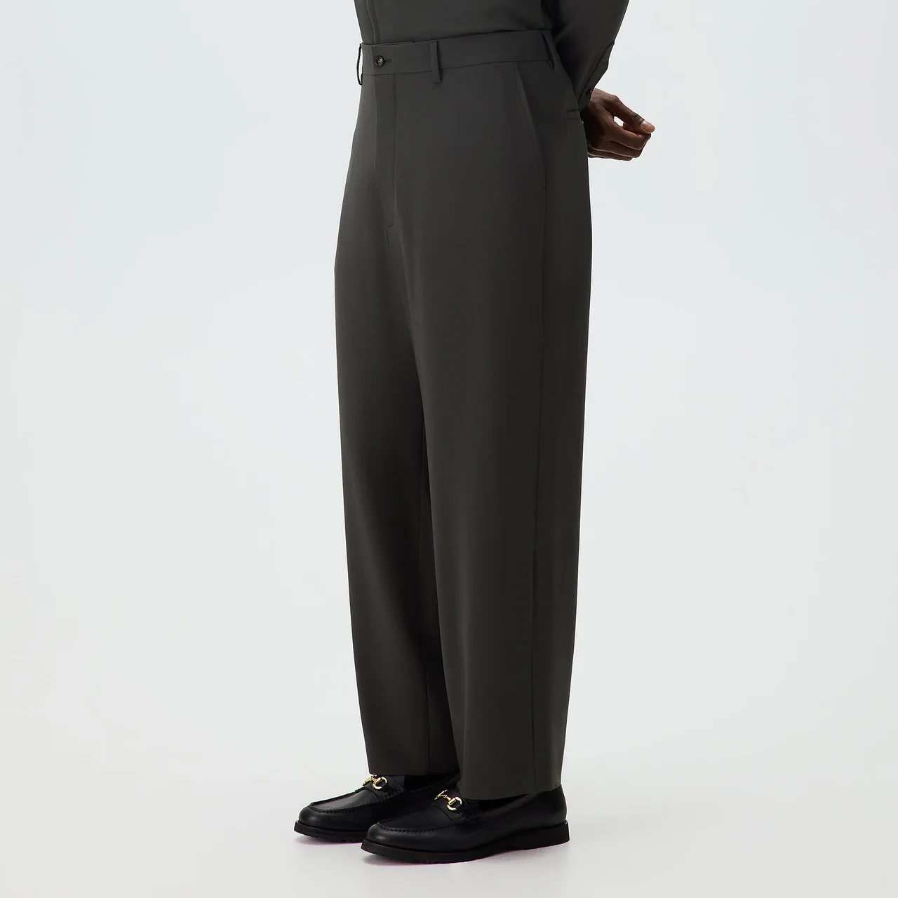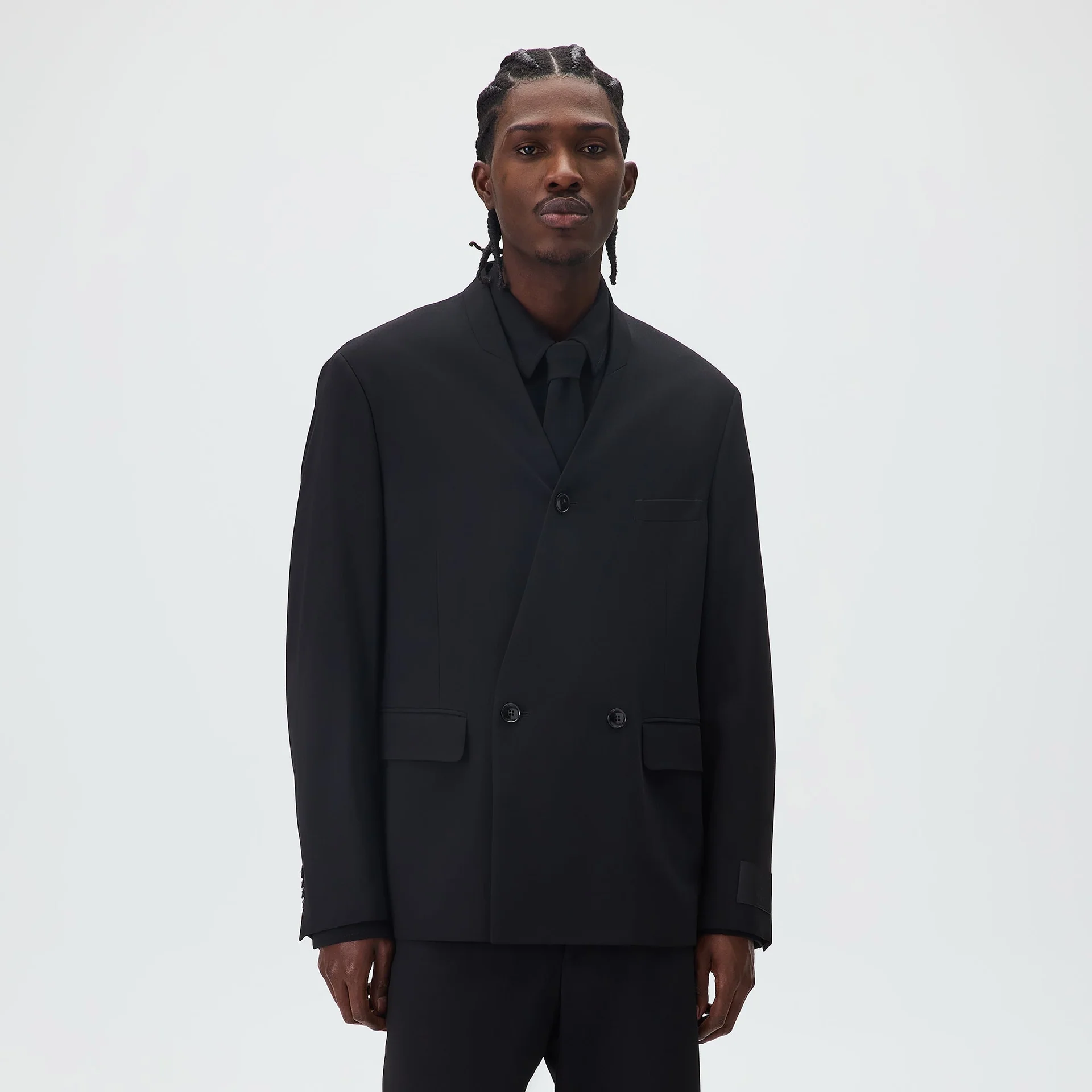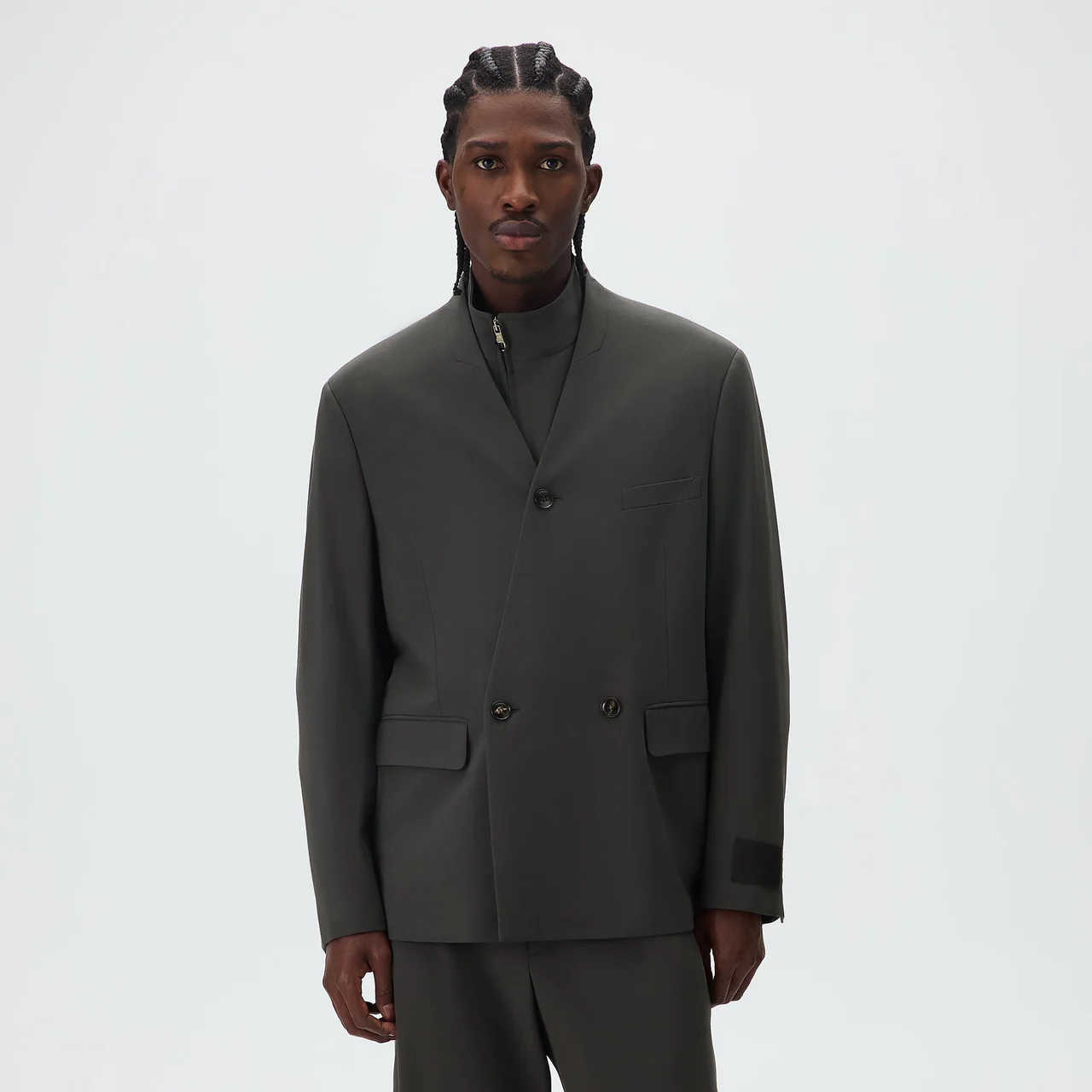 作为系列主打单品 Milano Crepe 无领夹克,轮廓取自 ARMANI 档案,并在以现代为参考进行了比例上的更新。该夹克采用绉纹 virgin 羊毛面料,设计上可与配套的平口裤搭配形成全套西装,或与系列中的其他单品搭配,呈现更为休闲的穿搭风格。设计的重点非常直接:既适合正式场合,也适合日常穿着的西装剪裁。