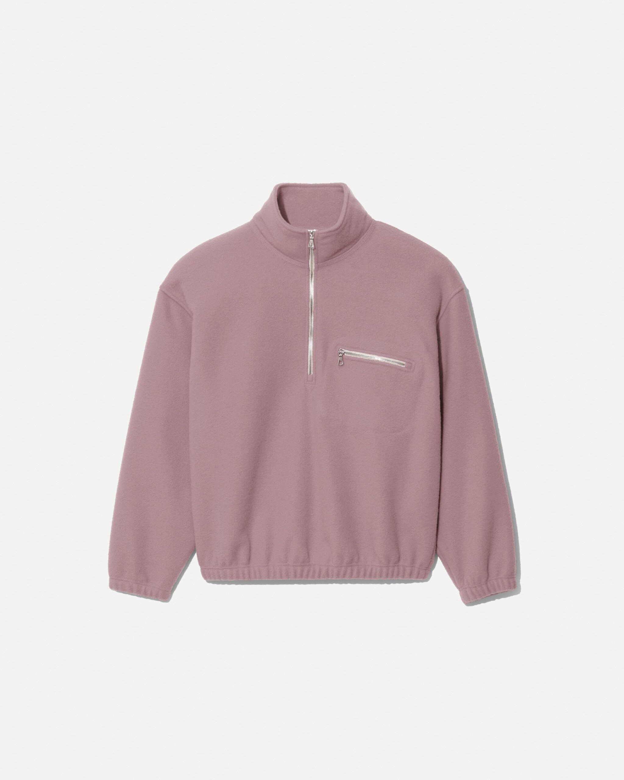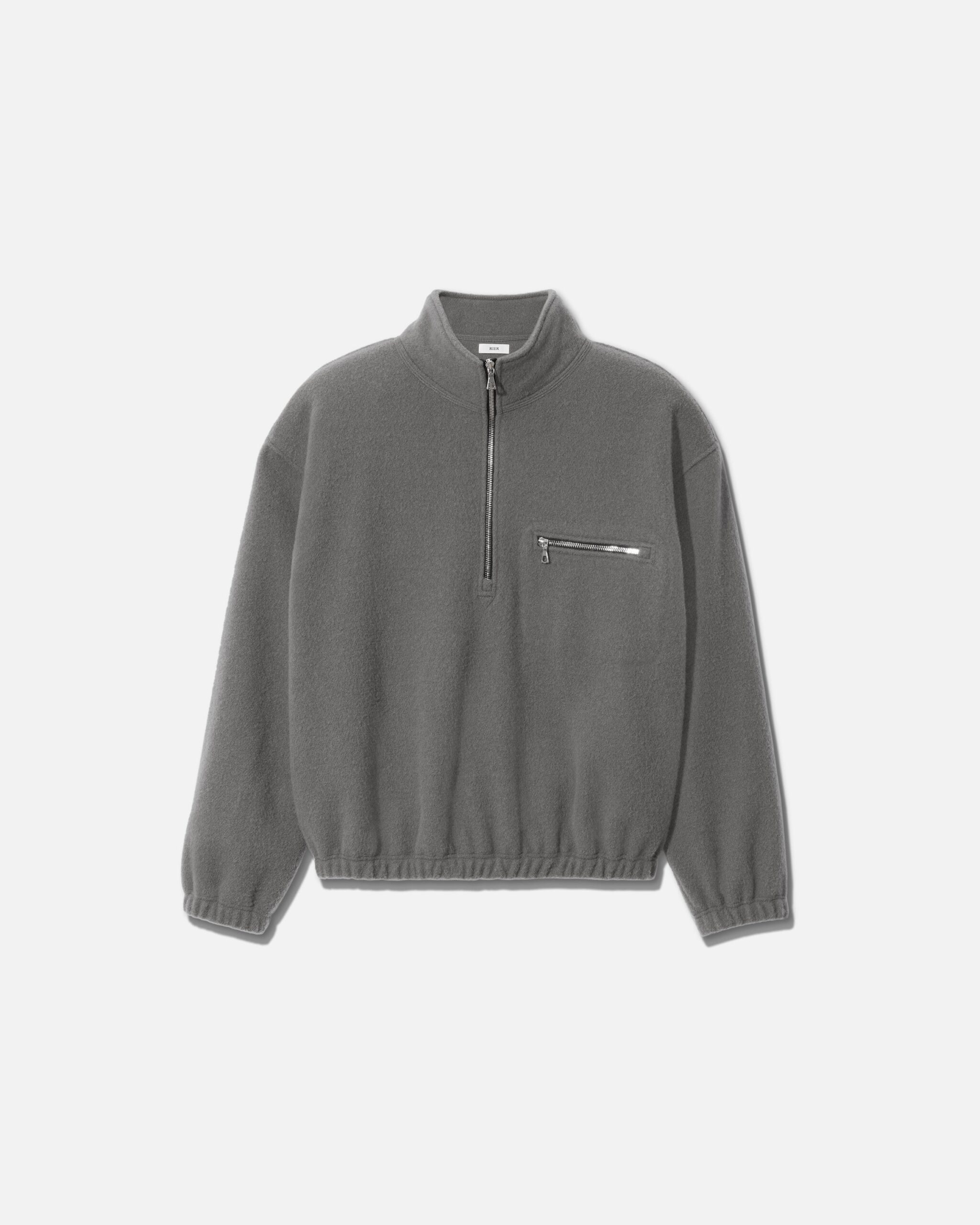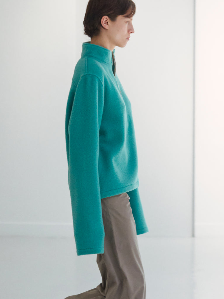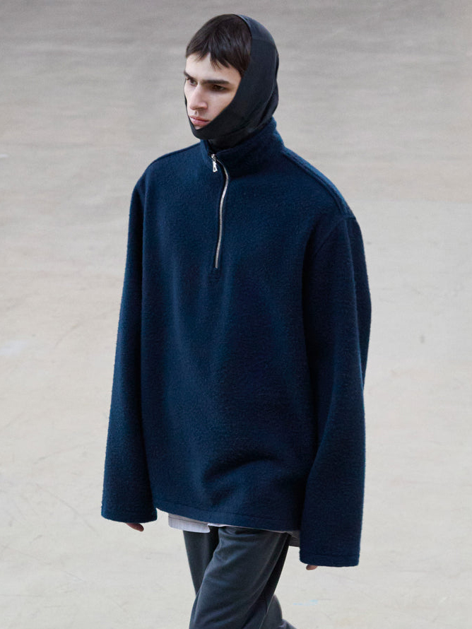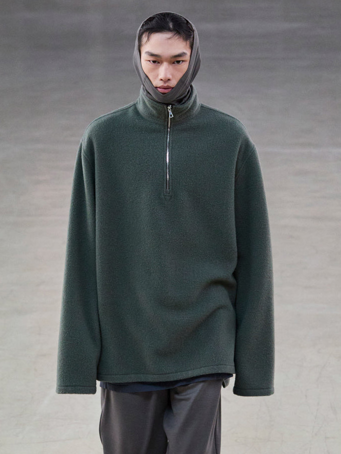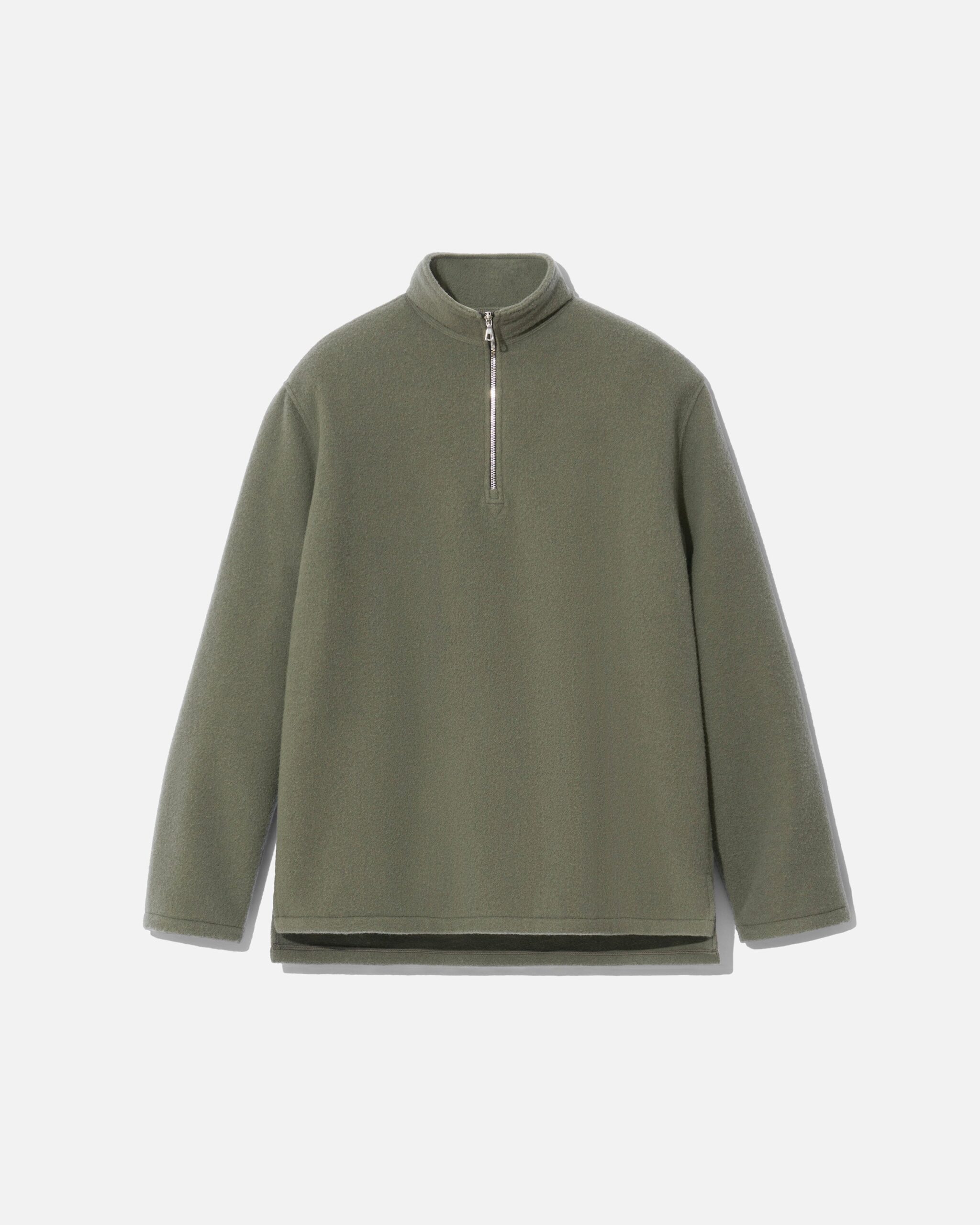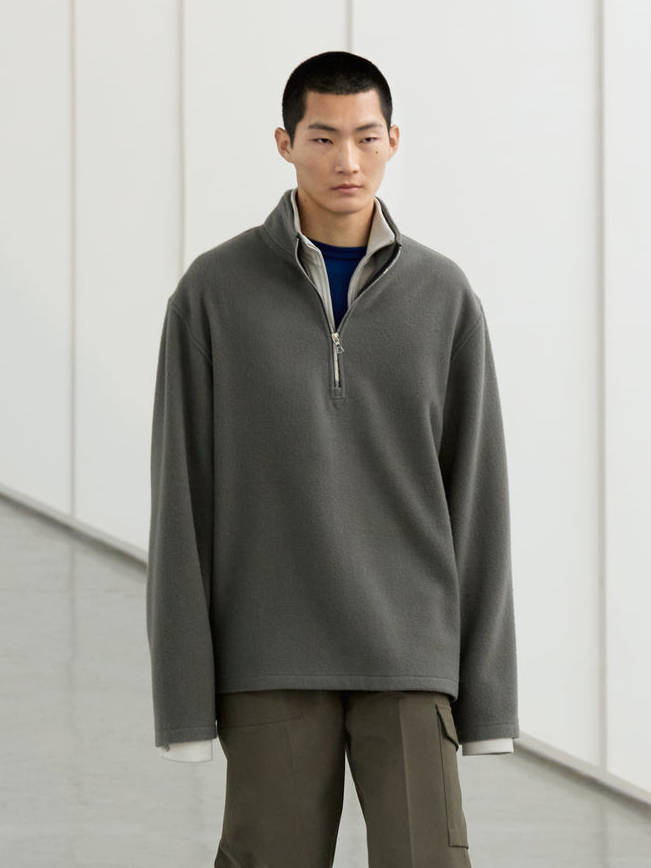 这件单品全程在奥地利制作,选用 100% 天然羊毛抓绒面料打造,加入经典登山风格四分之一拉链设计,方正裁剪的衣身、宽松袖口、收紧弹性腰身。细节方面则尽显匠心:Riri® 半开拉链与立领、完全无衬里的内里的设计,兼具优雅与运动风格。在重新定义基础款的同时保留其实用性:羊毛天然调节体温、防风抗寒。