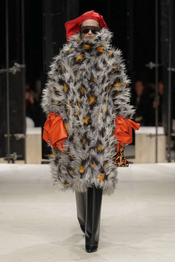 如果说 Sarah Burton 在 GIVENCHY 的早期几季选择了重新聚焦于女性服饰,那么 2026 秋冬系列则以更丰富的面料和廓形拓展了这一领域。她大胆地将男装面料与天鹅绒、动物纹印花、和服丝绸、蕾丝以及饰有银线的繁复刺绣融合,对比鲜明又有巧妙平衡。