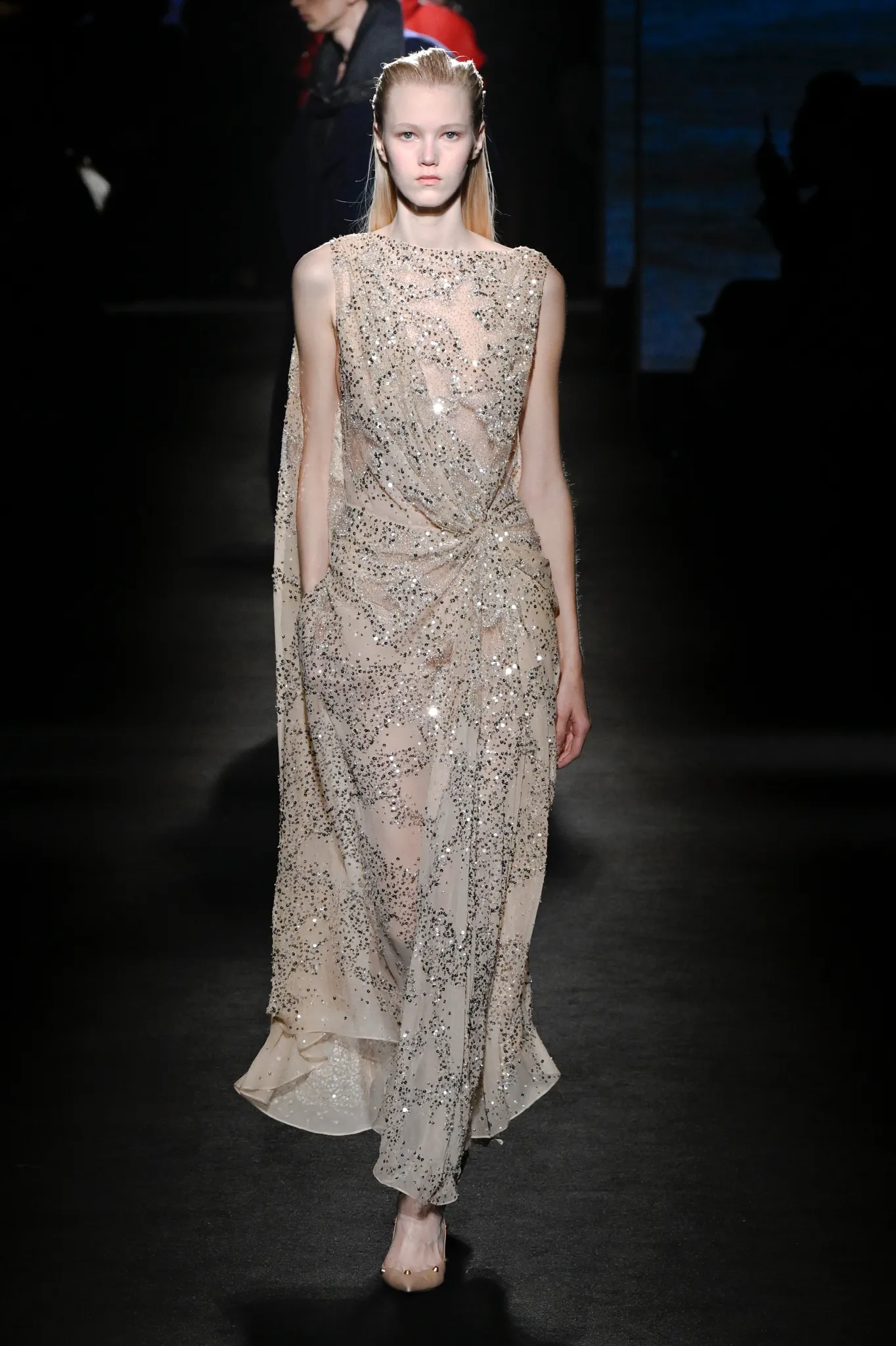 收官造型以银色渐变亮片礼服压轴,依旧体现出 Piccioli 作为红毯高级定制设计师的精湛手法。本季虽以暗色调和青年文化为主,但他对色彩和女性智慧的热爱依然是其才能所在。商业转型需要时间,在不确定时代保持品牌相关性仍是挑战,而 Piccioli 的创意魅力和幽默感,依旧值得时尚圈期待。