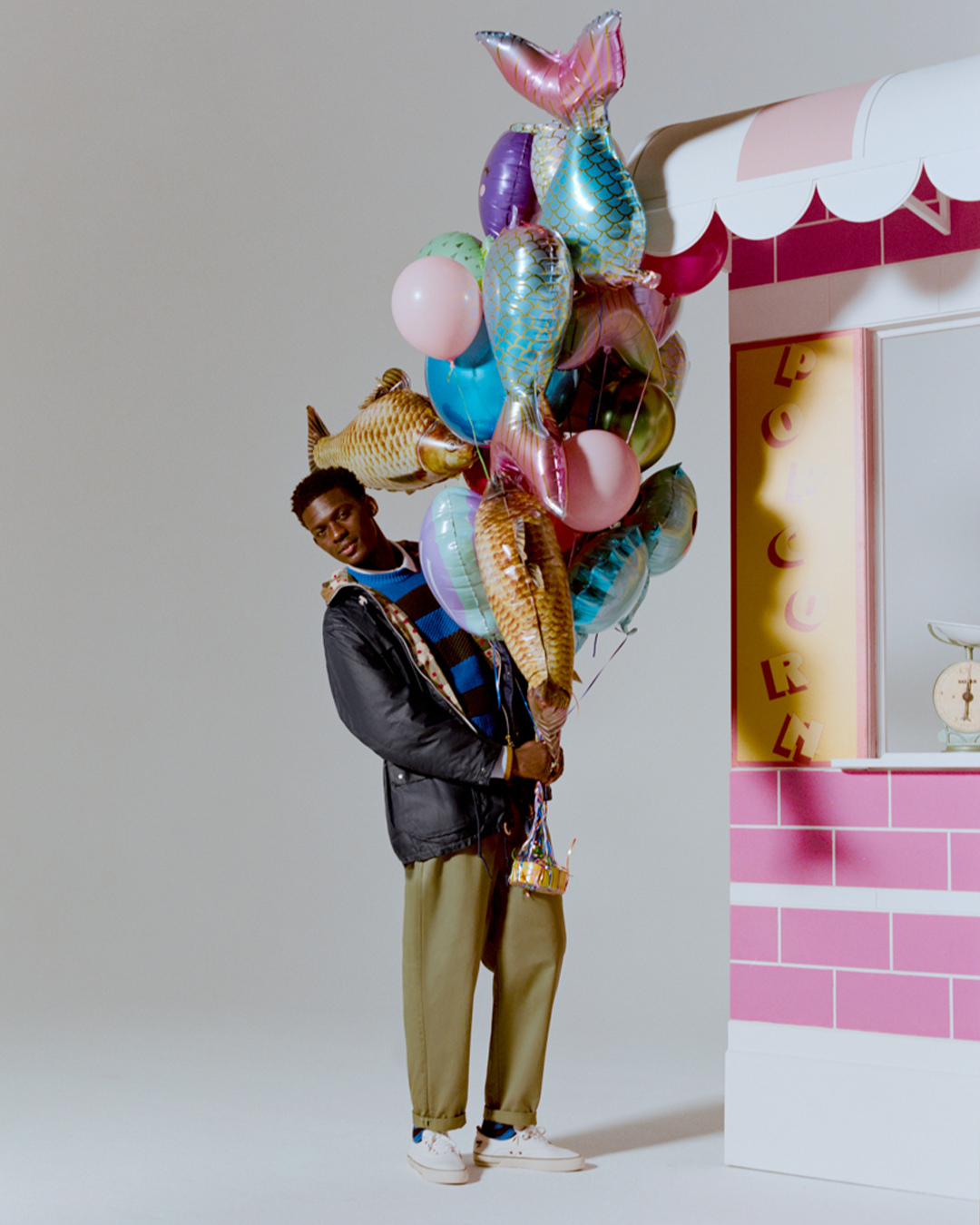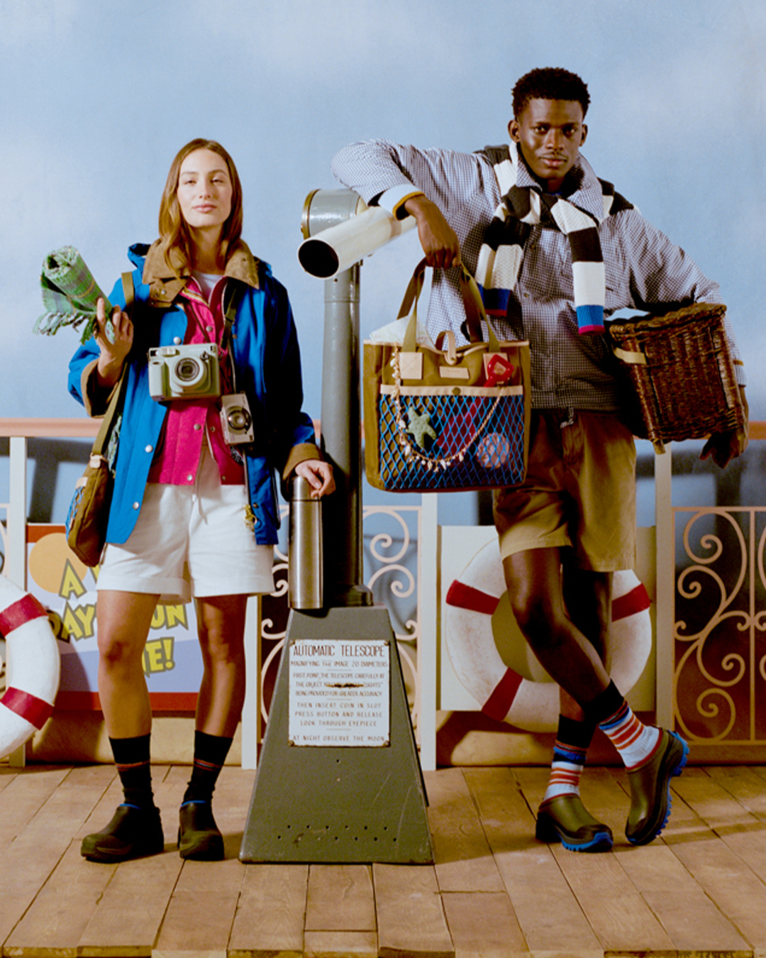 系列覆盖男女装服饰、外套、配件与鞋履,细节融入了 Paul Smith 与其父亲拍摄的私人档案照片元素,例如融化的冰淇淋、海风吹动的躺椅等图案,被巧妙应用在外套内衬与多款 T 恤之中。配色方面则围绕海滨色调展开,并结合格纹、方格布与波点图案,同时穿插 Paul Smith 标志性的彩色条纹。外套依旧是系列的核心亮点,双方重新演绎了多款 Barbour 经典款式,包括为 Transport 与 Spey 外套加入全新的蓝绿色格纹设计,同时也为标志性的 Durham 油蜡夹克推出新配色版本。目前,Barbour x Paul Smith 2026 春夏系列已在指定门店正式发售。