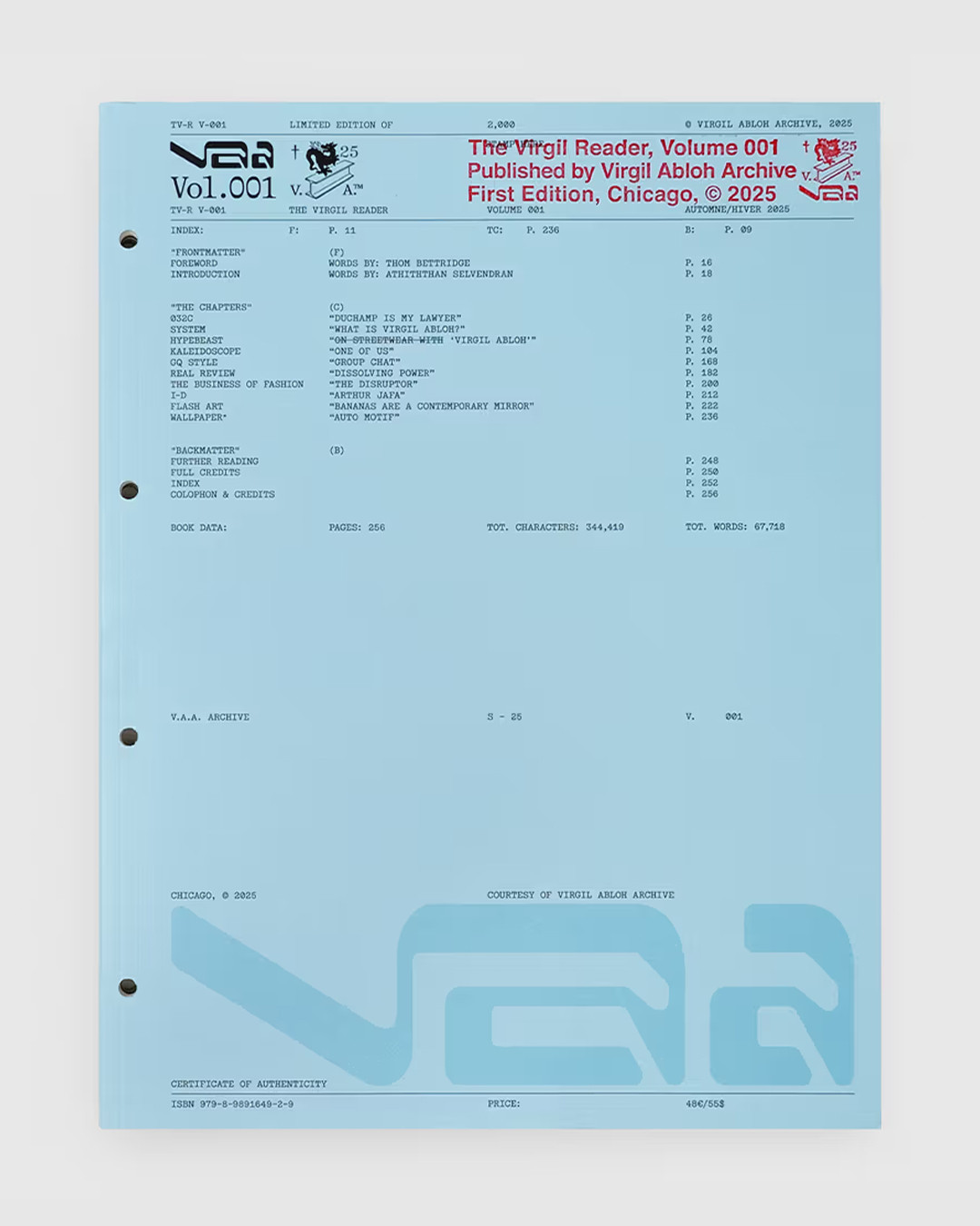 Virgil Abloh Archive 宣布推出首本出版物《The Virgil Reader Vol. 001》