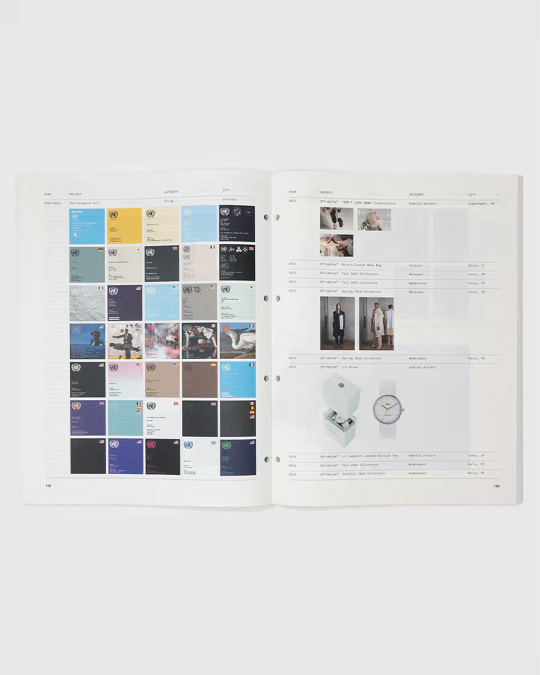 这一庞大的档案库最早在巴黎举办的 The Codes 展览中首次亮相,由 Virgil Abloh 的妻子 Shannon Abloh 负责管理与推进。档案中收录了超过两万件与 Virgil 职业生涯相关的重要资料,包括时装设计样衣、手绘草图、数字媒体文件以及其私人图书馆的收藏等,全面呈现这位跨界创作者在时尚、艺术与文化领域的创作轨迹。此次推出的《The Virgil Reader Vol. 001》正是从这一庞大档案体系中精选内容整理而成,希望让更多人了解 Virgil Abloh 的设计思想与方法论。同时,平台也推出完全免费的公众会员系统,用户注册后即可获得书籍的部分数字节选、官方新闻通讯,以及未来项目与活动的优先获取权。