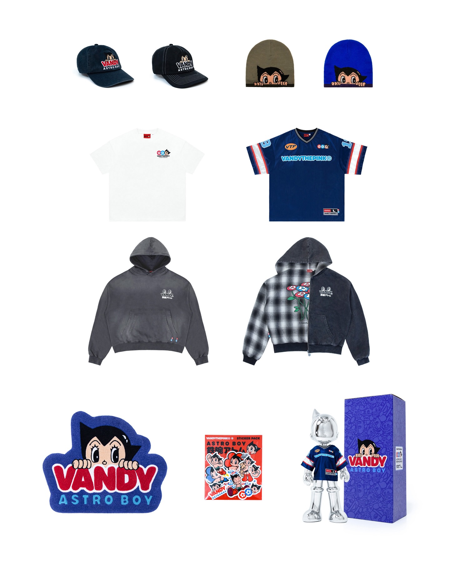 Vandy The Pink 近日携手日本经典角色「阿童木」推出全新联名胶囊系列。该项目以阿童木标志性的文化遗产为灵感,将角色所承载的未来主义世界观与 Vandy The Pink 标志性的街头设计语言相结合,以全新的视觉表达重新诠释这一经典形象。
