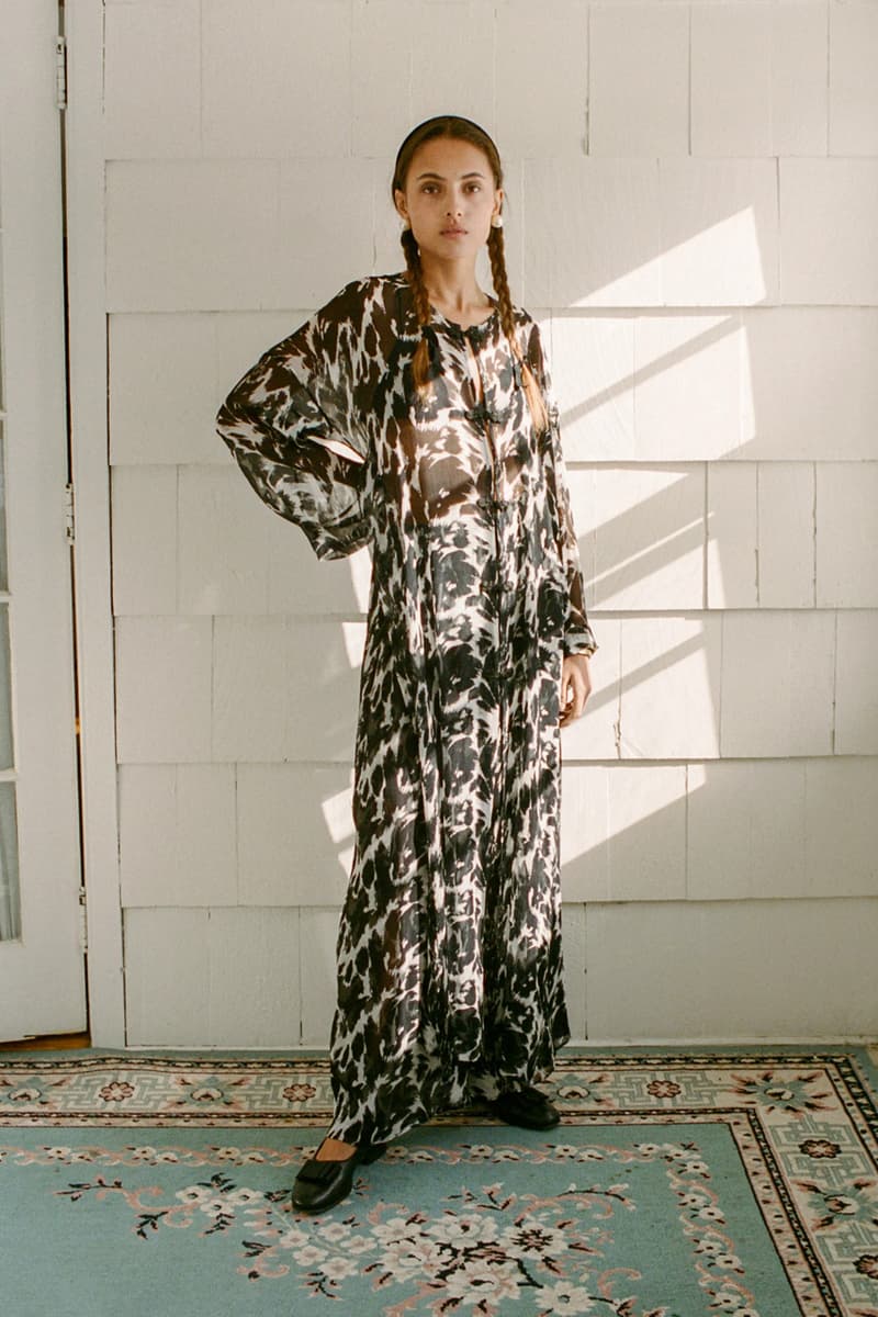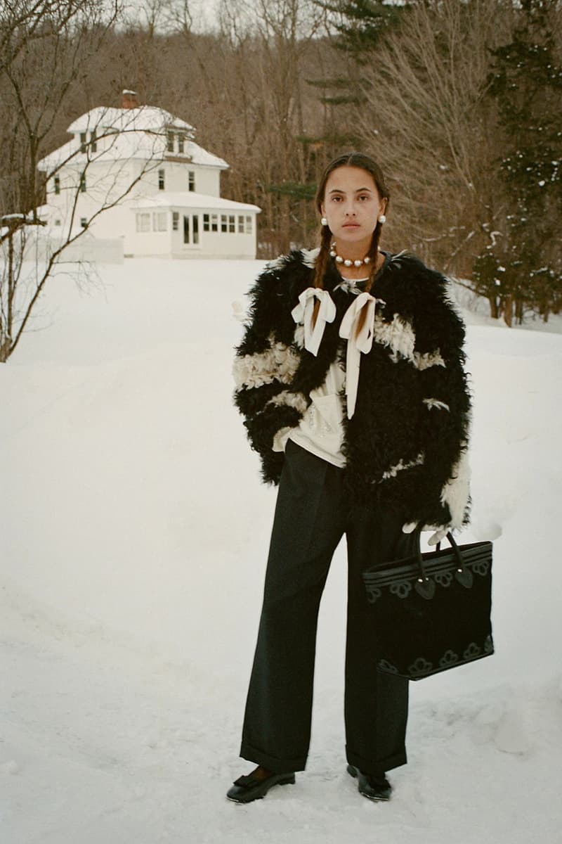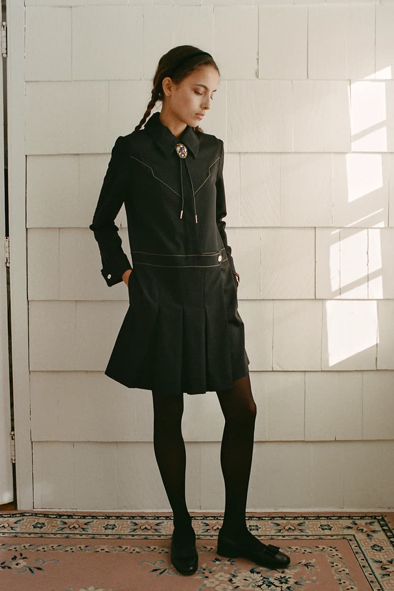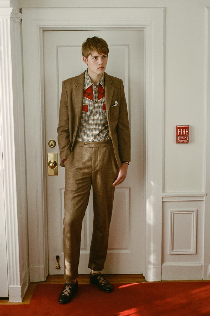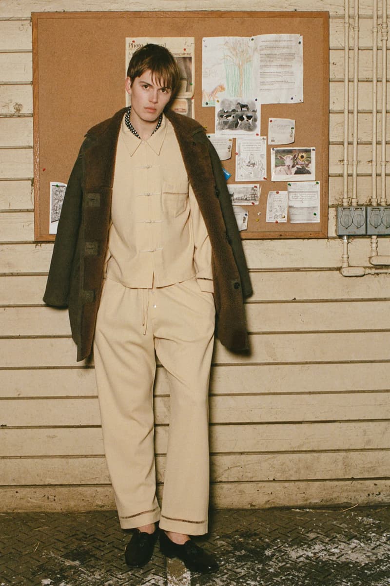 在视觉风格上,系列通过大胆图案与材质营造出极具辨识度的造型,例如全套波点造型、牛纹图案裤装搭配羊羔绒夹克,以及以牛纹为主题的马海毛针织衫与珠宝装饰西装外套。与此同时,BODE 也延续其标志性的复古与怪诞气质,包括带有金色编织装饰的黑色军装风大衣以及采用盘扣结构设计的夹克单品。整体系列在西部文化与手工工艺之间取得平衡,为品牌十周年呈现出一场充满个性与叙事感的时装表达。