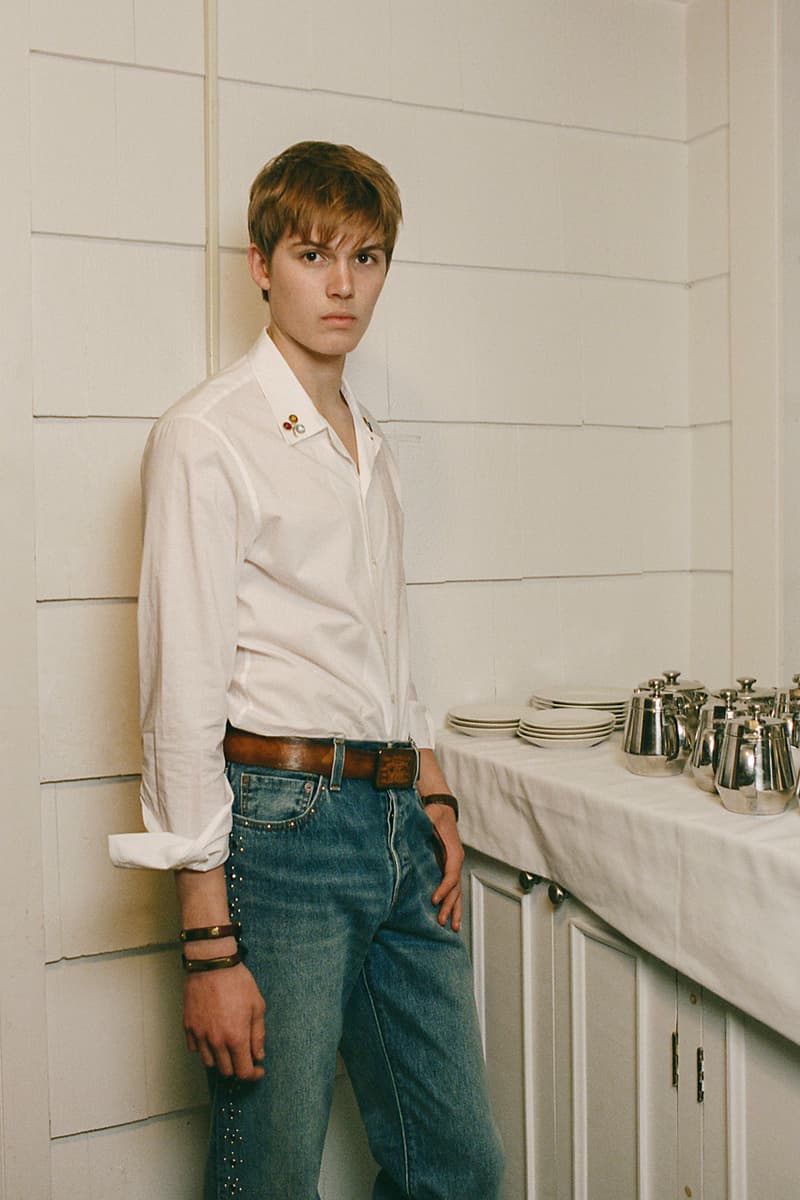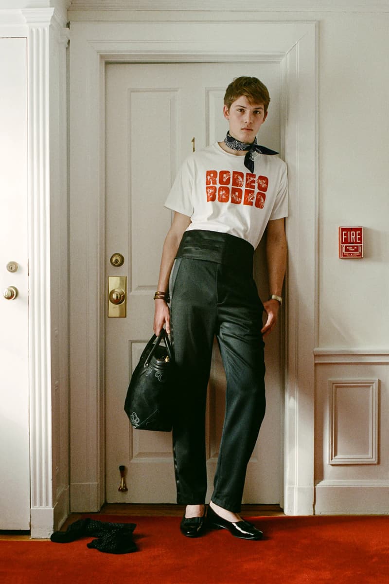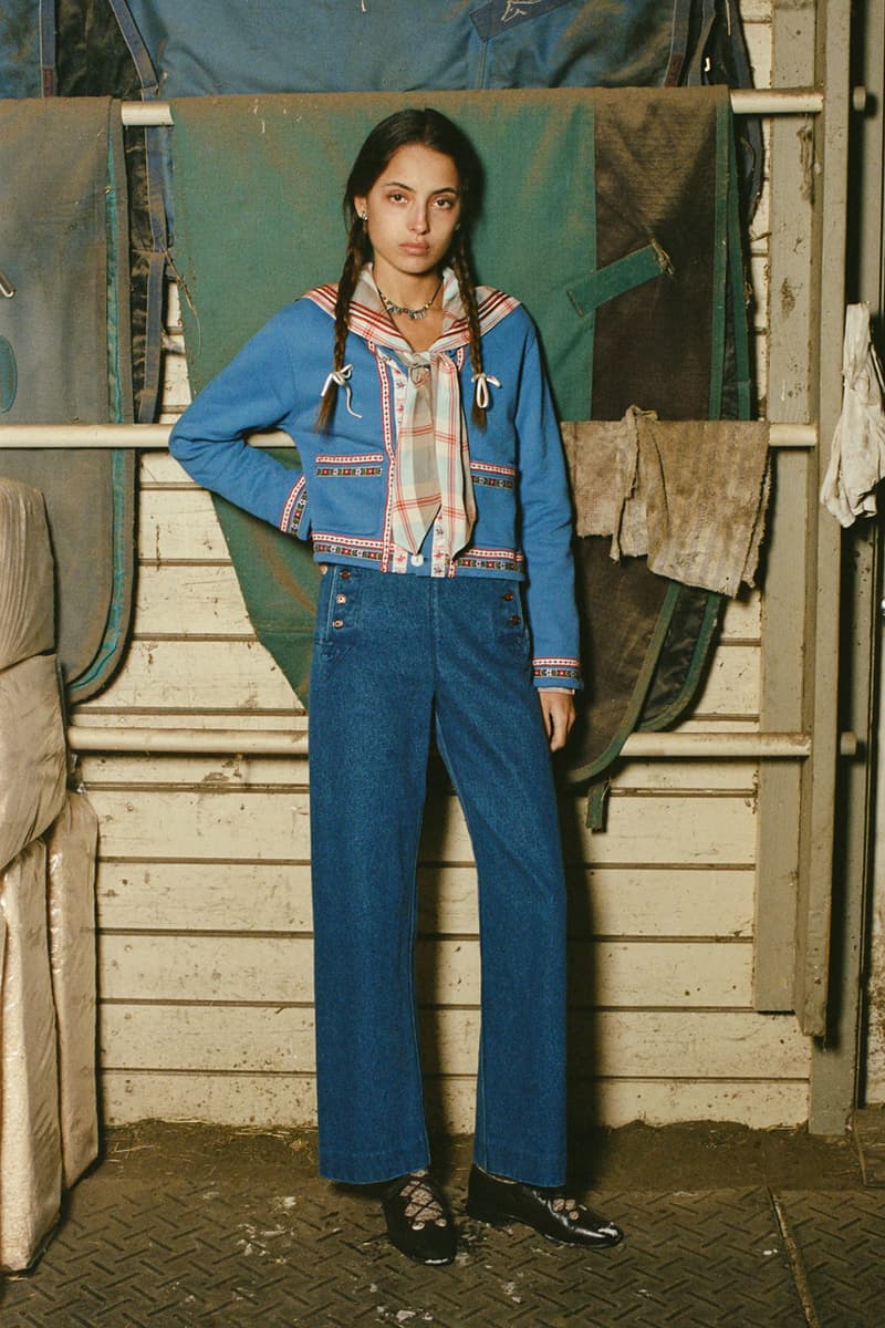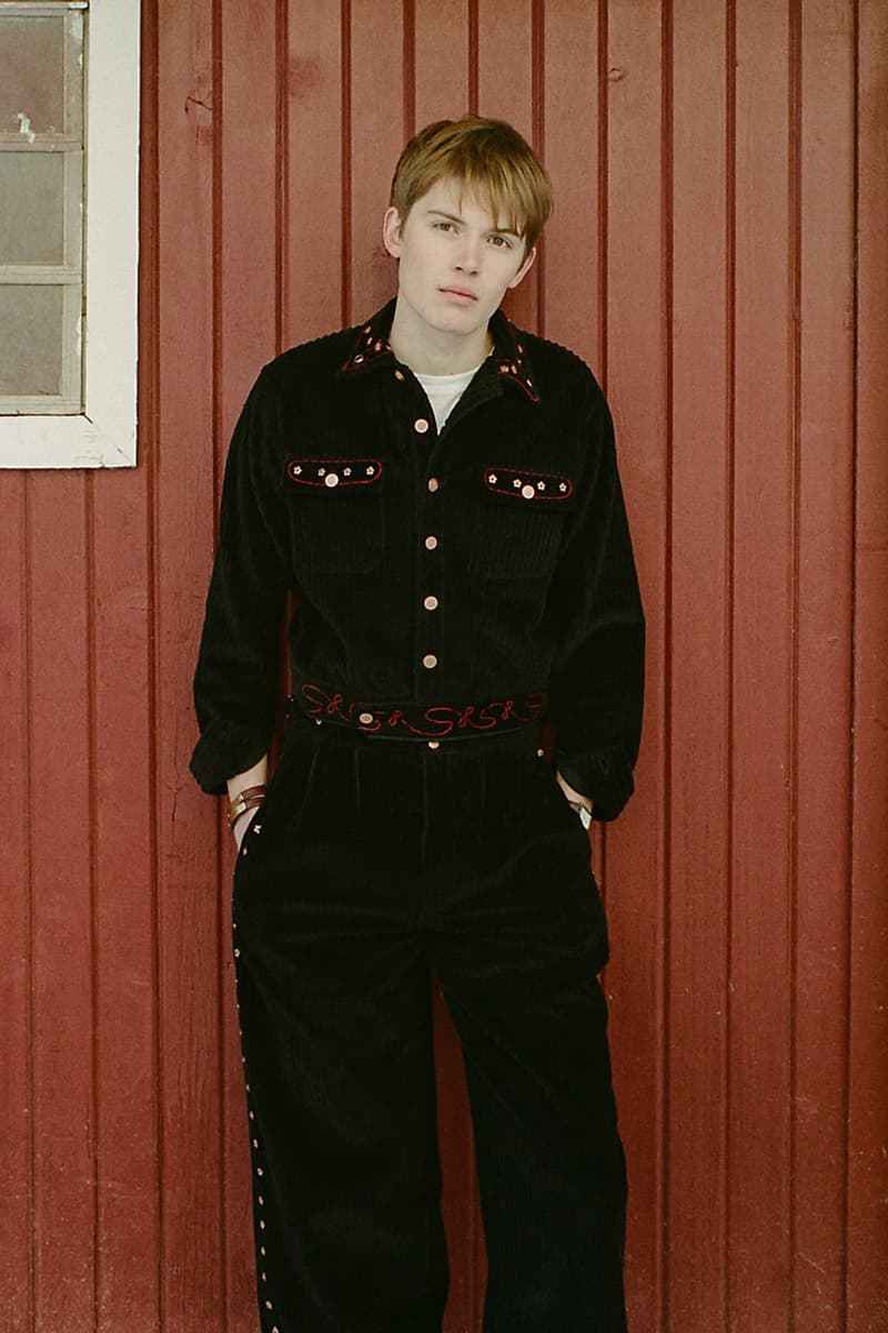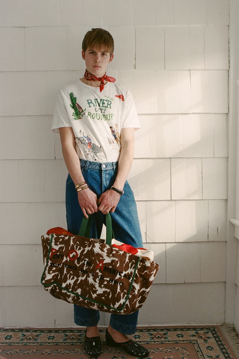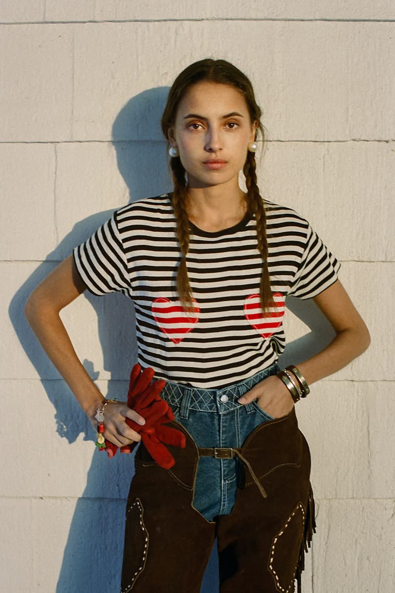 在单品设计上,Levi’s® 的经典牛仔裤成为系列重点,推出两种不同水洗版本,并加入铆钉与珠宝装饰等细节,赋予传统丹宁更具华丽感的表达。同时,系列还包含多款带有西部风格元素的单品,例如领带、西部衬衫以及牛仔主题针织衫。BODE 本季也延续其一贯的幽默感,一件印有「Don’t own a cow」字样的连帽卫衣以及胸前点缀红心图案的条纹 T 恤,为整体设计增添轻松玩味的气质。