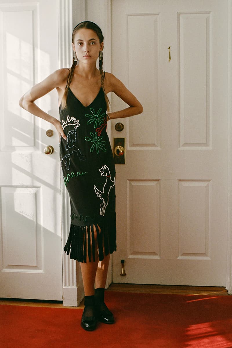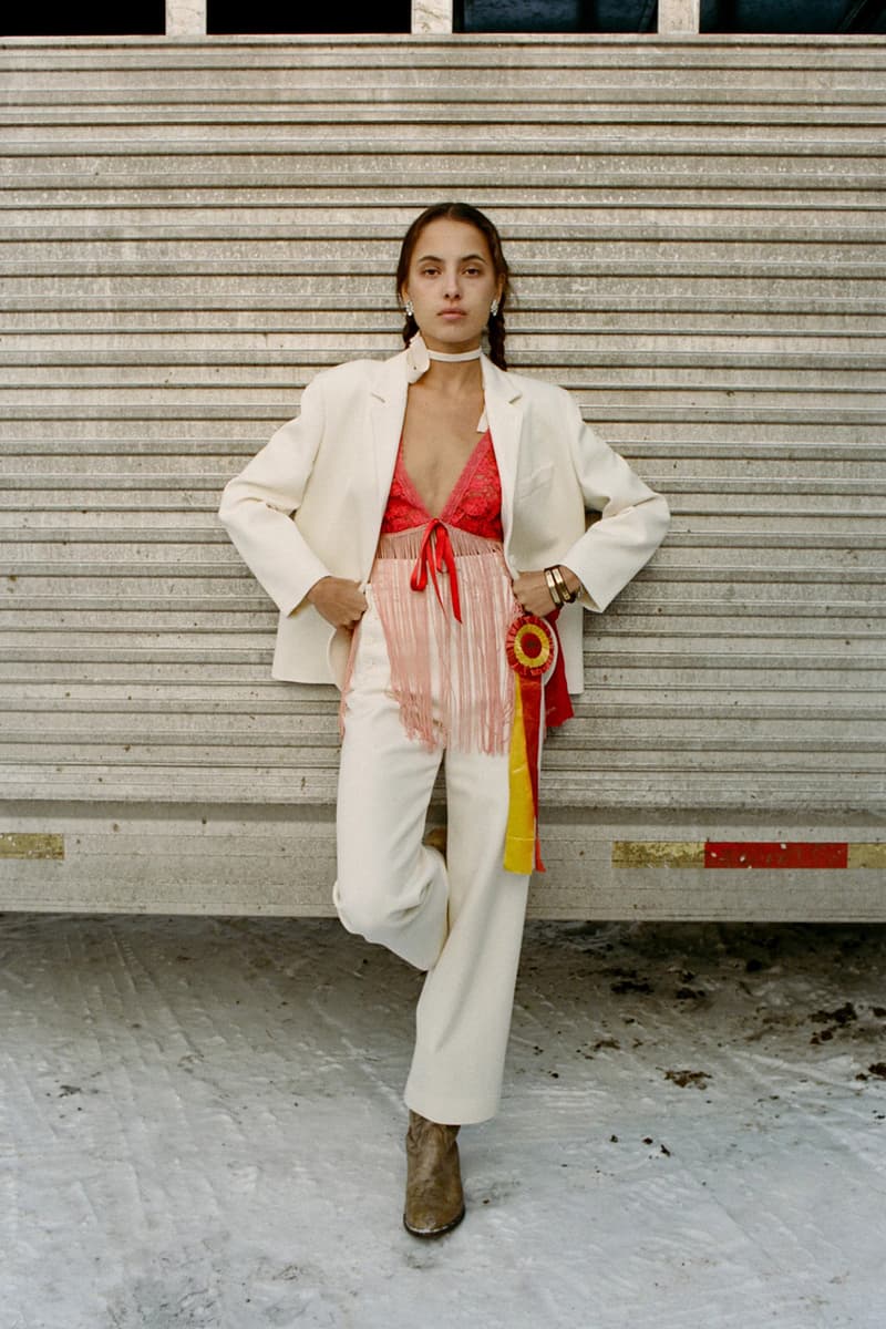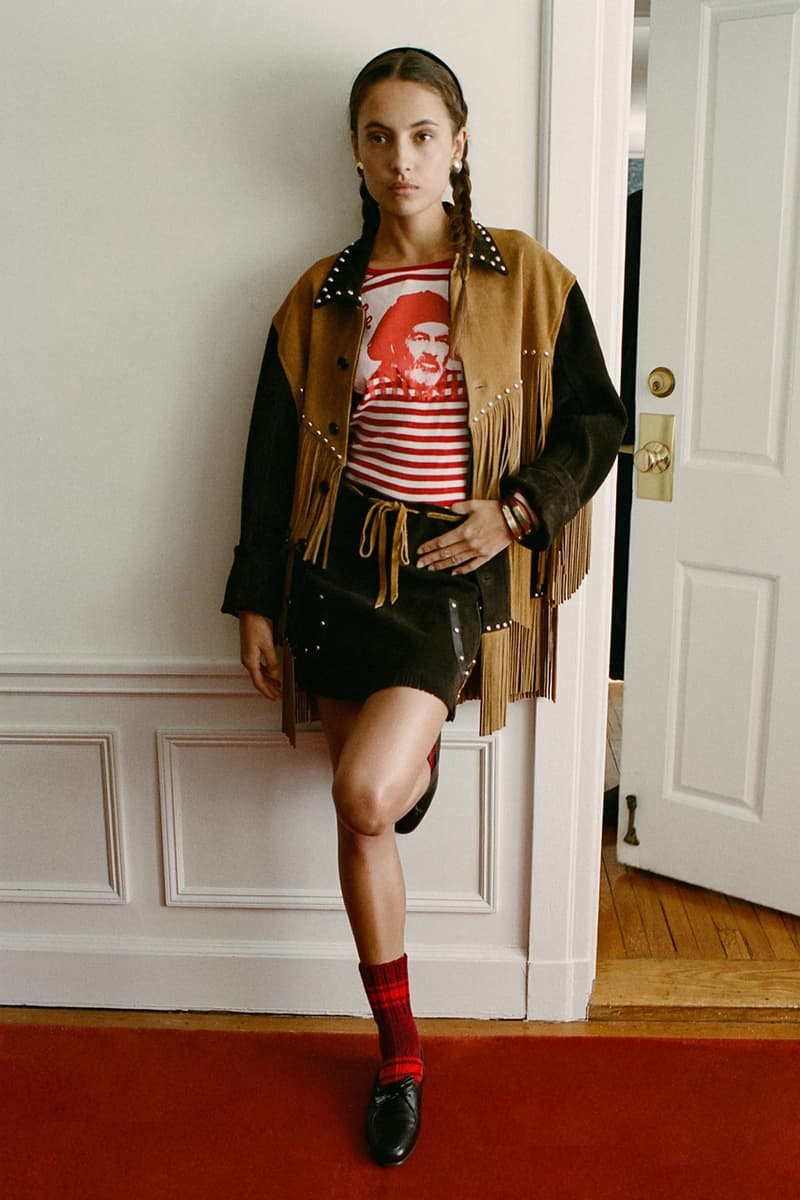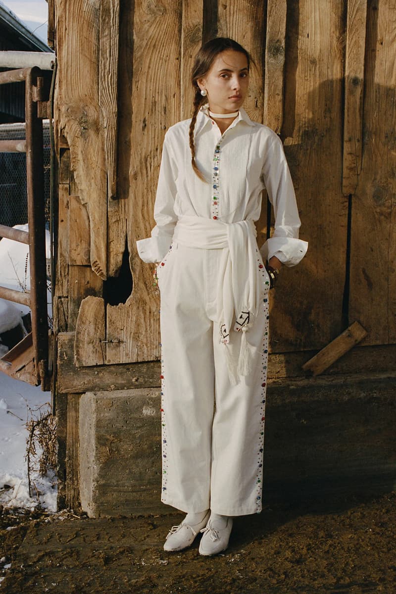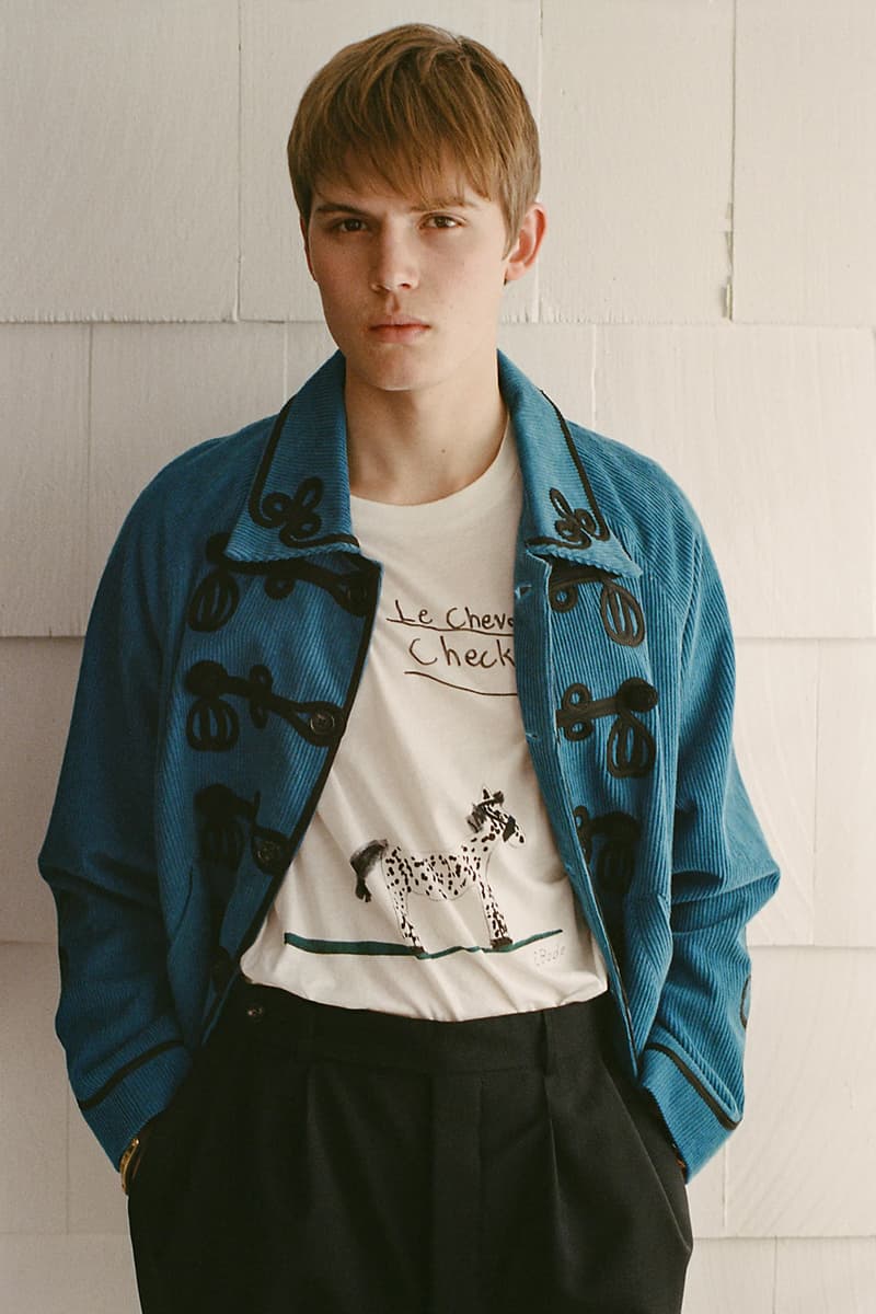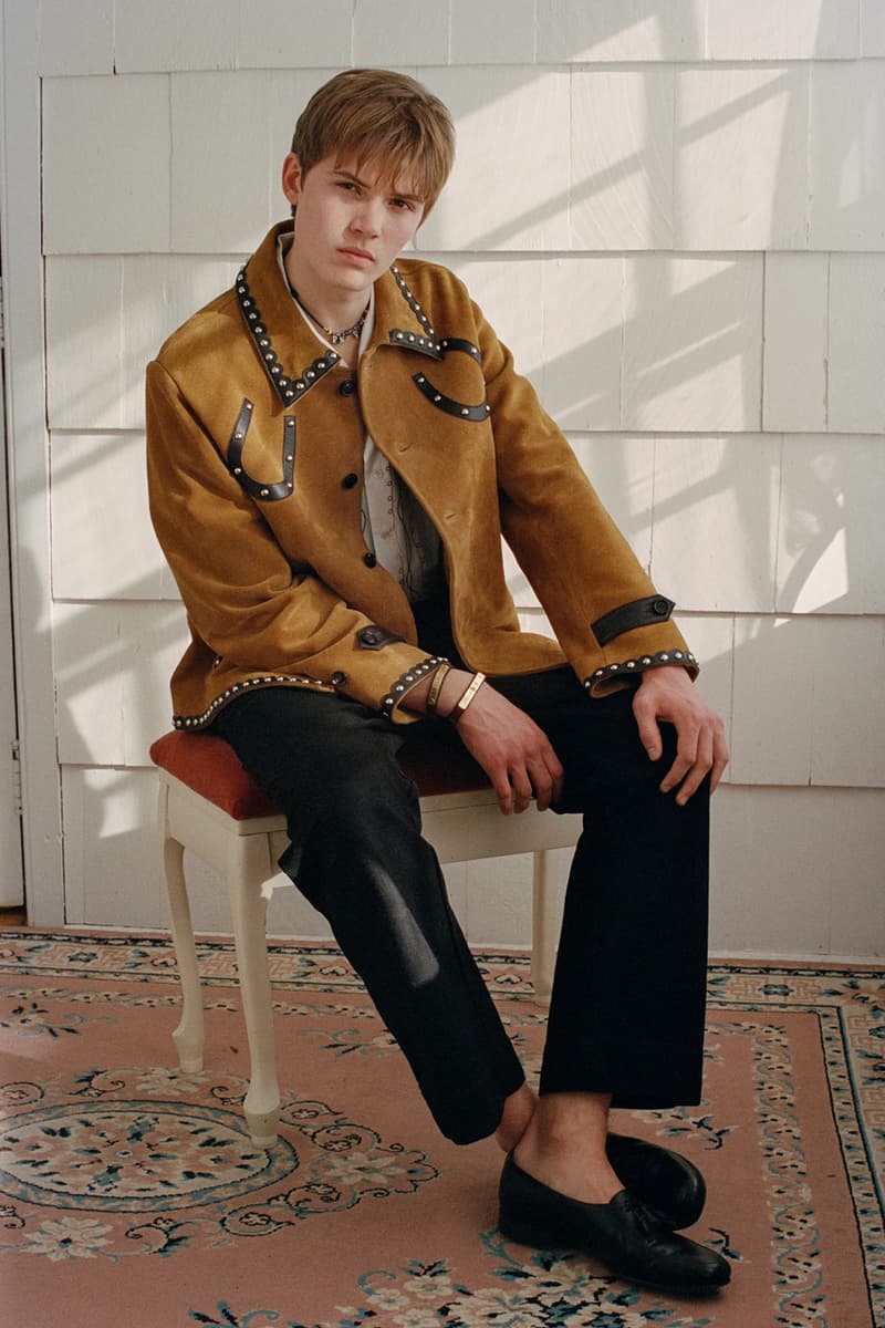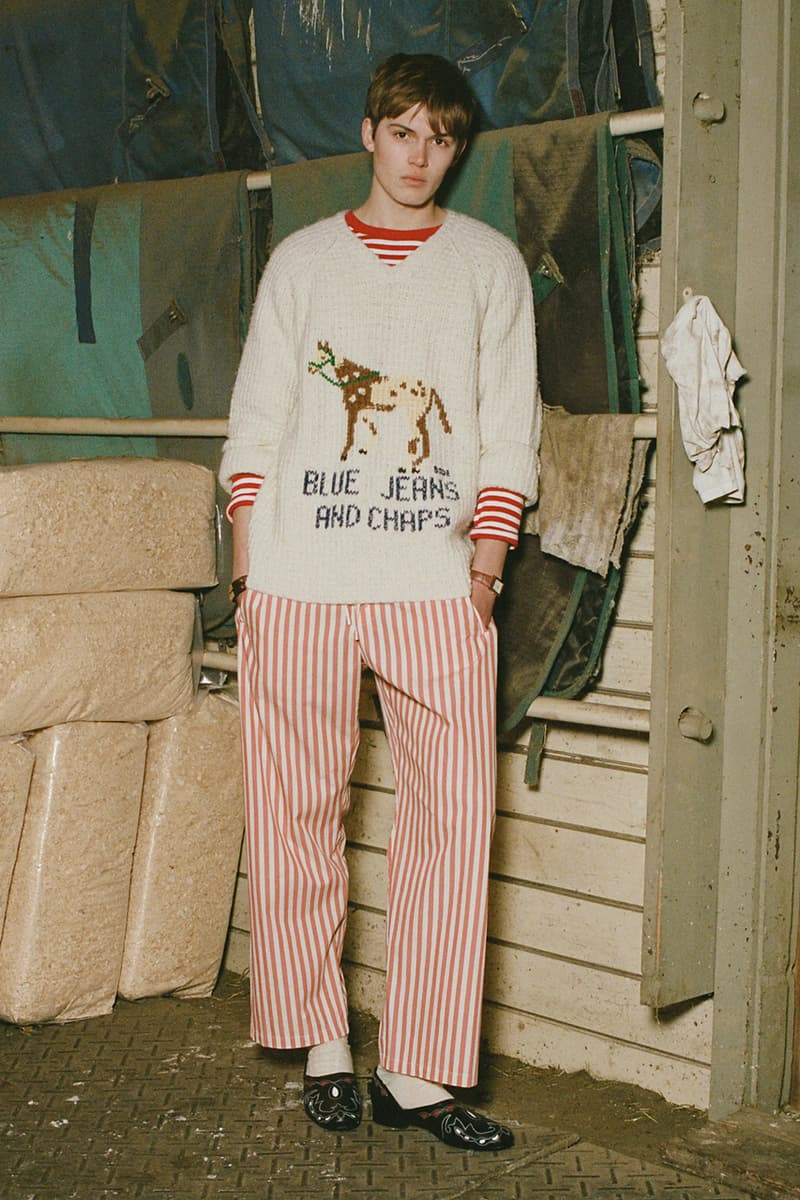 在单品设计上,Levi’s® 的经典牛仔裤成为系列重点,推出两种不同水洗版本,并加入铆钉与珠宝装饰等细节,赋予传统丹宁更具华丽感的表达。同时,系列还包含多款带有西部风格元素的单品,例如领带、西部衬衫以及牛仔主题针织衫。BODE 本季也延续其一贯的幽默感,一件印有「Don’t own a cow」字样的连帽卫衣以及胸前点缀红心图案的条纹 T 恤,为整体设计增添轻松玩味的气质。