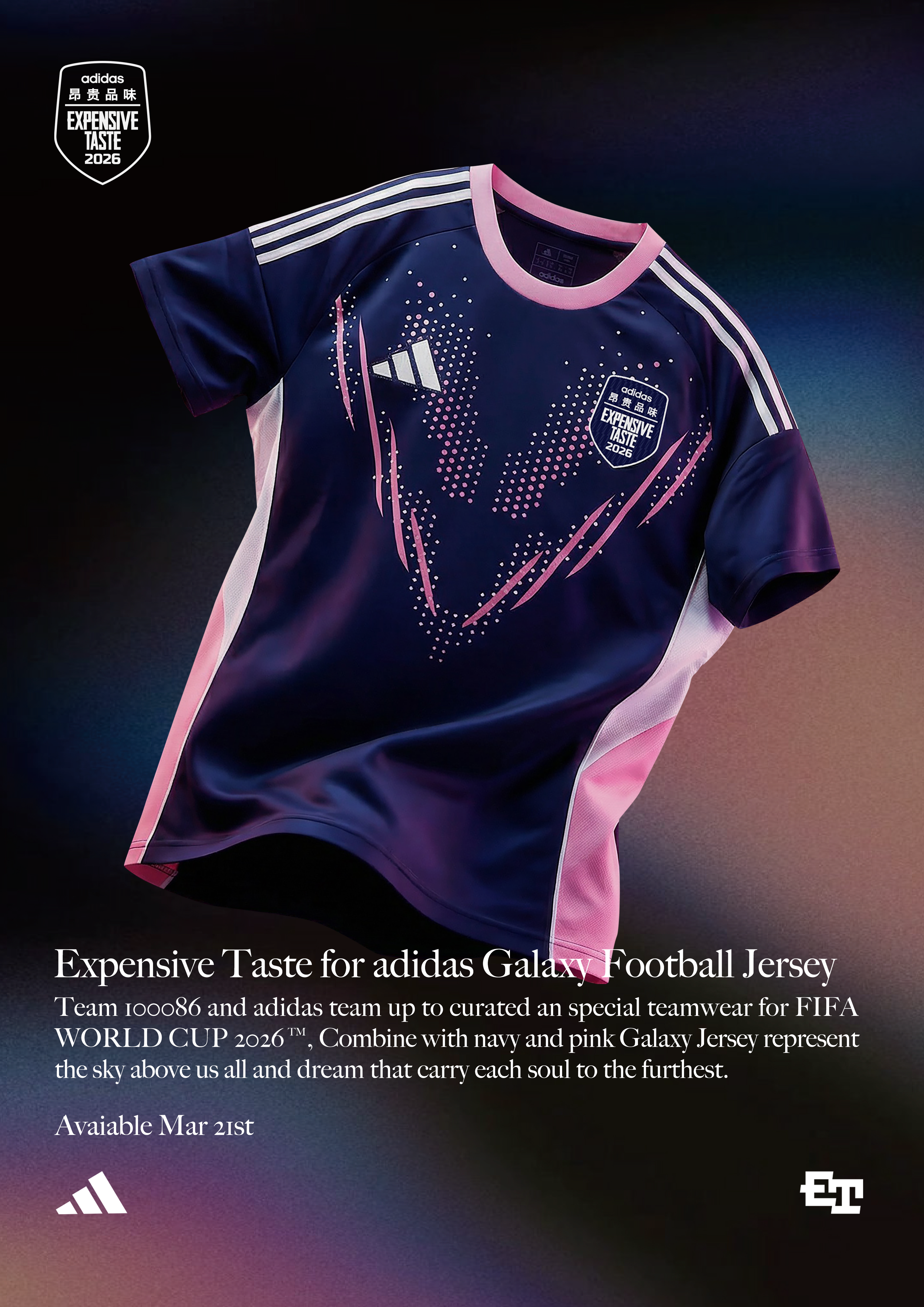 当街头潮流视角融入世界杯的热血赛场,当宇宙银河的浪漫构想碰撞足球运动的竞技精神,Expensive Taste 与 adidas 共创,全新推出 Galaxy 球迷版足球短袖,以全新的设计表达,为世界杯赛场氛围注入潮流新意。据悉 Expensive Taste for adidas Galaxy 球迷版足球短袖将于 3 月 21-22 日 (12:30-21:00)adidas 复古足球市集和大家见面,各位球友届时切勿错过。