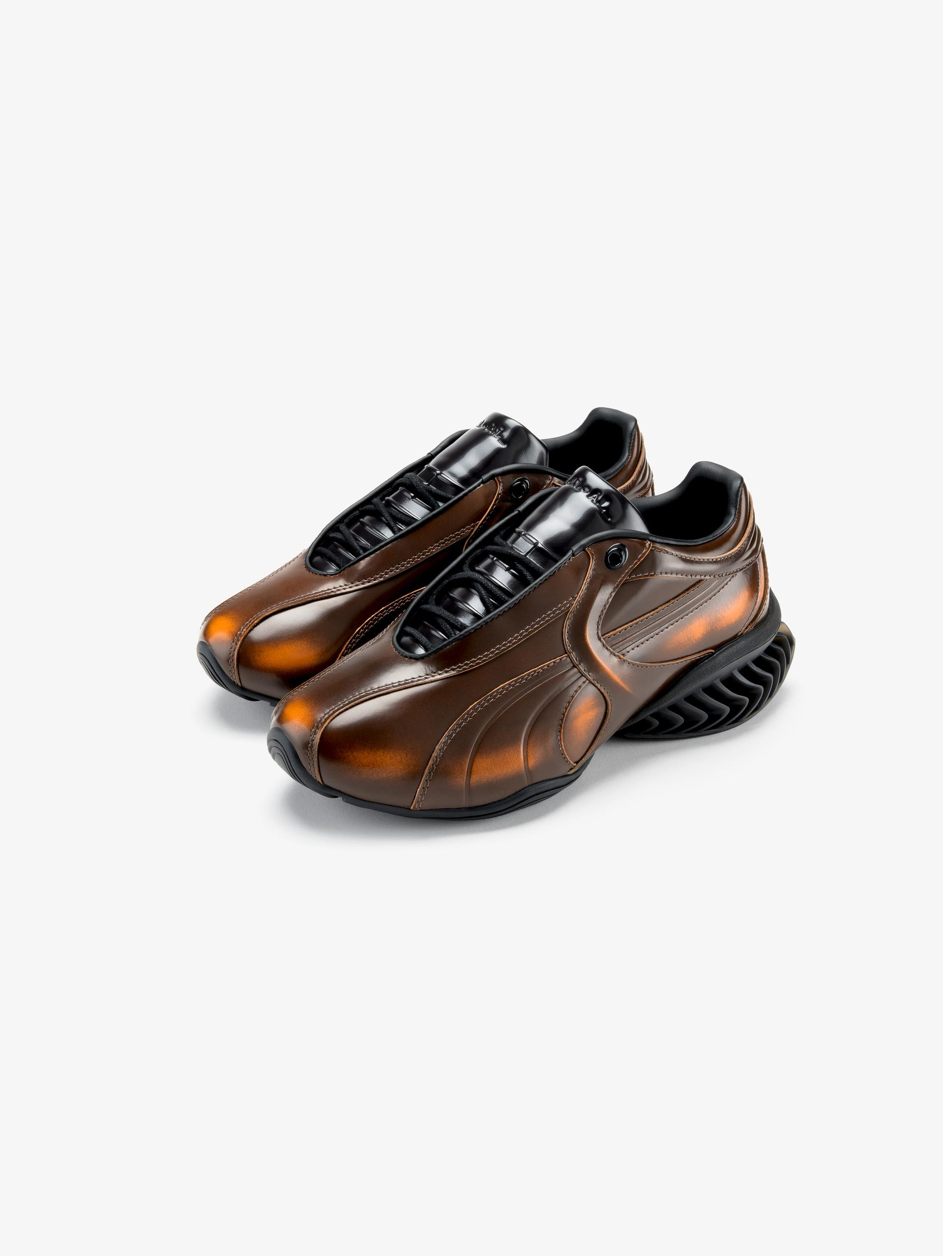 将高性能鞋履与模块化服装相结合,PUMA 携手 _J.L-A.L_ 推出了全新胶囊系列。该系列于去年六月的巴黎时装周首次亮相,本次合作的核心是具有高光泽「渐变色」和「午夜蓝」配色的 CELL Geo 鞋款。这款运动鞋的漆皮鞋面经过特殊设计,色泽会随着时间的推移而变化,展现出完全个性化的渐变效果,最终呈现出每双鞋独一无二的质感。此外,该鞋款还对 PUMA 的 CELL 缓震系统进行了升级,采用了更具几何感的设计。