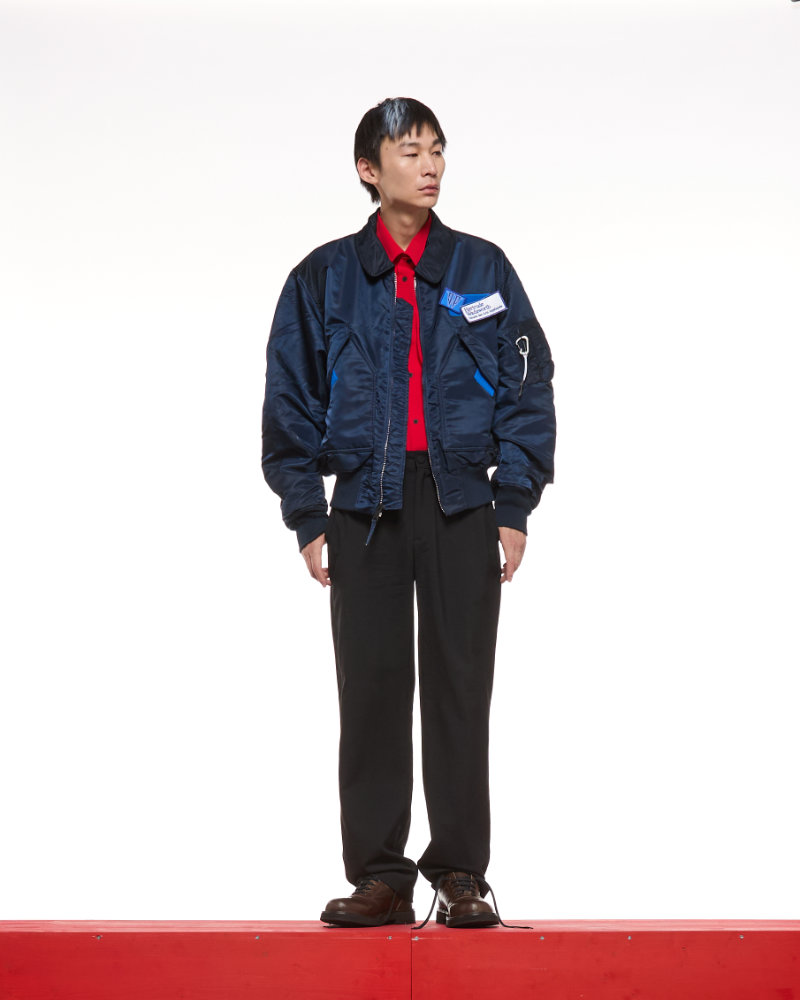 Alpha Industries 携手 GR10K 重新演绎了经典的 CWU-45 夹克。两个品牌都源于军用工装制造,Alpha Industries 的服装逐渐被亚文化群体所接受和重新诠释;GR10K 也秉承着相同理念,在实用性体系中构建反主流文化美学。CWU-45 最初于 1972 年为美国空军和海军飞行员研发,此次合作并未夸大其轮廓或添加醒目的标识,而是专注于 GR10K 所谓的「功能性复原」。原版服装得以保留,但其结构经过巧妙的改造,并被置于不同的文化语境中。该夹克被设想为虚构的省级博物馆的警卫制服,反思了重复、制度以及在在维护秩序的体系中,个性是如何被缓慢侵蚀的。