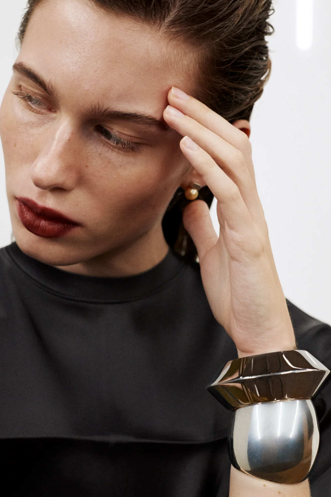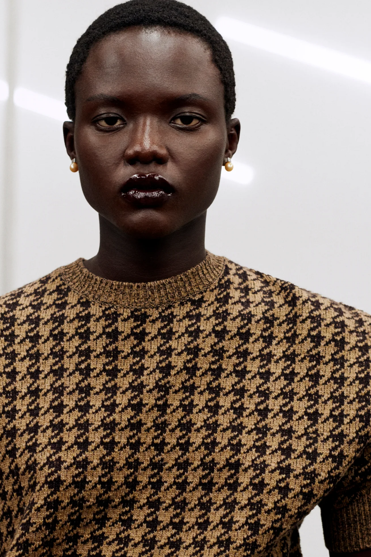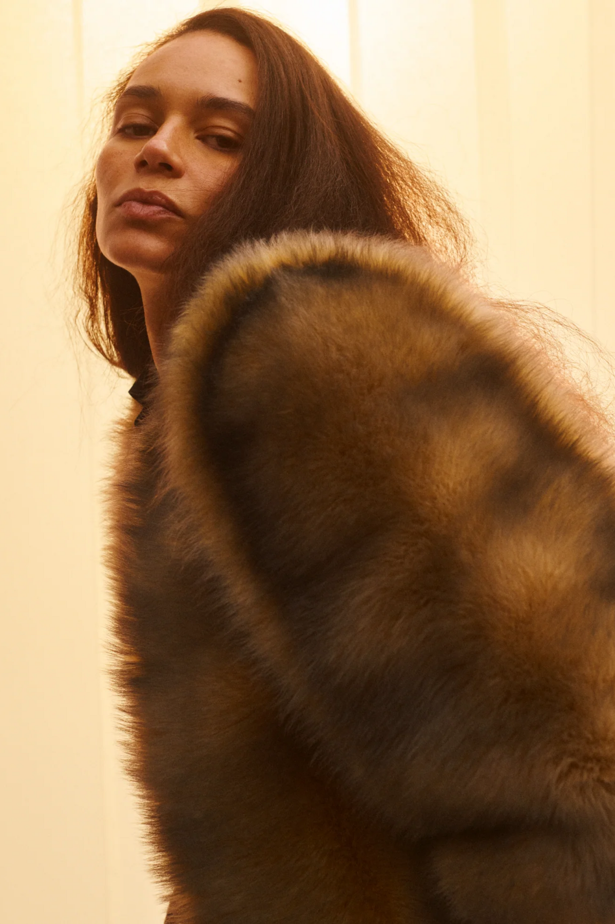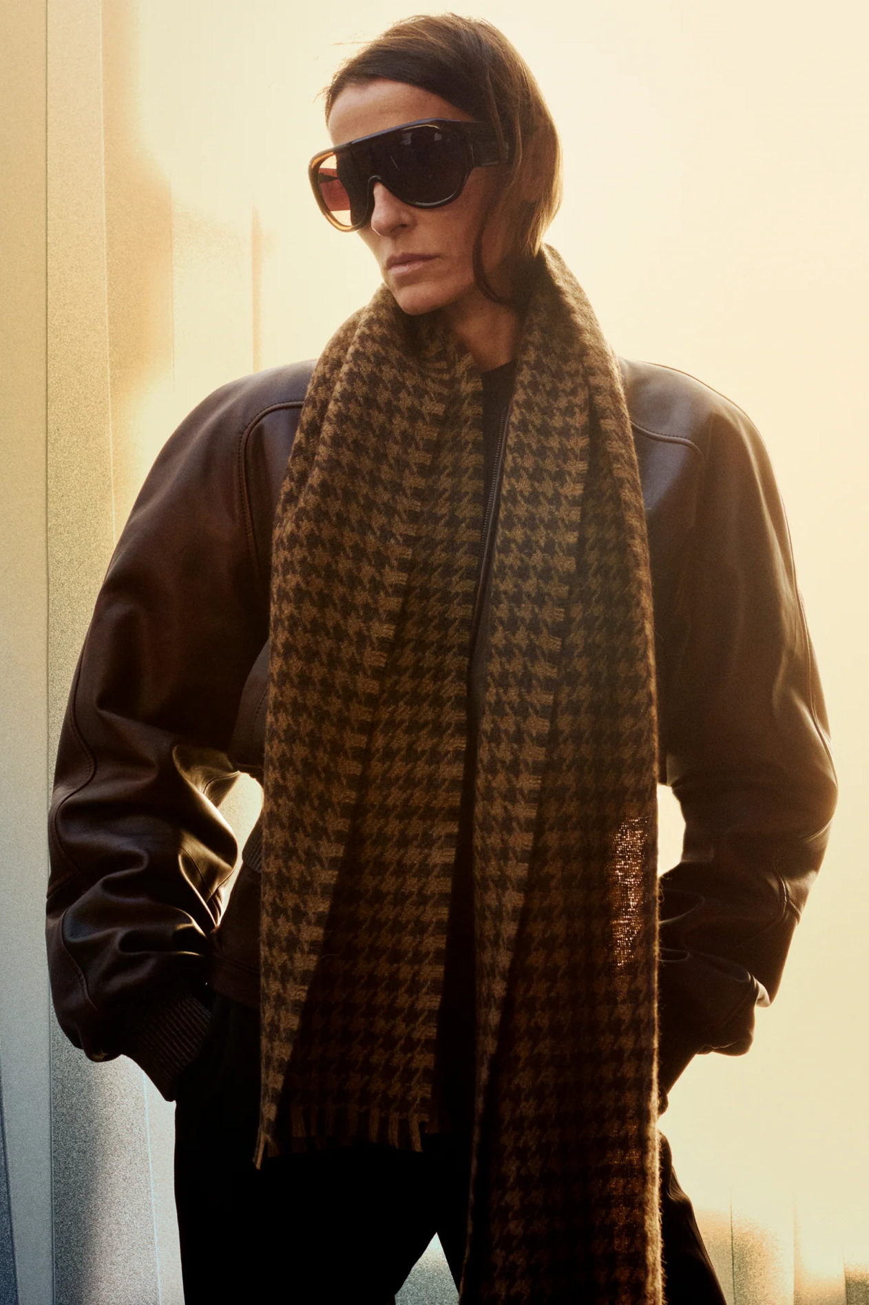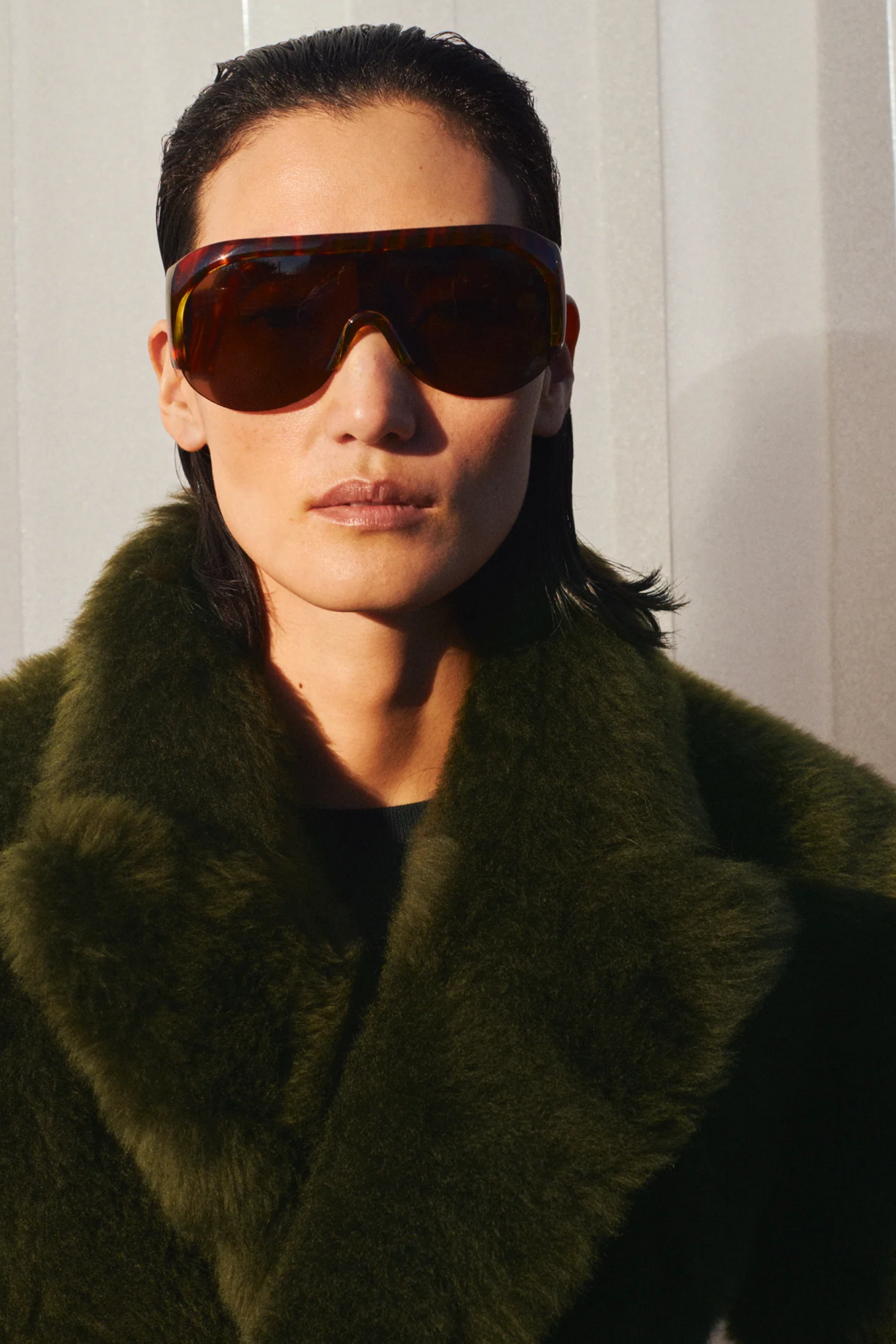 材质扮演着低调却重要的角色。羊毛皮贯穿始终,经特殊处理后其质感从挺括变为柔软,效果近乎做旧。皮革则被运用在一些看似不寻常的单品中——尤其是常常用来营造舒适感的款式,例如宽松长裤或简约套装。这种熟悉与颠覆之间的张力贯穿整季,赋予了原本简洁的单品更加鲜明的个性。