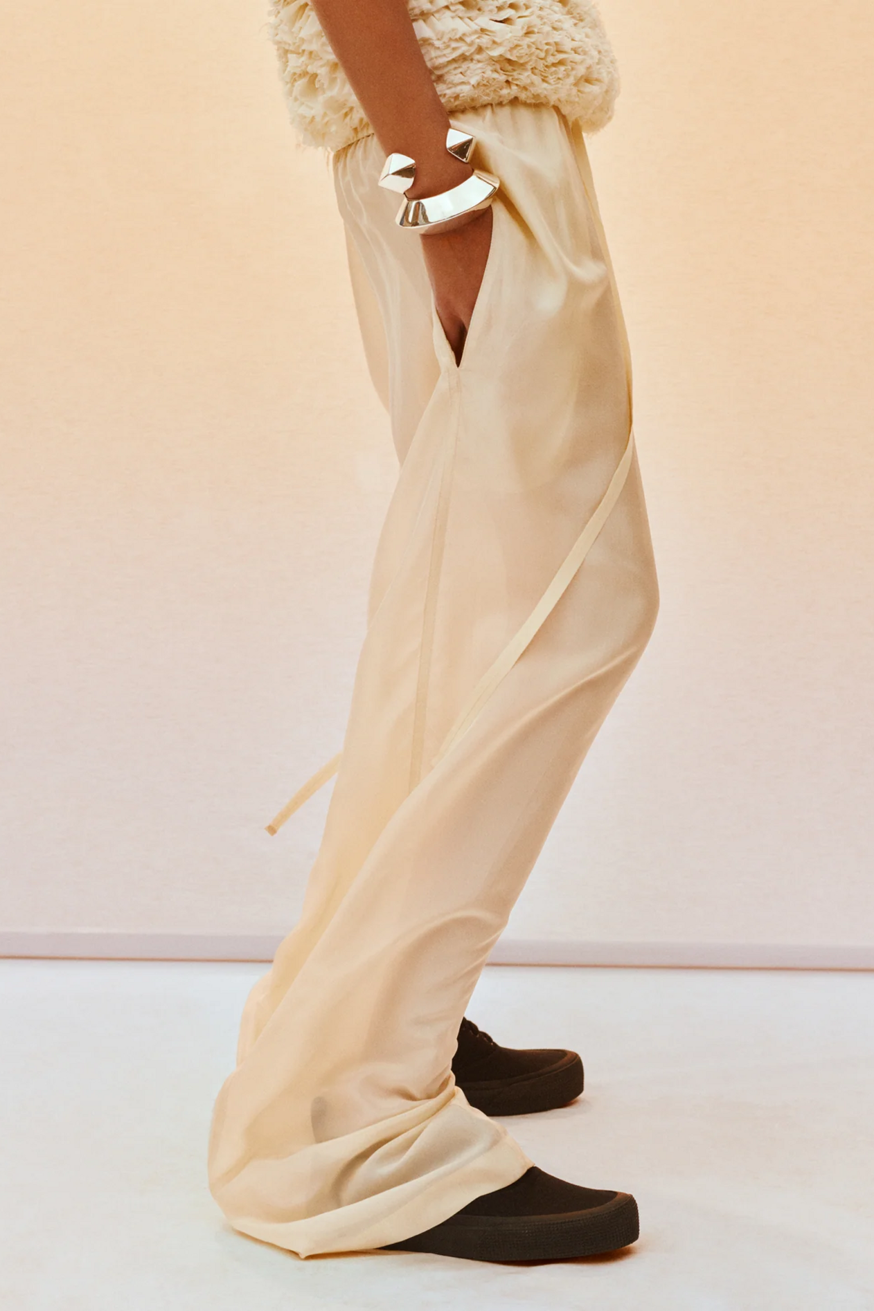 比例依然是所有设计的基石。服装的剪裁略有偏差,但并非刻意追求实验性,而是经过精心控制。服装的廓形通过巧妙调整改变了在身上的贴合度,无论是裤子的宽度、衬衫的长度,还是层叠穿搭的风格,都营造出一种微妙的不平衡感。据悉该系列将于今年 6 月在 Phoebe Philo 官网和指定零售商处发售,敬请期待。