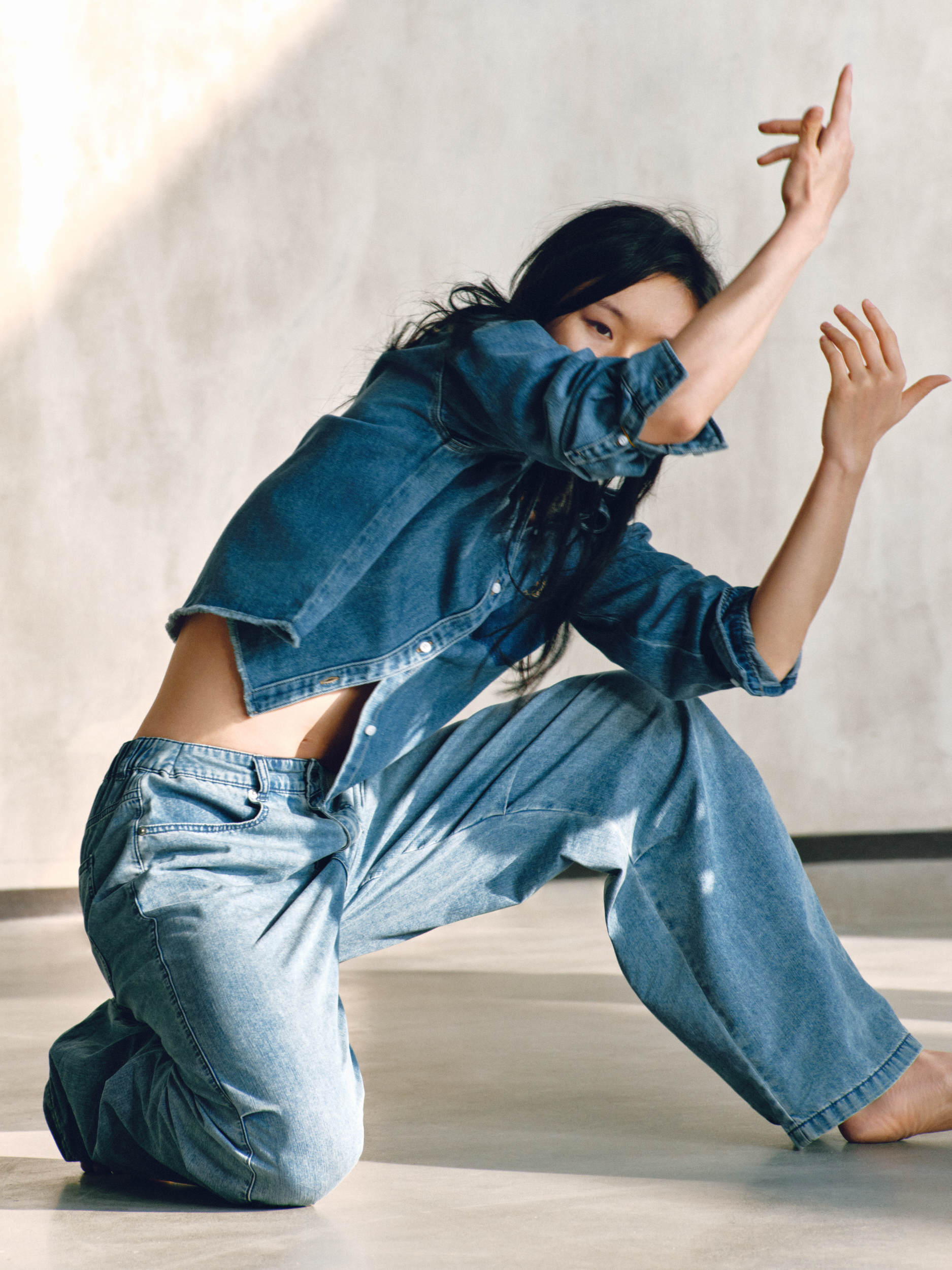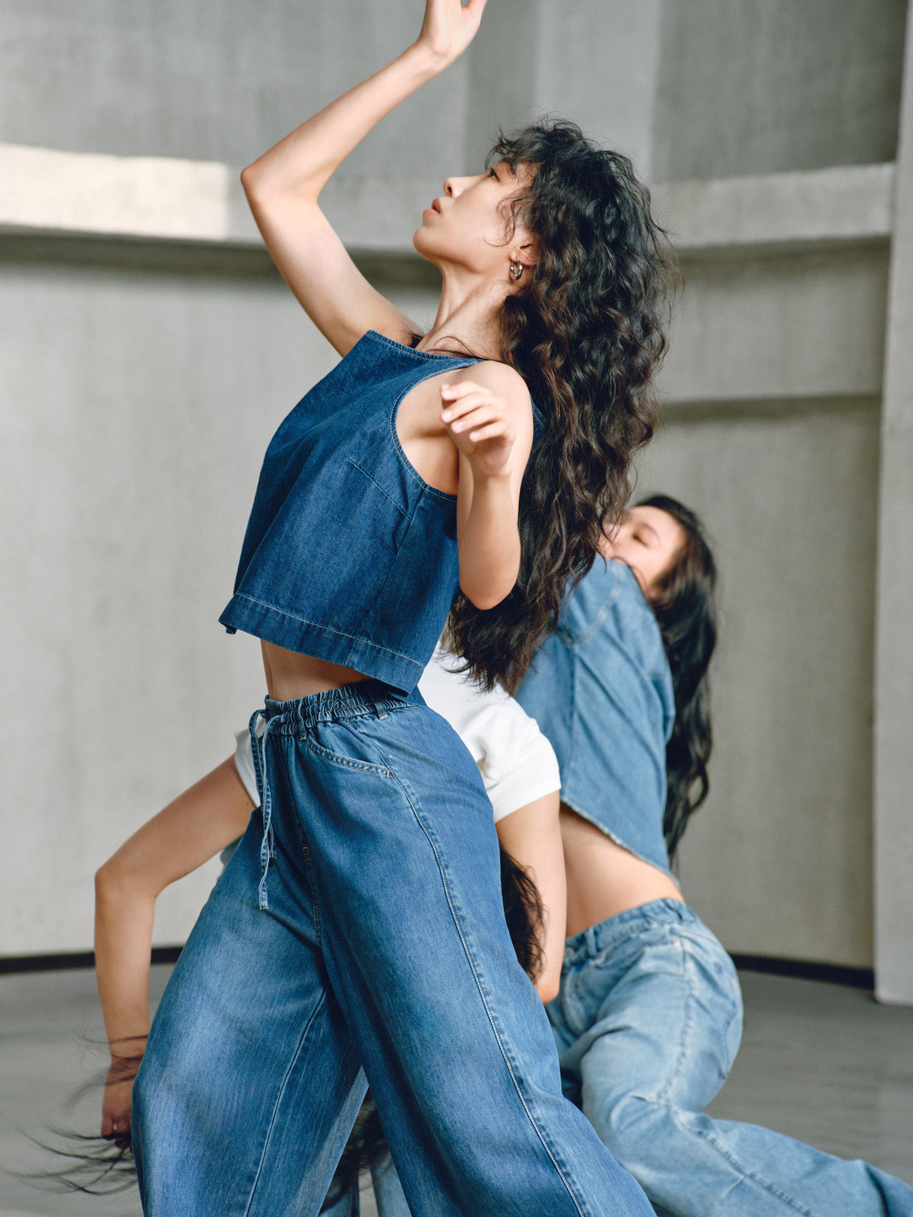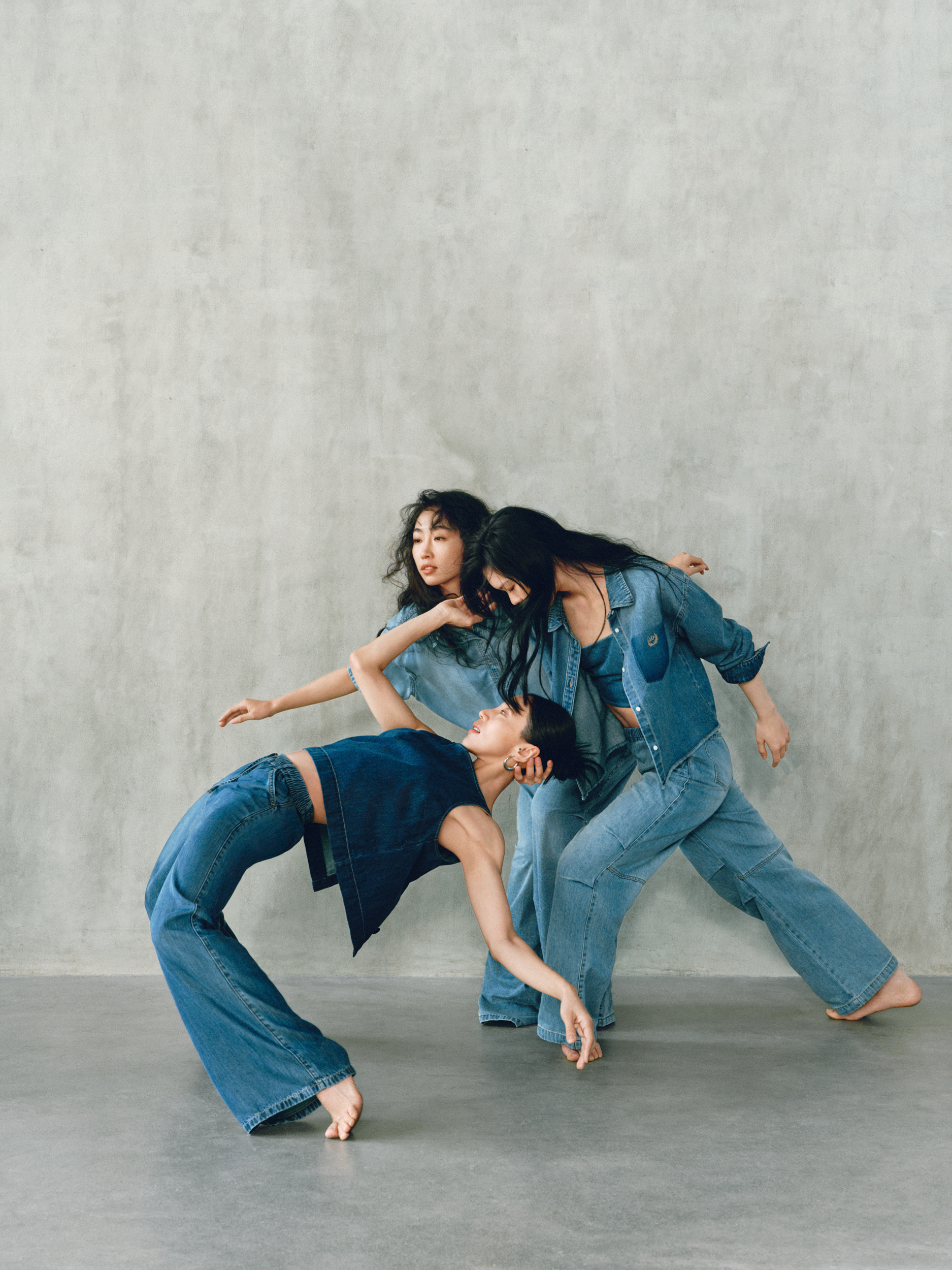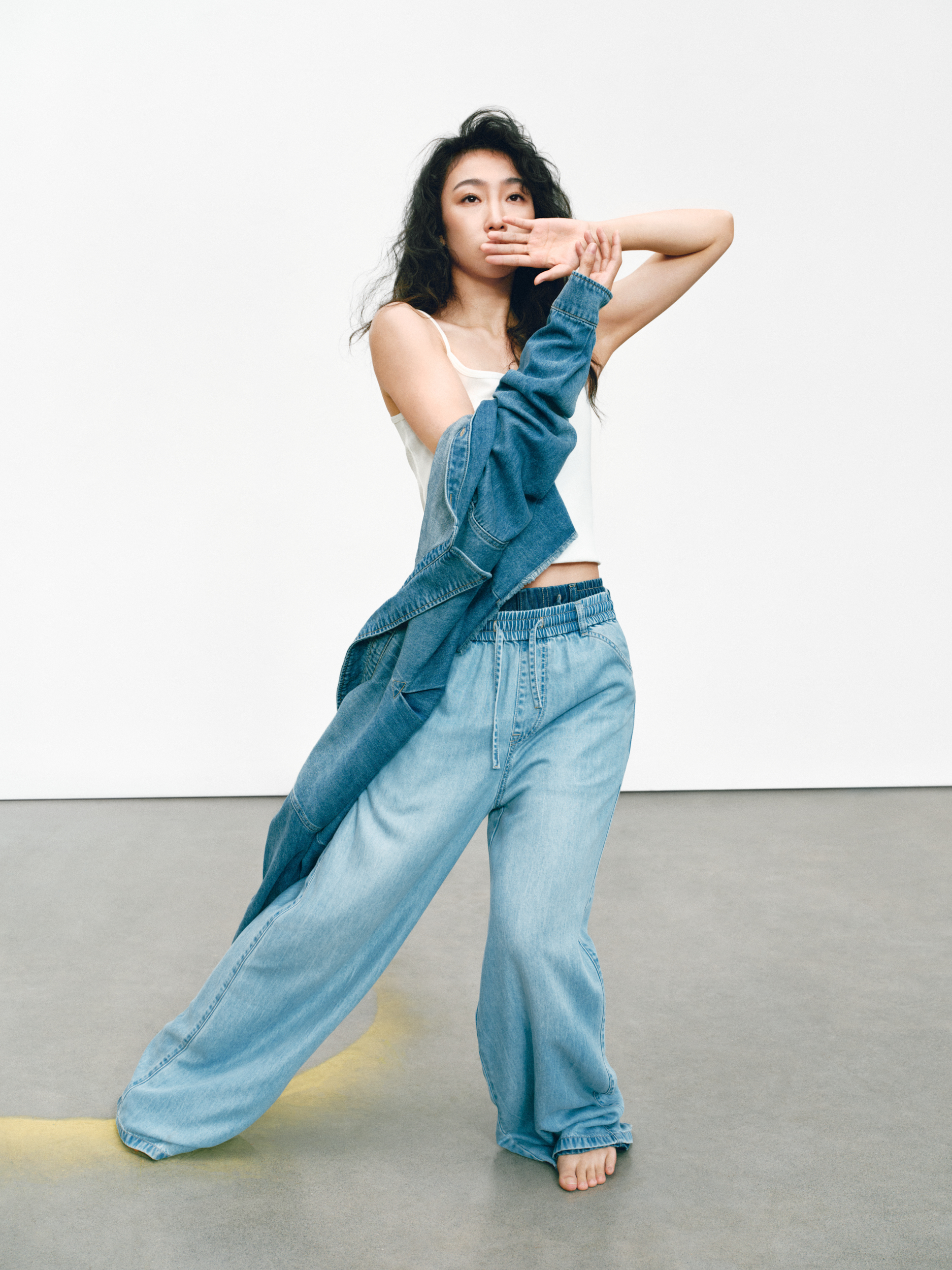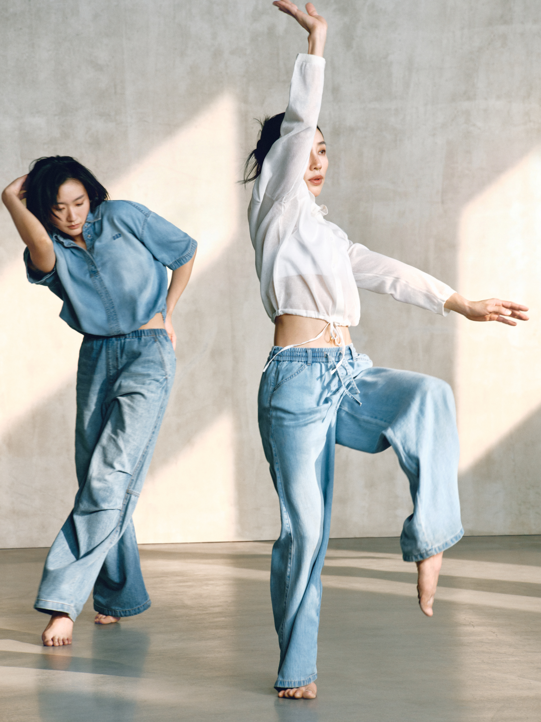 GAP 的「留白」美学不仅停留在精神维度,更巧妙注入两大产品系列:天丝牛仔(Tencel Denim)系列与经典卡其(Khaki)系列。伴随舞者的灵动演绎,天丝牛仔(Tencel Denim)系列服饰呈现出宛若「第二层肌肤」的细腻触感与垂坠性。打破了传统牛仔「硬朗」、「束缚」的刻板印象,在物理层面实现了真正的「留白」:以丝滑垂顺的质地,打造「会呼吸的牛仔」,为肢体预留出自由舒展的空间。