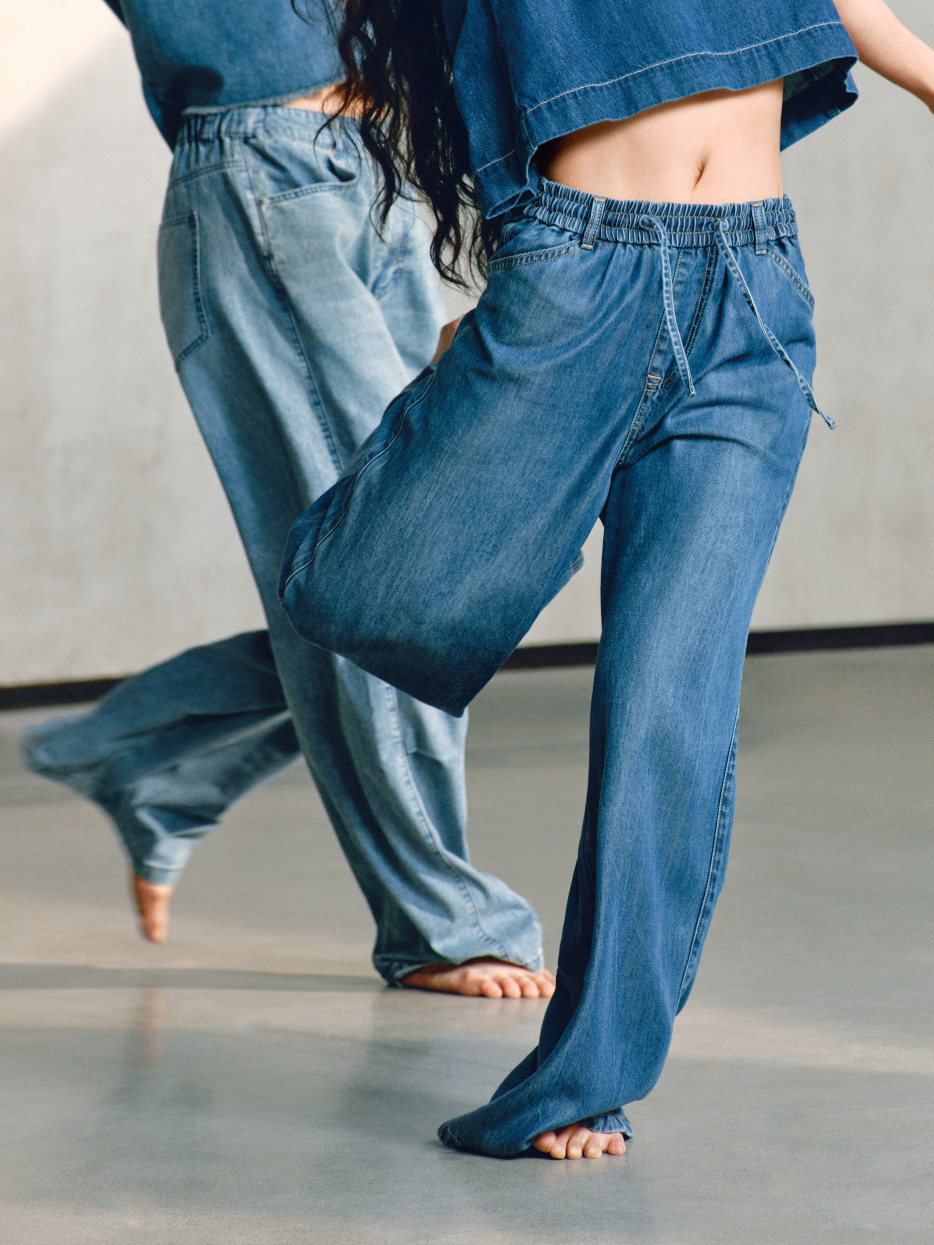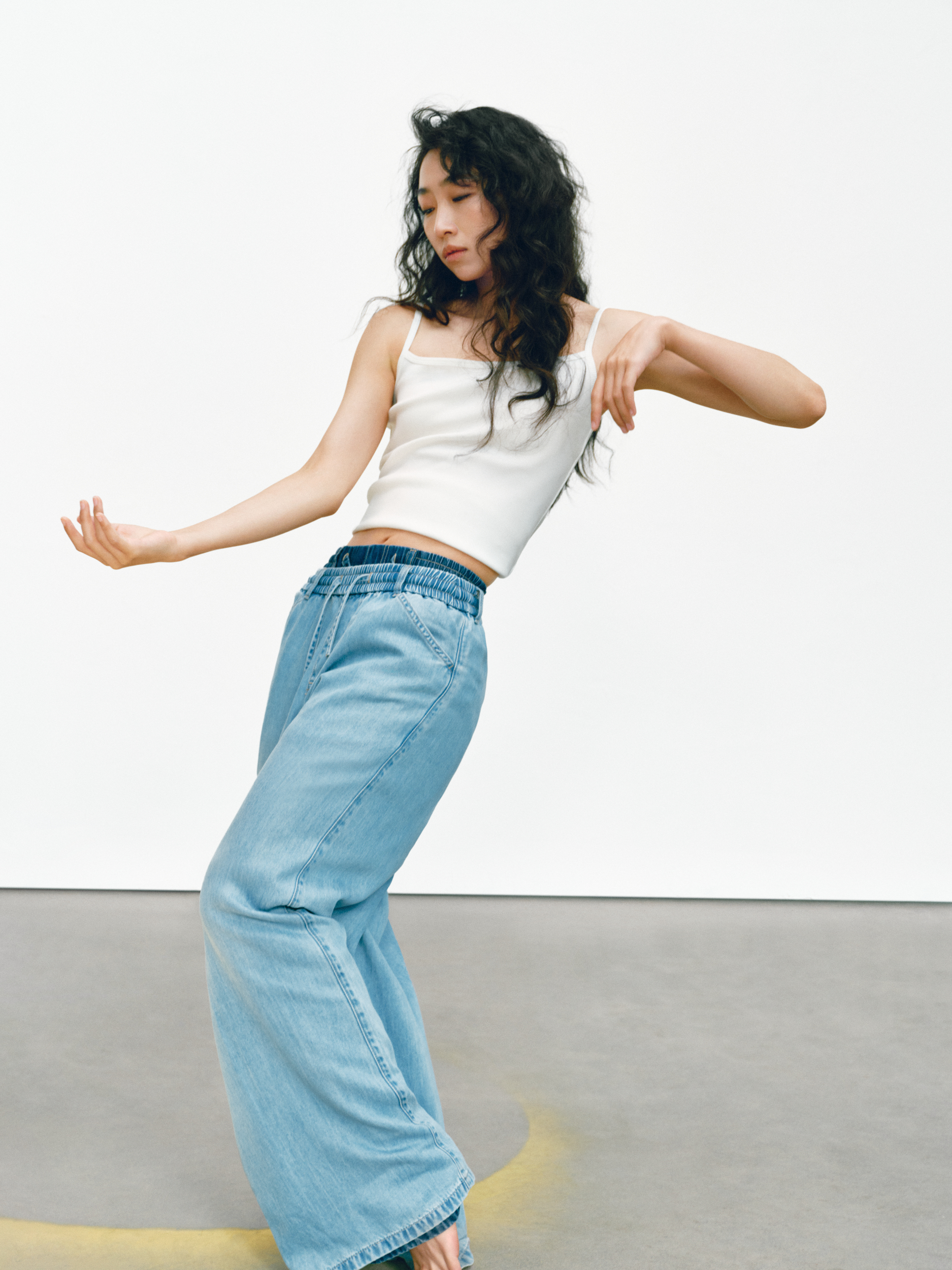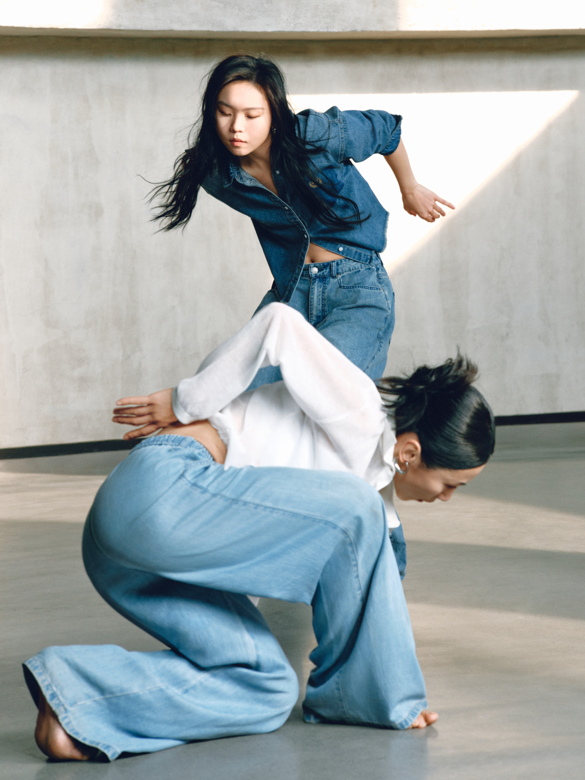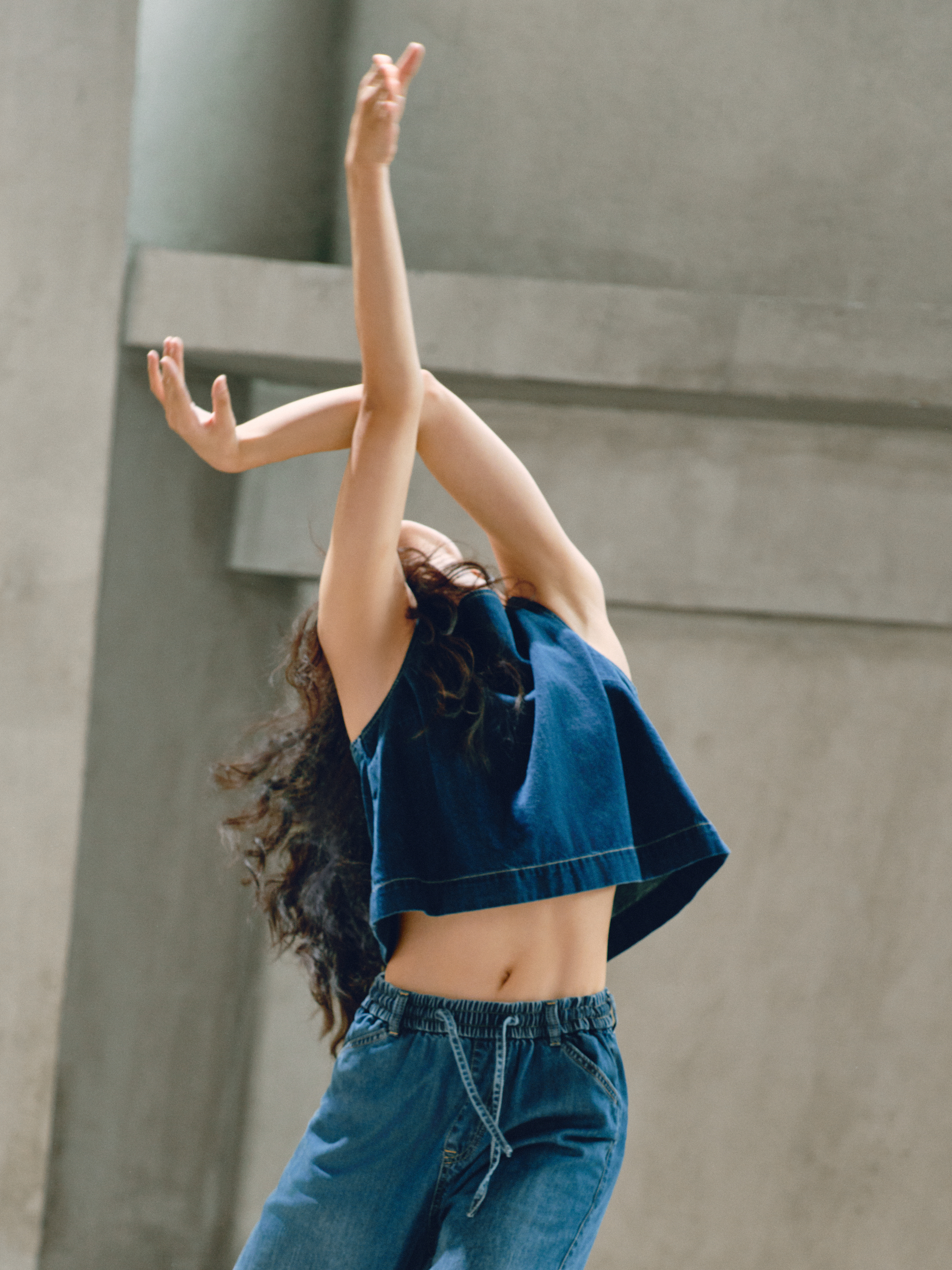 GAP 的「留白」美学不仅停留在精神维度,更巧妙注入两大产品系列:天丝牛仔(Tencel Denim)系列与经典卡其(Khaki)系列。伴随舞者的灵动演绎,天丝牛仔(Tencel Denim)系列服饰呈现出宛若「第二层肌肤」的细腻触感与垂坠性。打破了传统牛仔「硬朗」、「束缚」的刻板印象,在物理层面实现了真正的「留白」:以丝滑垂顺的质地,打造「会呼吸的牛仔」,为肢体预留出自由舒展的空间。