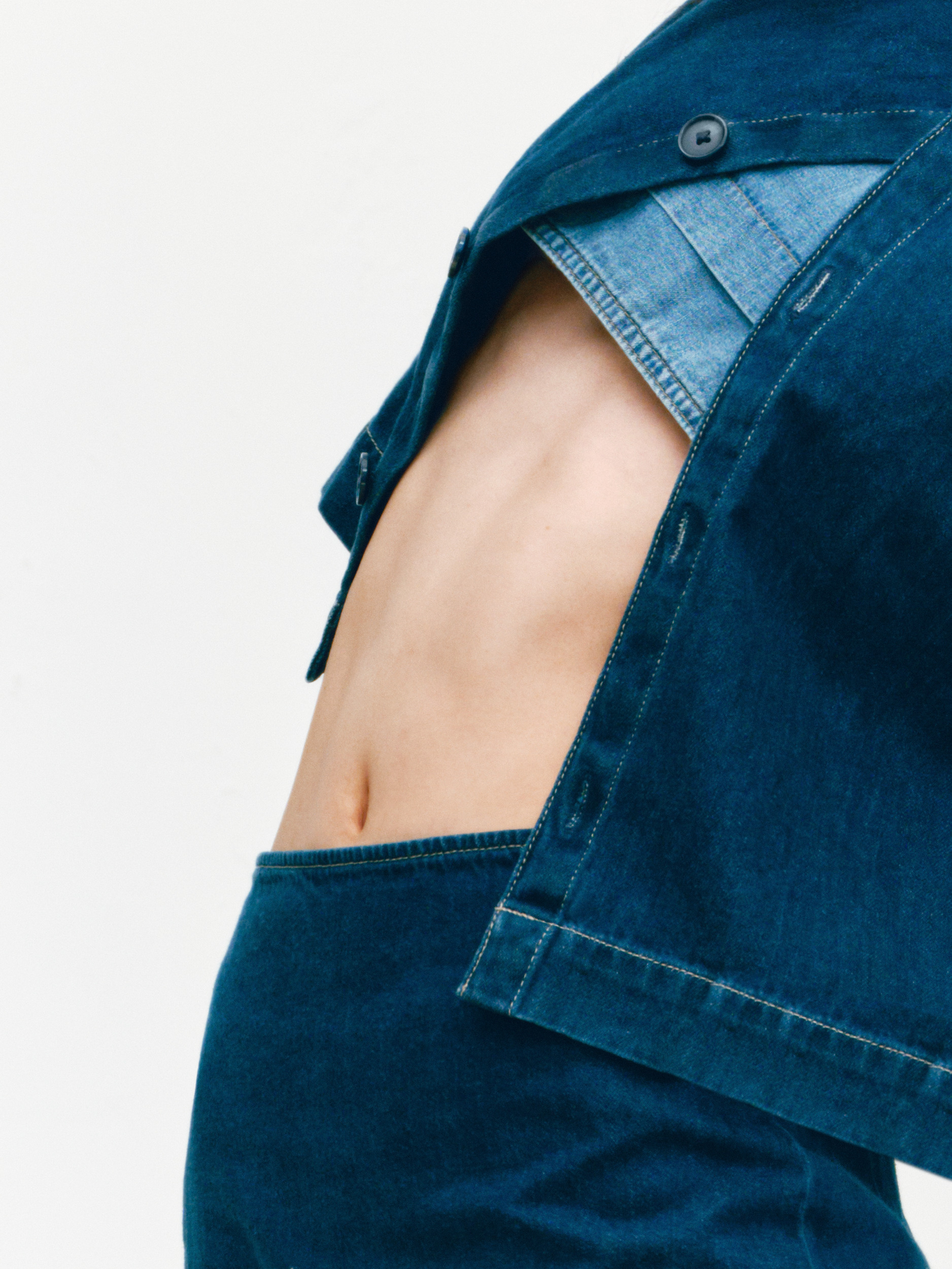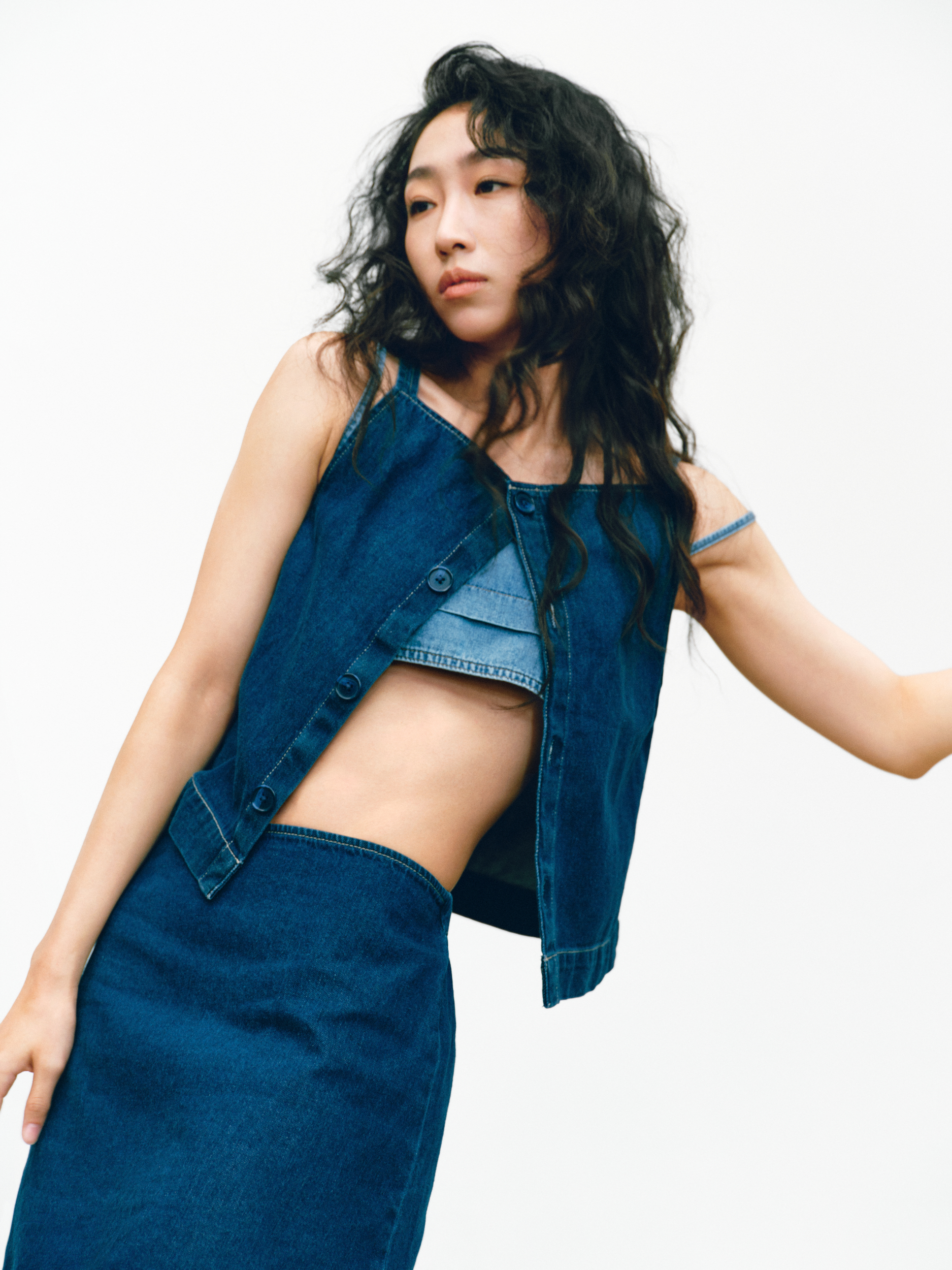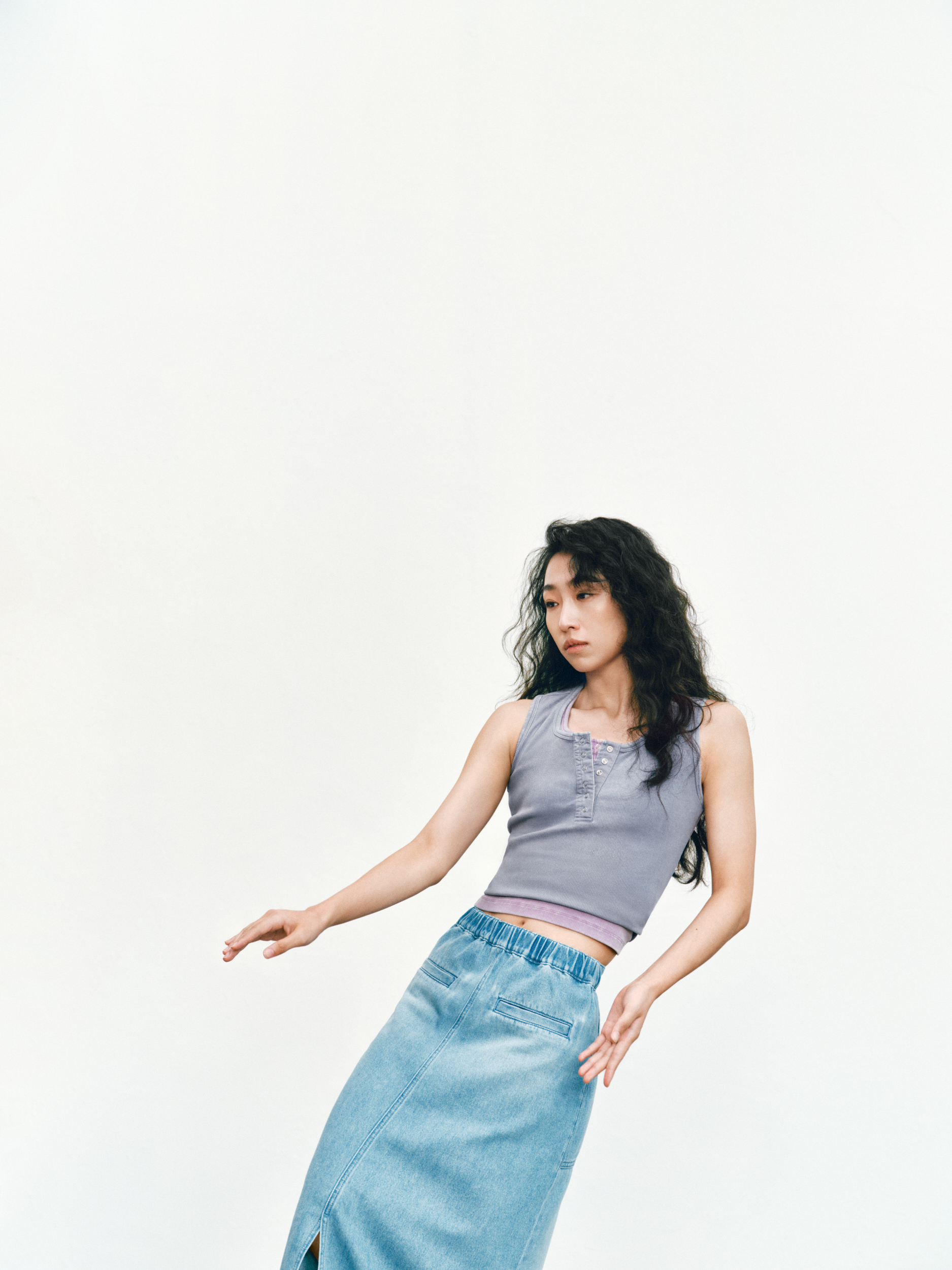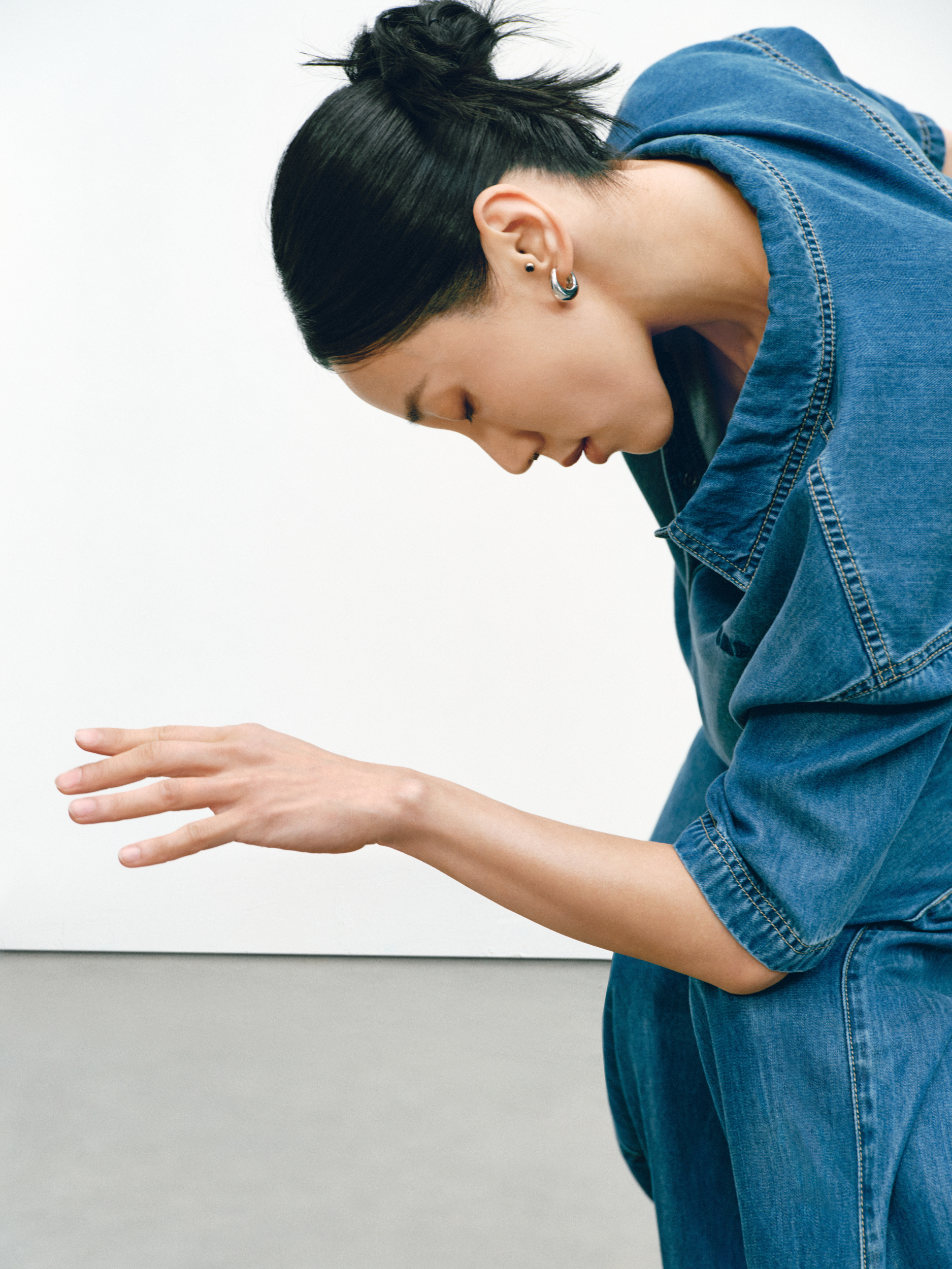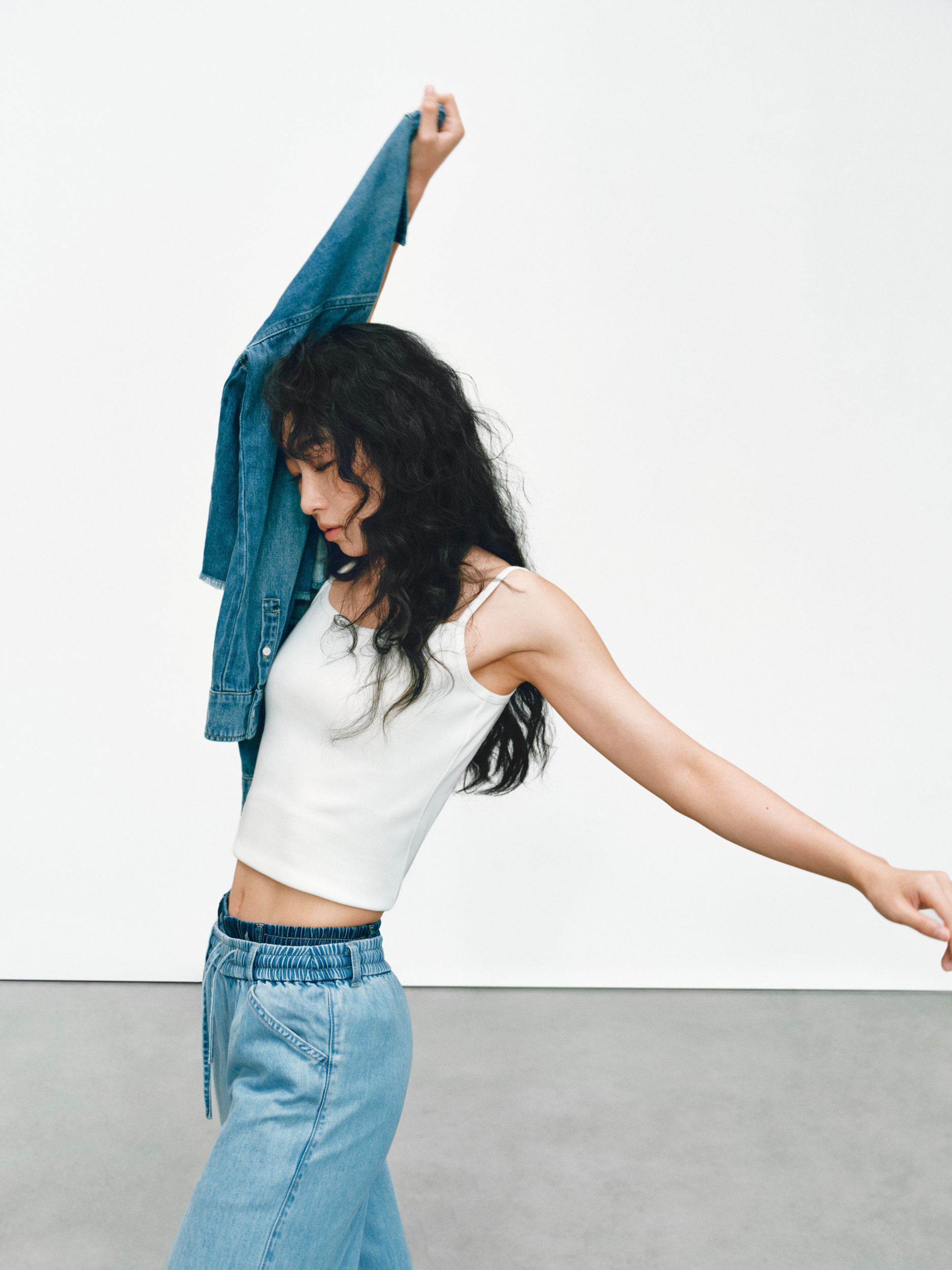 GAP 的「留白」美学不仅停留在精神维度,更巧妙注入两大产品系列:天丝牛仔(Tencel Denim)系列与经典卡其(Khaki)系列。伴随舞者的灵动演绎,天丝牛仔(Tencel Denim)系列服饰呈现出宛若「第二层肌肤」的细腻触感与垂坠性。打破了传统牛仔「硬朗」、「束缚」的刻板印象,在物理层面实现了真正的「留白」:以丝滑垂顺的质地,打造「会呼吸的牛仔」,为肢体预留出自由舒展的空间。
