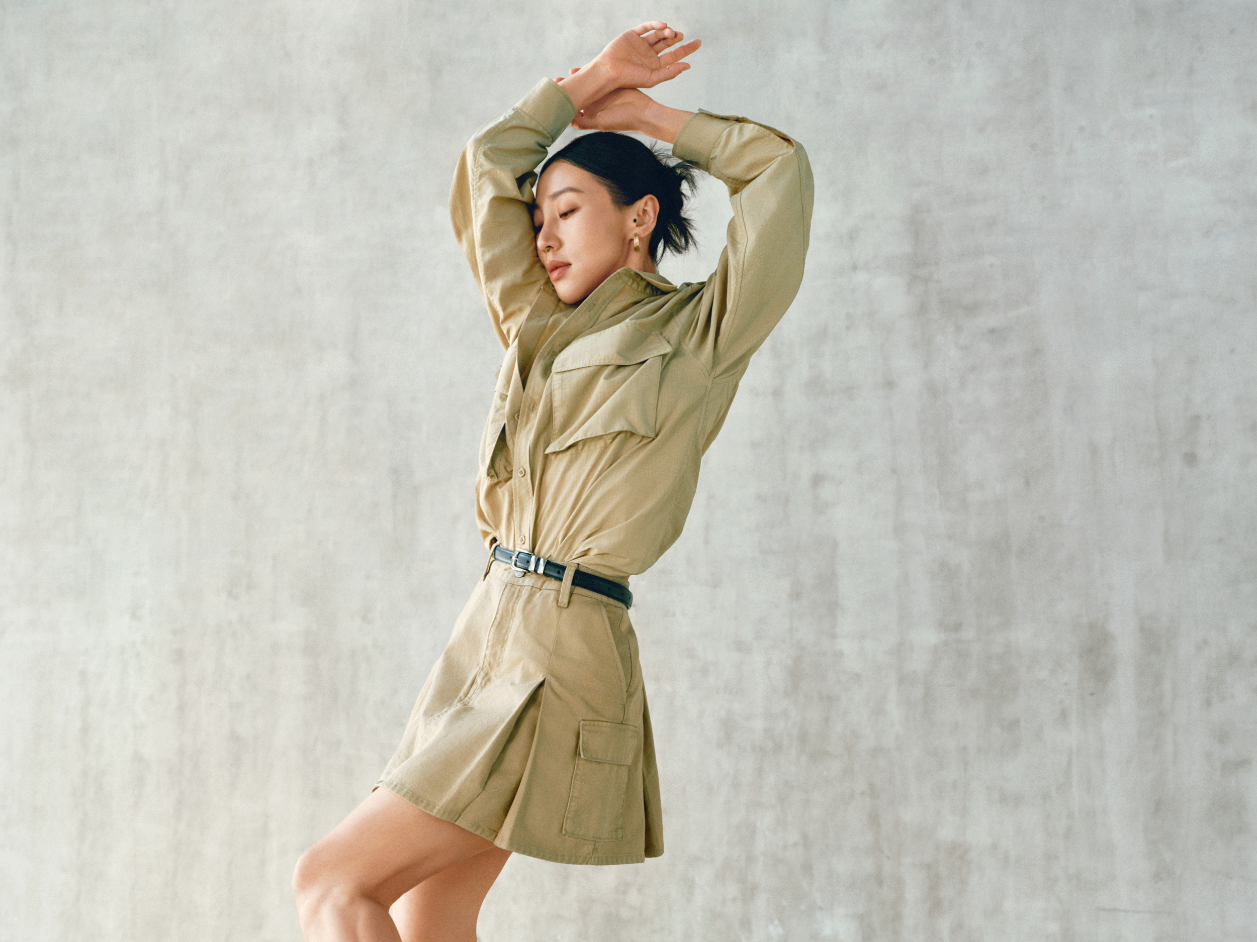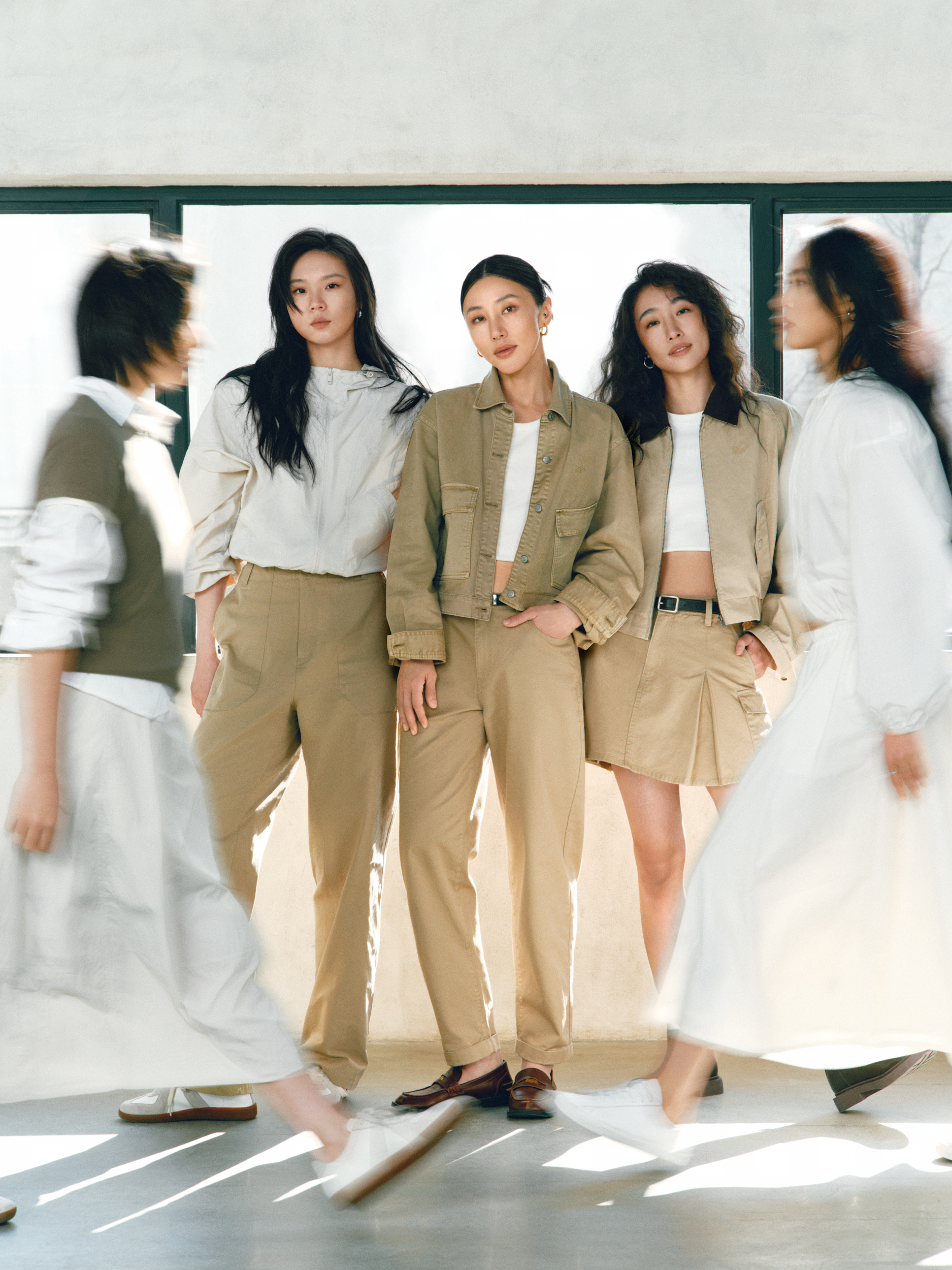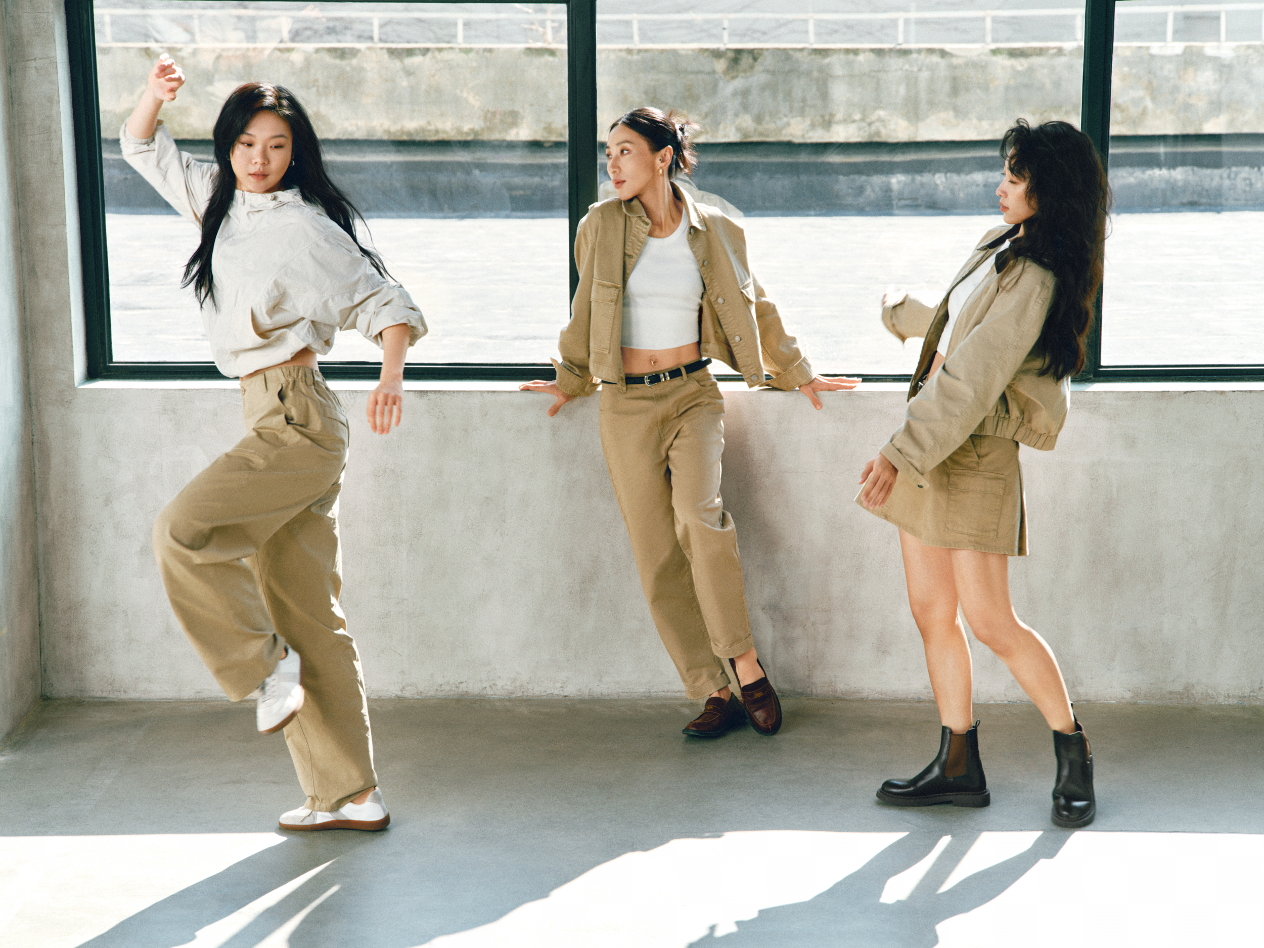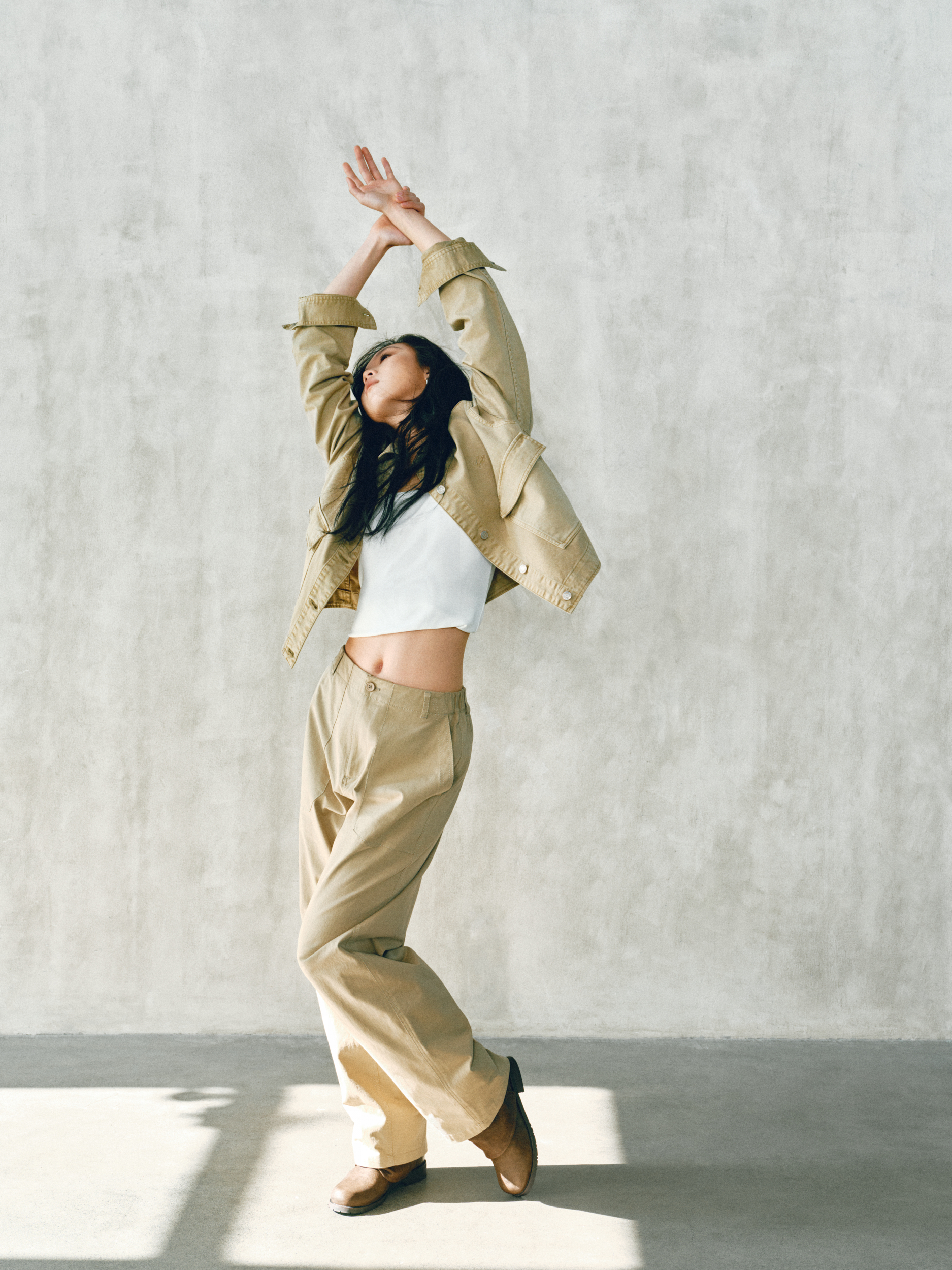 与此同时,经典卡其(Khaki)系列服饰依托现代舞的艺术张力与纯粹意境,传统的「硬朗工装」标签,以干净的视觉语言、利落的廓型和实用性的设计,成为极具质感的 Clean Fit 美学代表。其纯粹的极简设计不仅能从容应对城市多元场景的切换,更消解了繁复的穿搭焦虑,让女性在日常的每一个瞬间,都能感受到为生活「留白」的轻盈与自在。