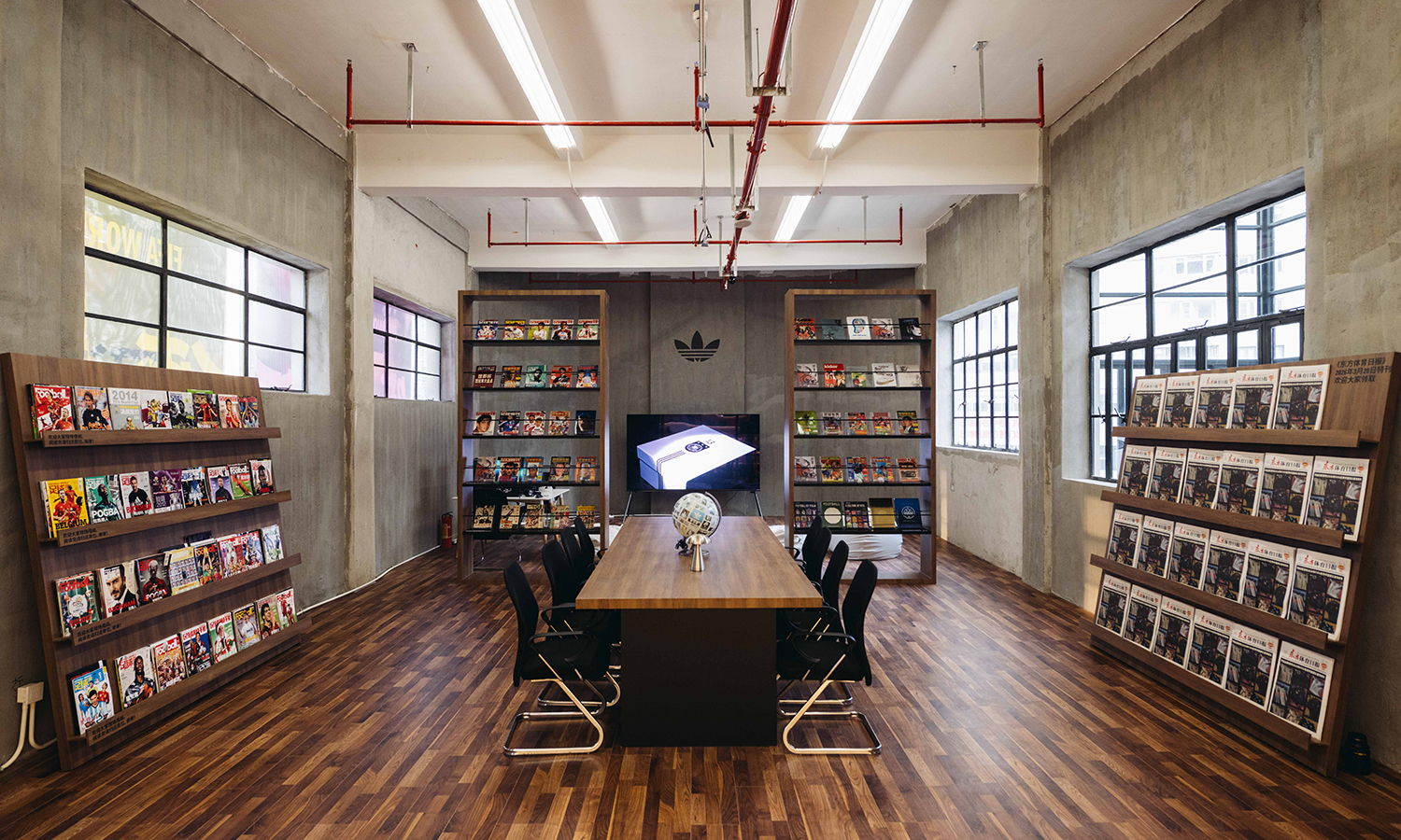学校四层打造的「世界杯档案室」,通过球衣、战靴、海报与珍稀藏品,回顾了阿迪达斯作为世界杯官方合作伙伴留下的经典历史瞬间;「世界杯摄影展」、「世界杯主题图书馆」等空间,凭借经典体育摄影作品和上百本世界杯年份主题杂志,带领观众重温历届赛事的标志性时刻;「三叶草球衣展」则以艺术街头策展的形式,盘点了近年三叶草各大联名的热门球衣单品,以及上世纪不同年代的古着球衣。此外,活动现场还设置了与 adidas skateboarding 联动的「滑板教室」、「玩舞成团」限时街舞快闪、世界杯主题食堂和可口可乐小卖部,从多个文化维度展现了足球对街头文化与生活方式的持续影响。