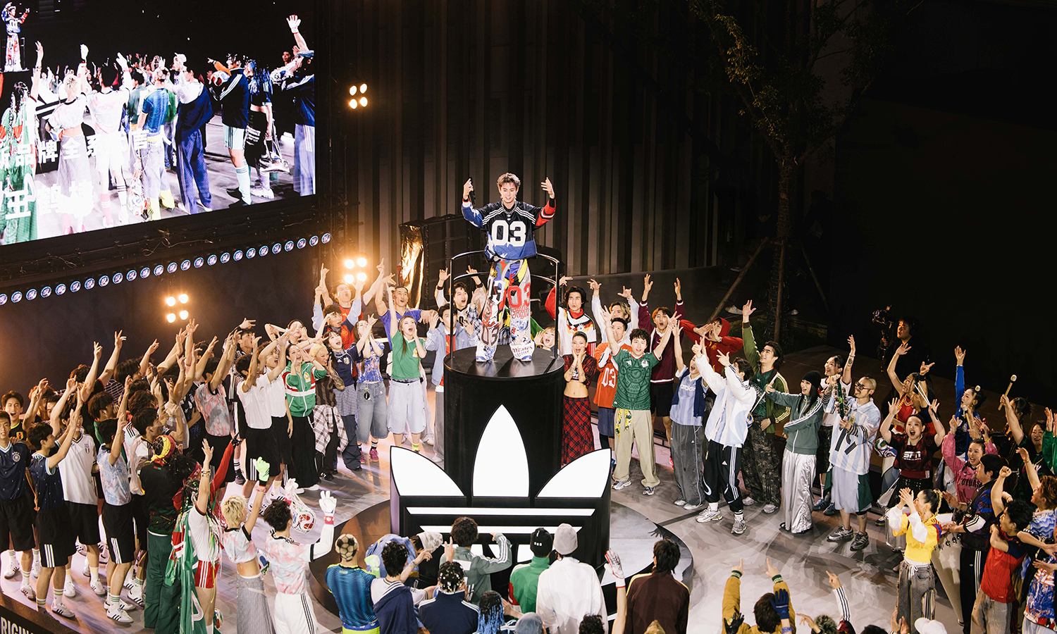 3 月 20 日的阿迪达斯复古市集开幕秀上,新天地喇格纳小学(旧址)的操场作为主舞台,上演了融合走秀与现场表演的世界杯客场球衣发布大秀。阿迪达斯品牌全系代言人王鹤棣完成首次线下亮相,以压轴嘉宾的身份登场,与现场观众及上海交通大学男子足球队、上海同济大学男子足球队共同见证了世界杯国家队客场球衣的正式揭幕,让校园足球力量成为本次发布盛典的重要组成部分。同时,现场开放了世界杯主题零售空间,消费者可选购最新的国家队客场球衣,还能体验官方印号与 DIY 定制服务,打造专属球衣。