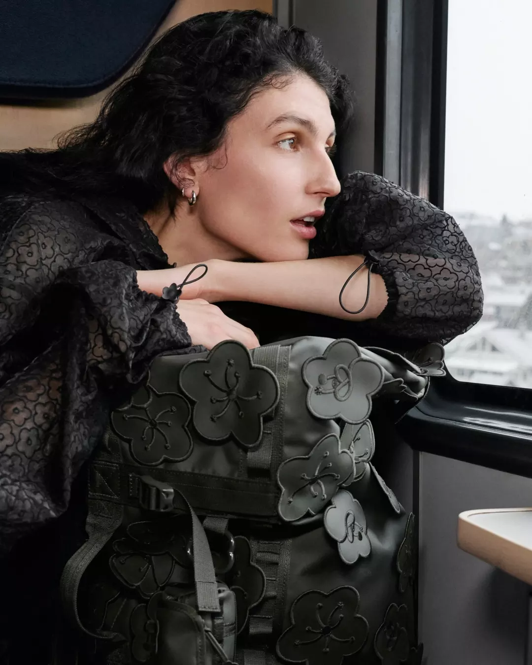 本季作为双方合作的第三个季度系列,以「拥抱自然中的不确定性」为灵感,将功能性户外设计与女性化美学相结合,打破传统风格边界。系列单品涵盖多款核心造型,包括融入花卉元素的长款风衣外套、可调节三片式连帽设计,以及配备花形抽绳扣的细节处理;另有可在夹克与背心之间切换的两用外套与长裤套装,以及兼具机能与优雅细节的套头风衣。