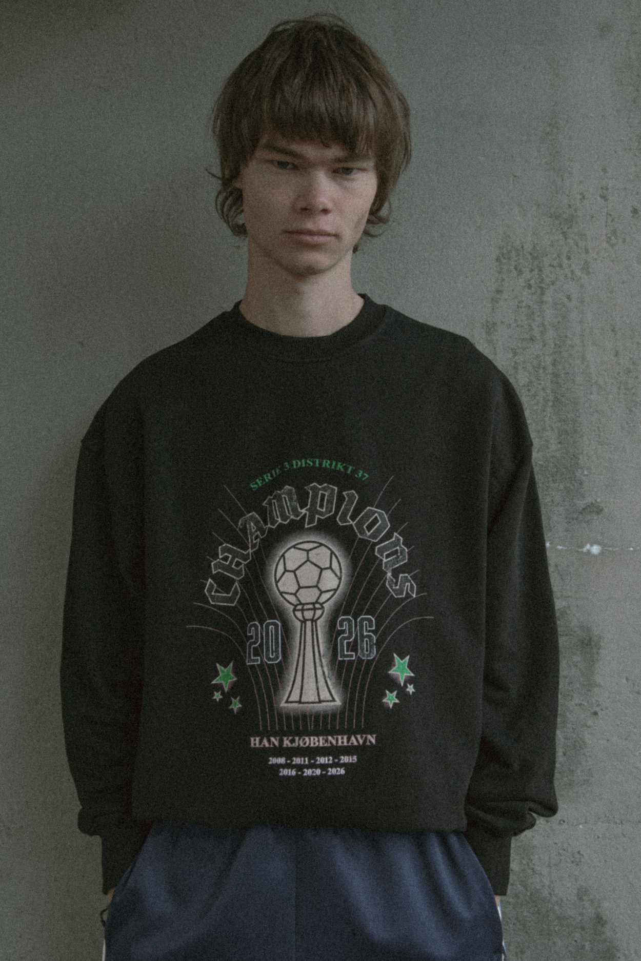 Han Kjøbenhavn 发布了名为「DISTRIKT」的 2026 早秋系列。该系列以足球文化为核心,创意总监 Jannik Wikkelsø Davidsen 从自身受足球文化影响的成长经历中汲取灵感,着重展现球迷如何收集物品并赋予其意义。他将球衣、卡片和海报这些元素融入时尚语境,向丹麦足球传奇人物 Ivan Nielsen 表示致敬。