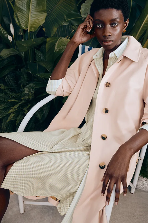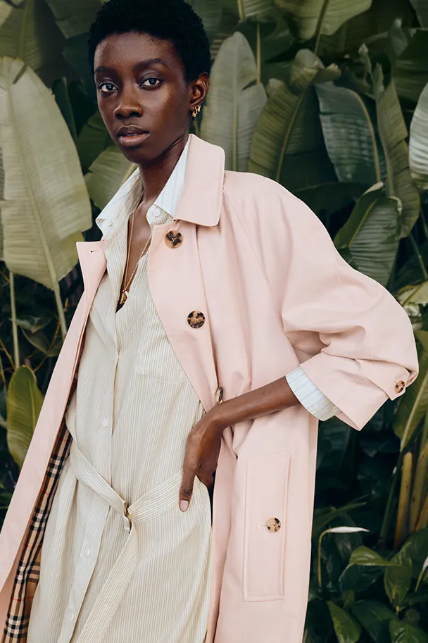 为了庆祝品牌成立 170 周年,BURBERRY 推出了全新防雨外套系列。新一季主打轻盈的廓形和流畅的线条,对 Kensington 和 Fitzrovia 风衣、Camden 大衣在内的品牌标志性外套进行了改良。经典廓形得以保留,比例上的细微变化则带来了更现代的气息。整体色调柔和轻松,石米色、浅粉色和石墨灰色与轻盈的面料和应季主题相得益彰。