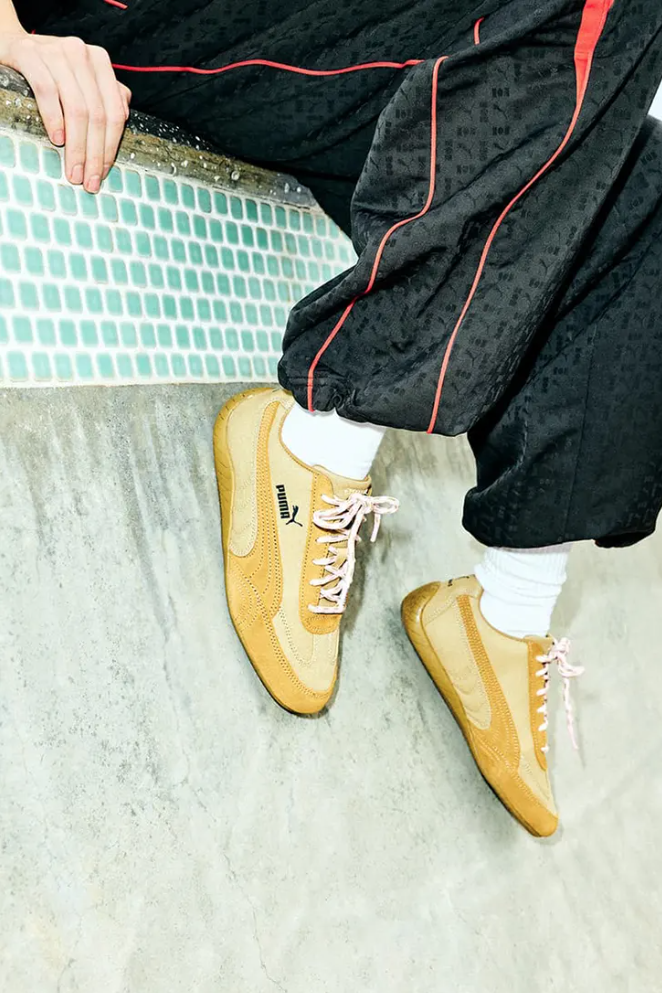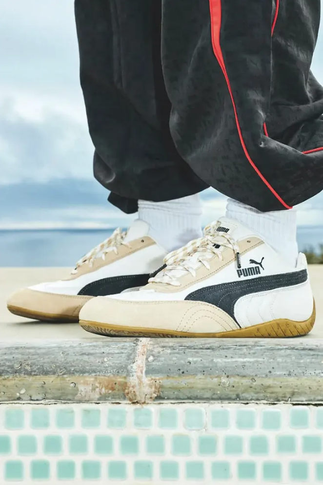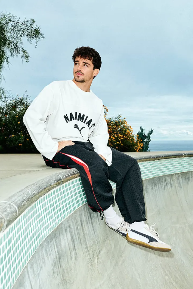 PUMA 与洛杉矶设计师 Doni Nahmias 再度携手,推出了双方的第二支合作系列。新系列结合了 PUMA 的赛车历史和 NAHMIAS 的西海岸背景,兼具性能与街头感。炙手可热的 F1 车手 Charles Leclerc 出镜演绎了其型录,进一步强化了赛车元素。PUMA x NAHMIAS Speedcat 是该系列的核心,这款低帮赛车鞋融入了 NAHMIAS 的设计语言,共推出了三种配色。亮点包括麂皮覆面、轻微做旧处理以及联名标识。