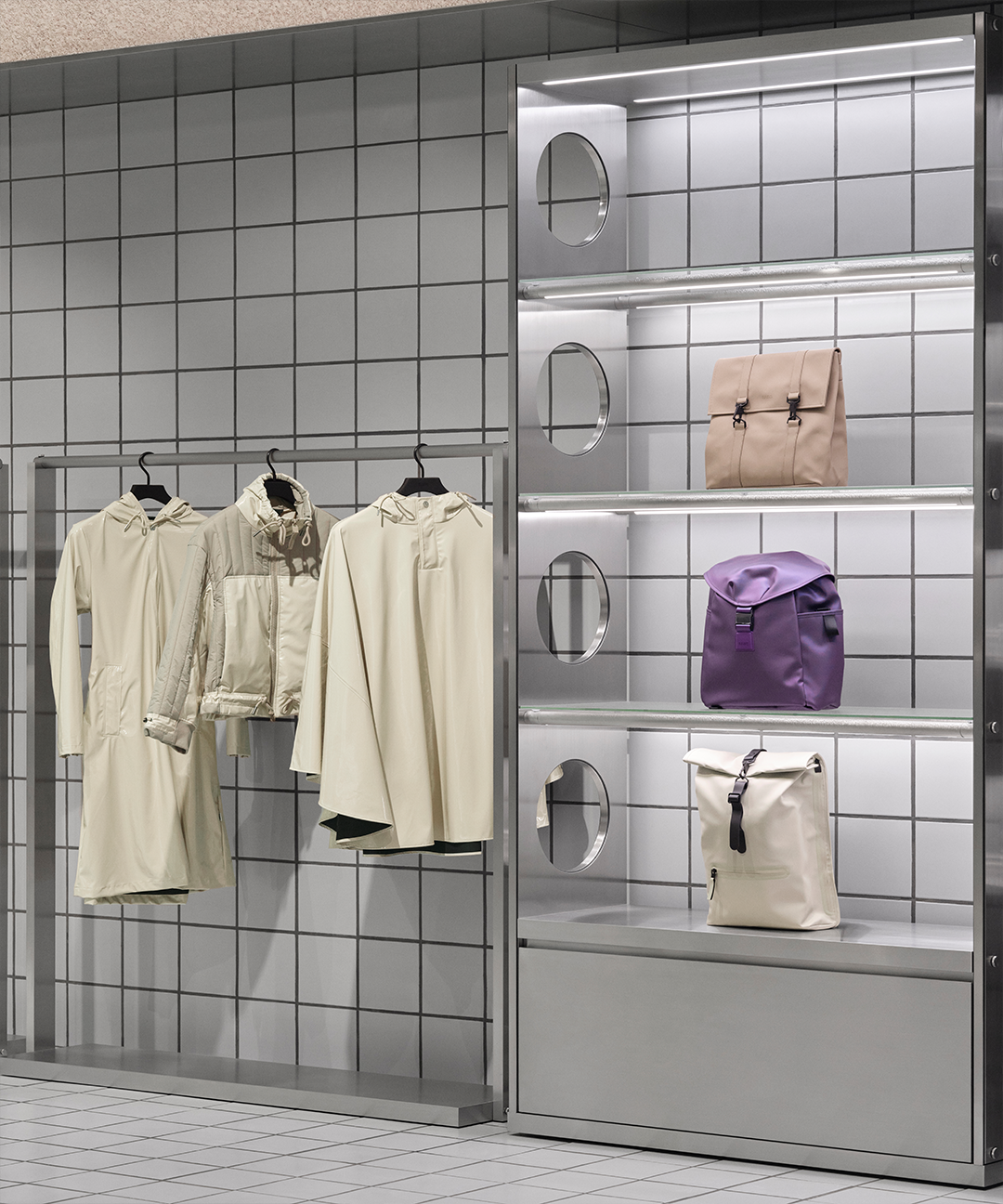 上海旗舰店是 Rains 在过去 12 个月内开出的第三家旗舰店,此前两家分别位于纽约麦迪逊大道与阿姆斯特丹莱德街。门店由瑞典工作室 Stamuli 合作设计,旨在打造一个让人愿意驻足停留的空间。在概念上,它希望将丹麦的城市精神与 Rains 对都市户外的视角带入上海。