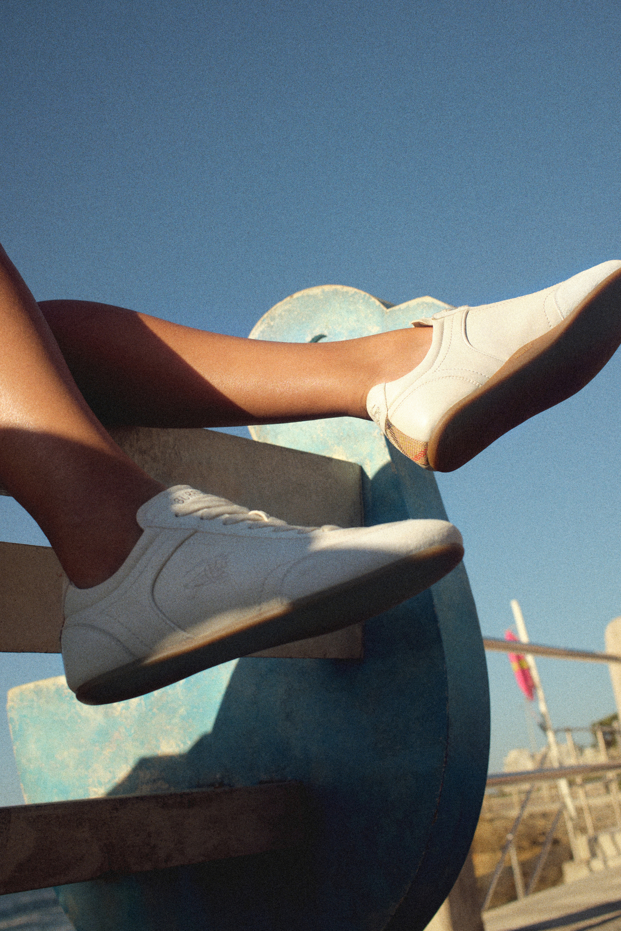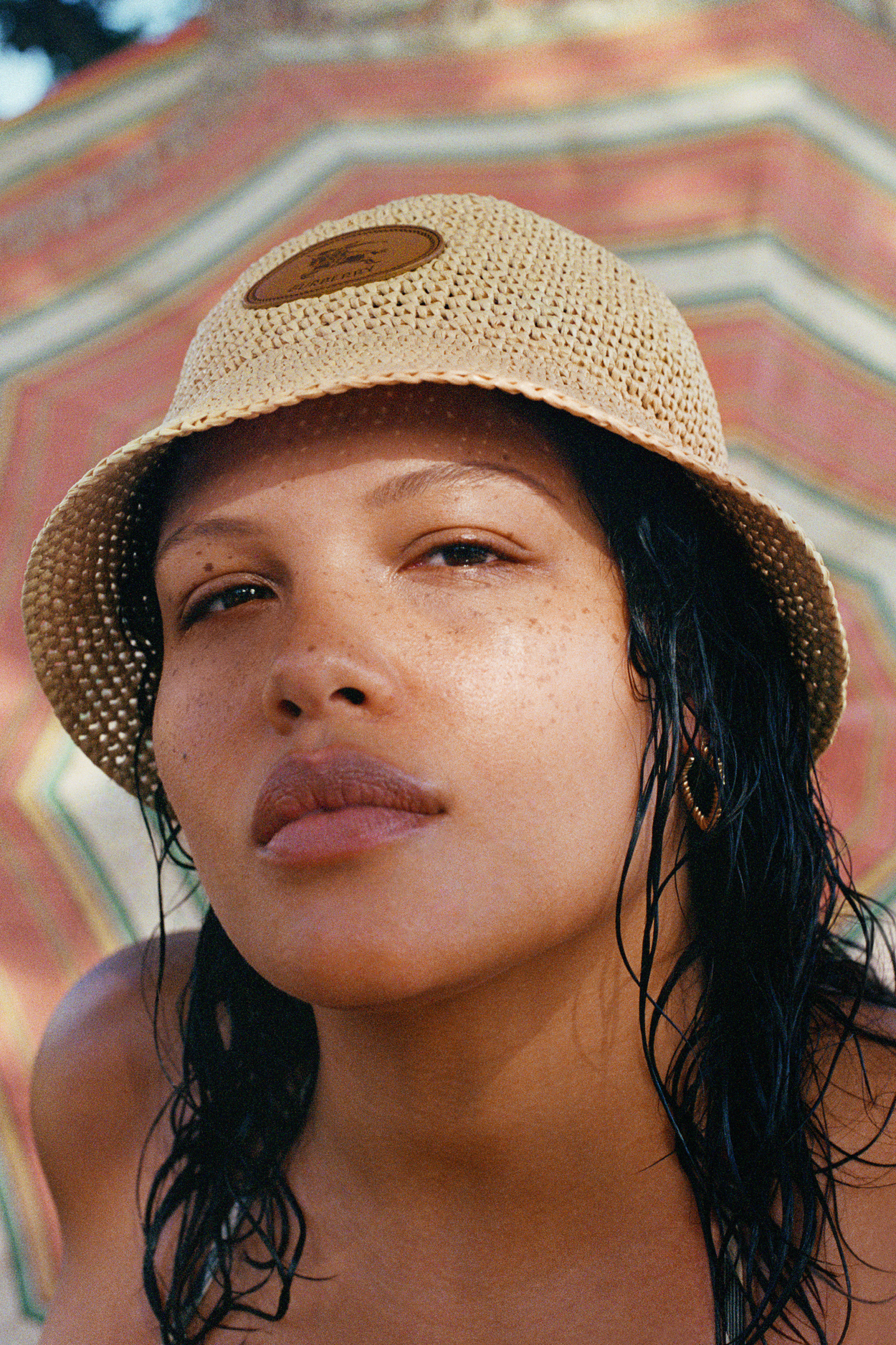 该系列主打单品以经典的 BURBERRY 格纹为特色,并引入了复古的沙米色以及柔和的茄紫色和矢车菊蓝等色调。泳池边的单品包括 BURBERRY 标志性的格纹比基尼、棉质薄纱罩衫、衬衫、短裤和轻便连帽外套,可应对突如其来的阵雨天气。配饰方面,Margate 手袋采用马达加斯加当地采摘的树叶手工制作而成;新款 Knight Runner 运动鞋以简洁低帮的造型亮相;多款凉鞋以鞭缝工艺皮革或格纹饰边的麂皮打造,完美诠释了夏日度假气息。