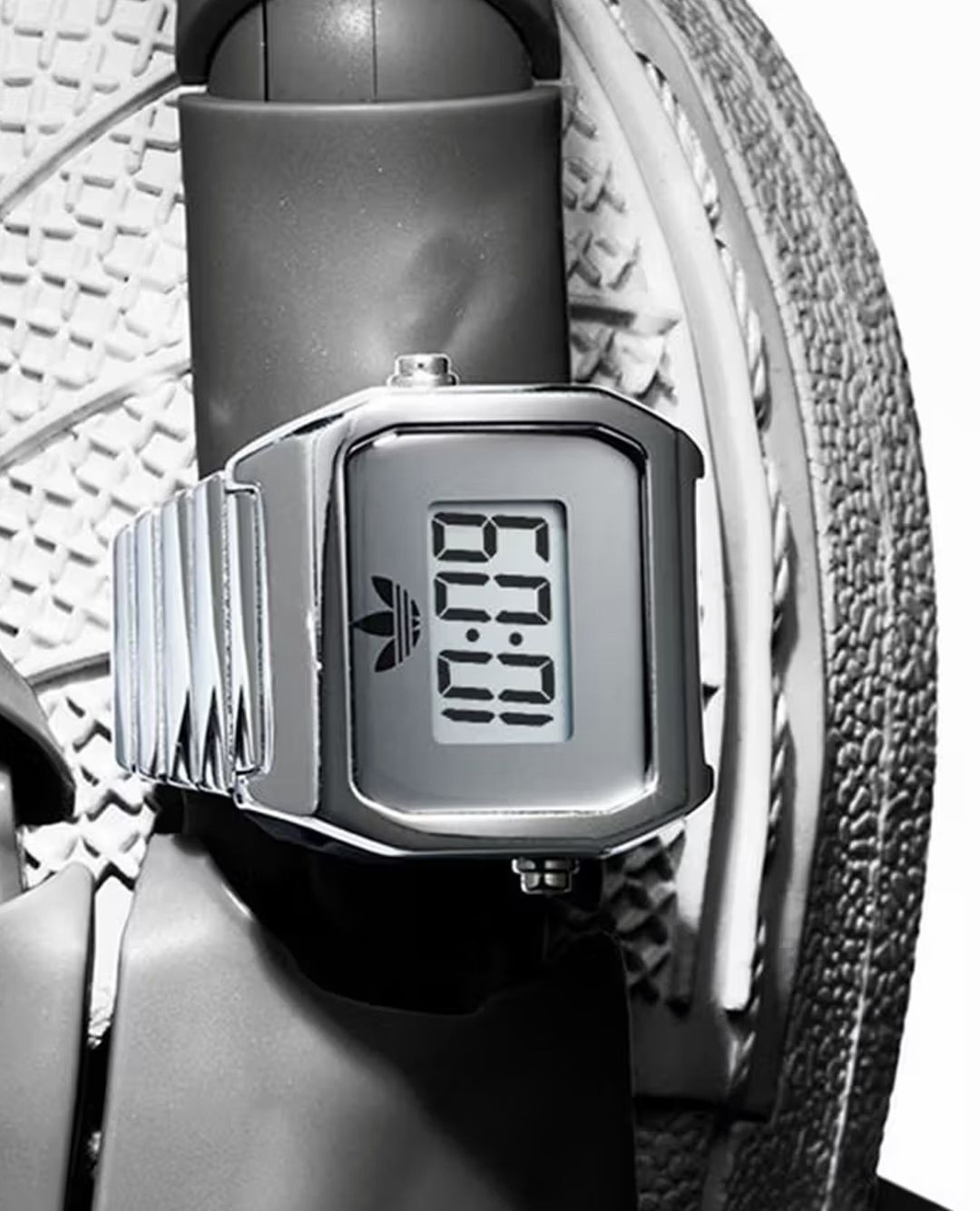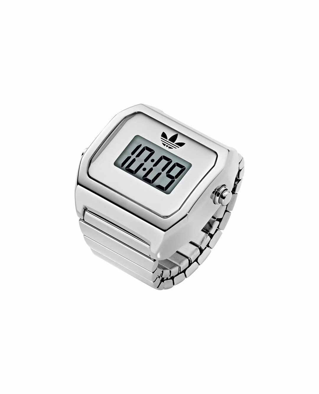 adidas Originals 推出一款名为 Digital Two Ring 的迷你指环腕表,将复古电子表的经典造型缩小至指尖尺寸,带来更具趣味性的穿戴体验。该单品采用约 20mm 的不锈钢表壳打造,并配备弹性伸缩结构,能够适配不同手指尺寸,在保证造型感的同时兼顾佩戴舒适度。配色方面提供金色与银色两种选择,将于 4 月 17 日率先在日本 adidas 官方线上渠道发售。