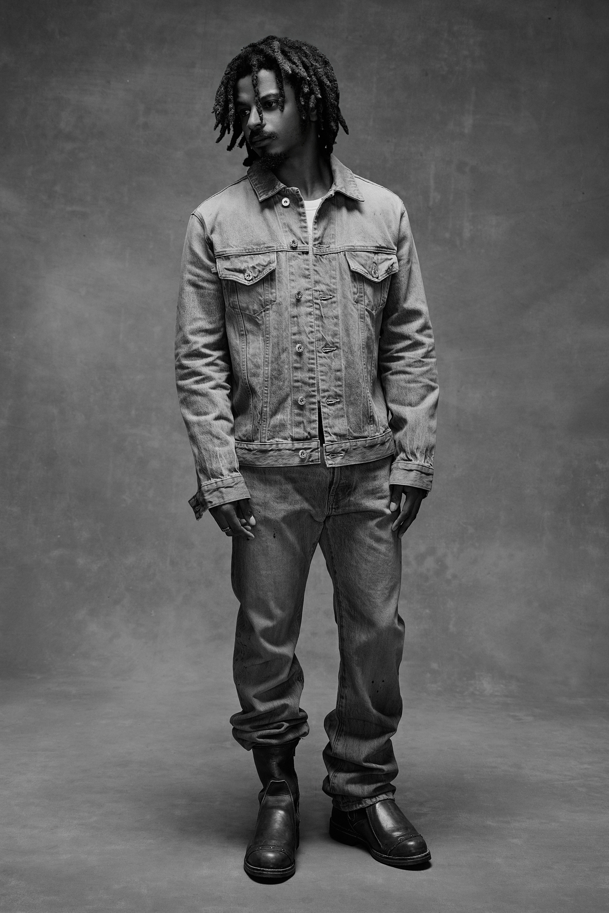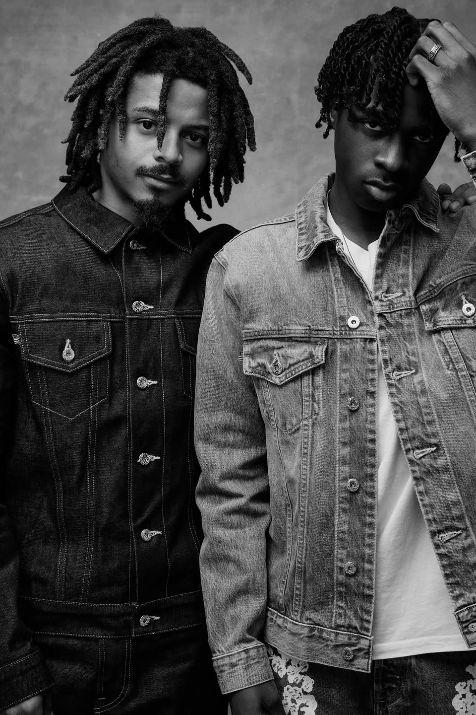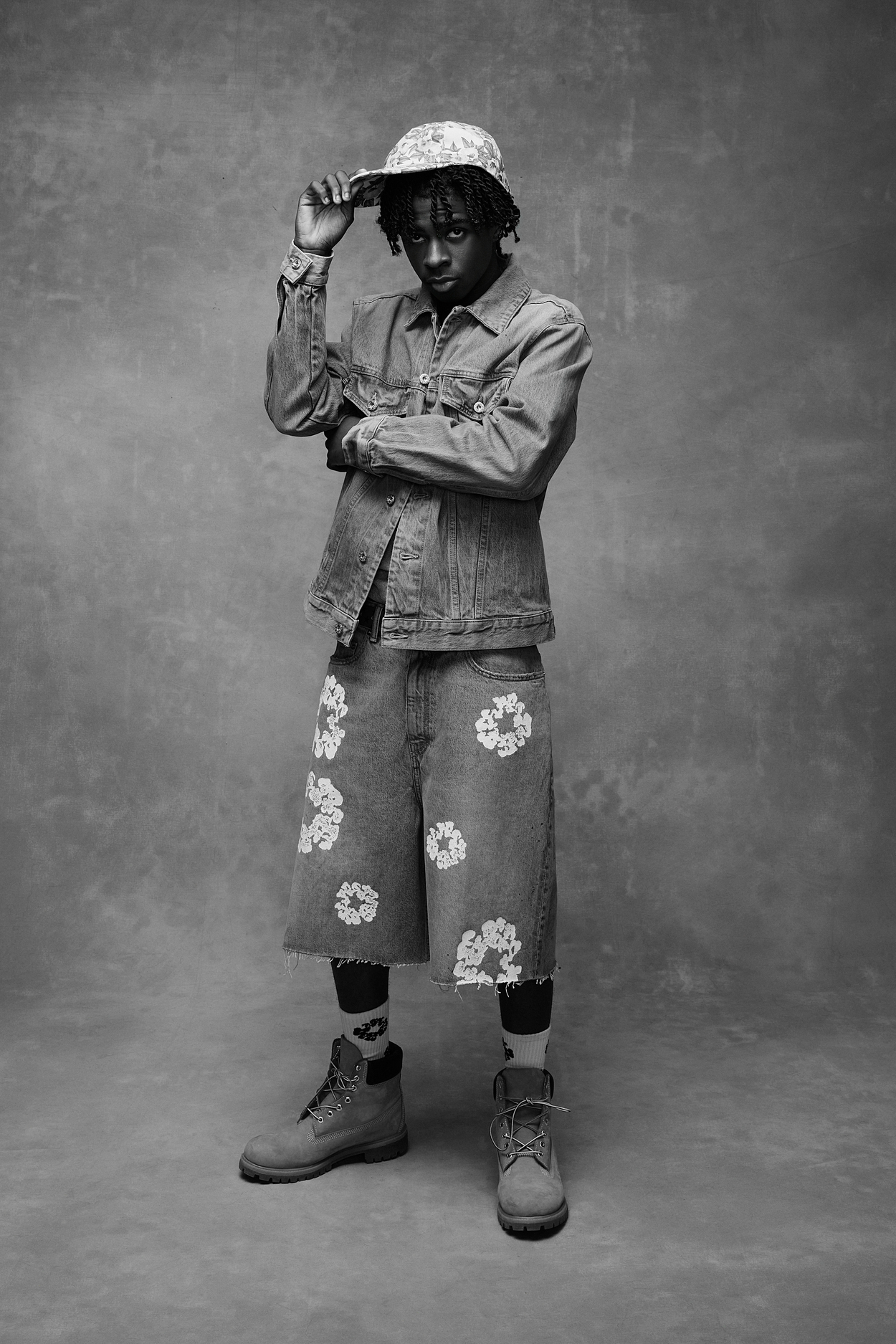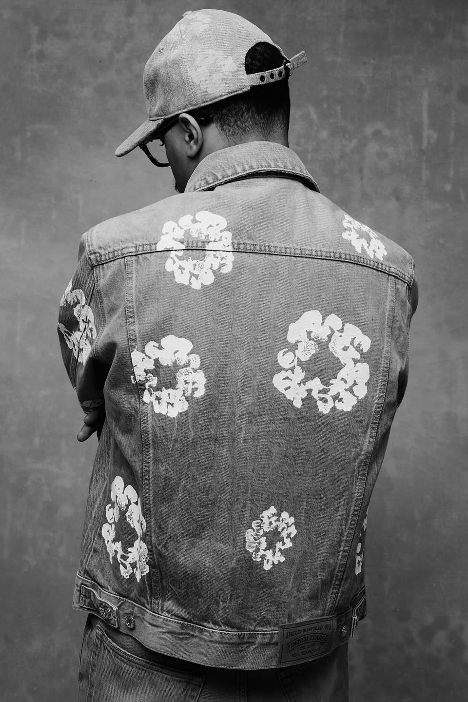 新系列不仅保留了经典款式,还新增了卡车司机夹克、宽松裤、渔夫帽、牛仔帽和托特包等多款单品。这些新品均饰有 Denim Tears 标志性的提花棉花环图案。卡车司机夹克、直筒裤和宽松裤均采用浅蓝色水洗工艺,营造出了褪色和做旧的复古效果。此外,回归款牛仔裤以 14 盎司重磅牛仔布制成,包括浅色水洗和做旧水洗两种款式。赤耳牛仔系列则采用了轻盈的 13 盎司日本赤耳牛仔布,并由传统梭织机织造而成。卡车司机夹克也由相同的面料和水洗工艺制成。