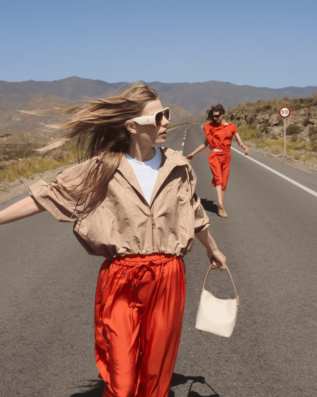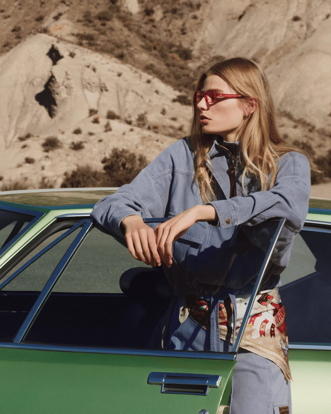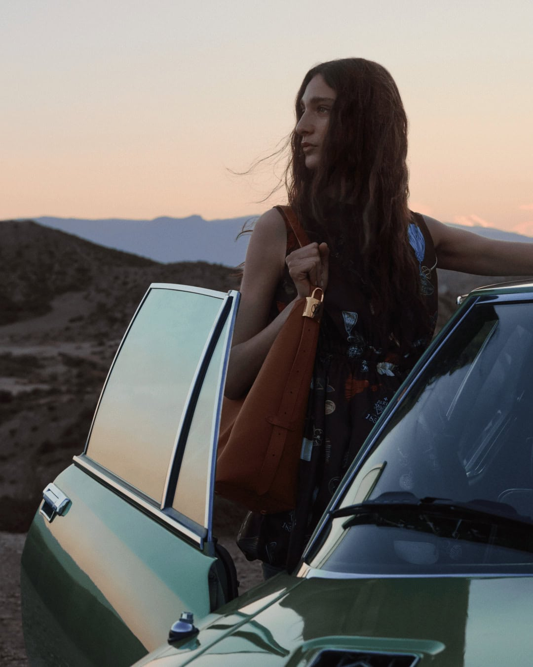 系列在实用与精致之间取得平衡:外套包括连帽飞行夹克、飞行外套、开衫及马甲,材质丰富,从颗粒皮、光面皮到穿孔与天鹅绒般柔软的皮革,兼顾功能与触感;羊绒与美利奴毛织物的针织单品带来温暖与柔软感;牛仔单品采用蓝灰色渐变水洗效果,并融入全新棕色 Monogram 图案。其他成衣如轻盈的半裙、宽松衬衫、系带连衣裙与棉质风衣、丝质及印花塔夫绸外套,以橘色、玫瑰、赭色、沙色与白色呈现轻快氛围,让衣物兼具随行与优雅,却从不显急促。