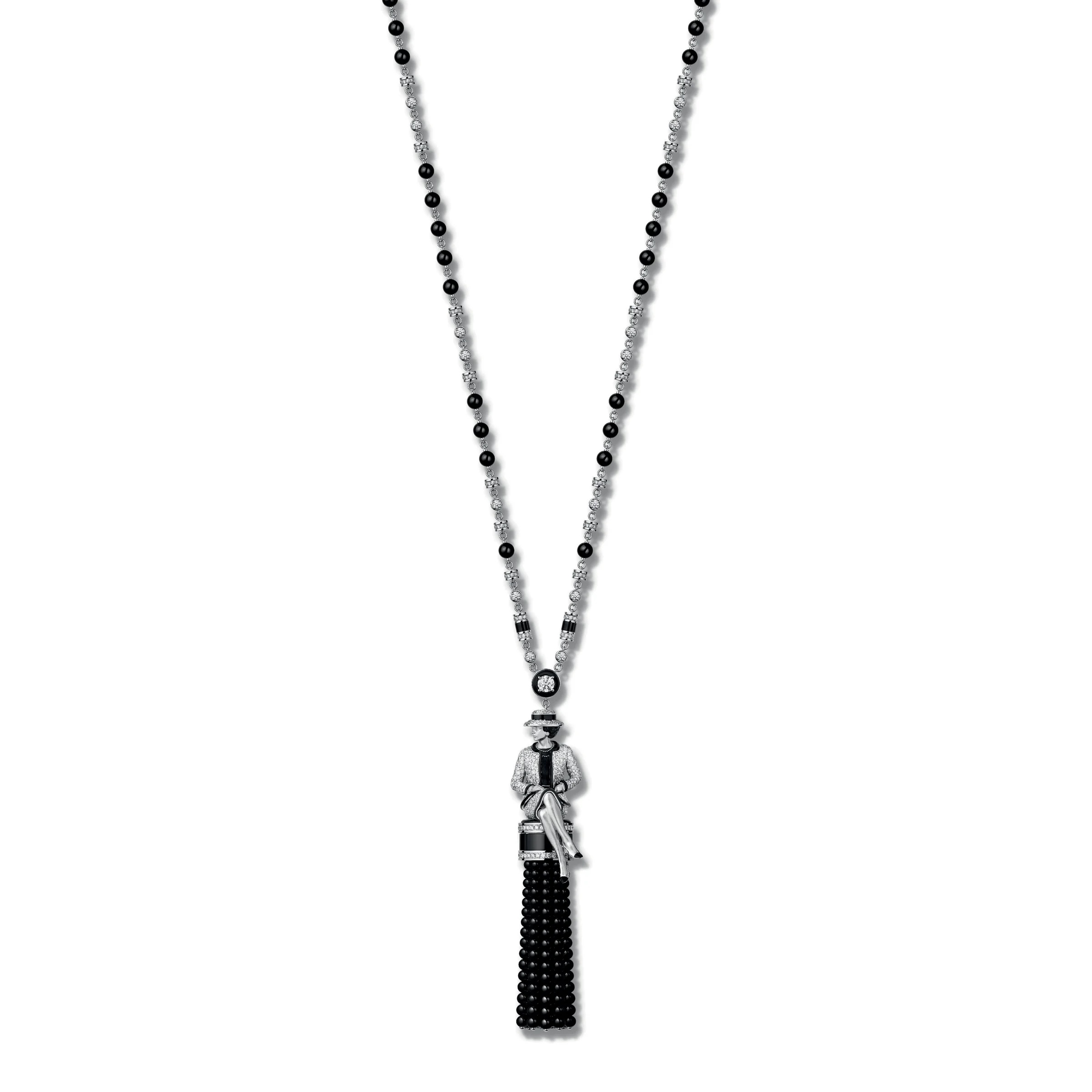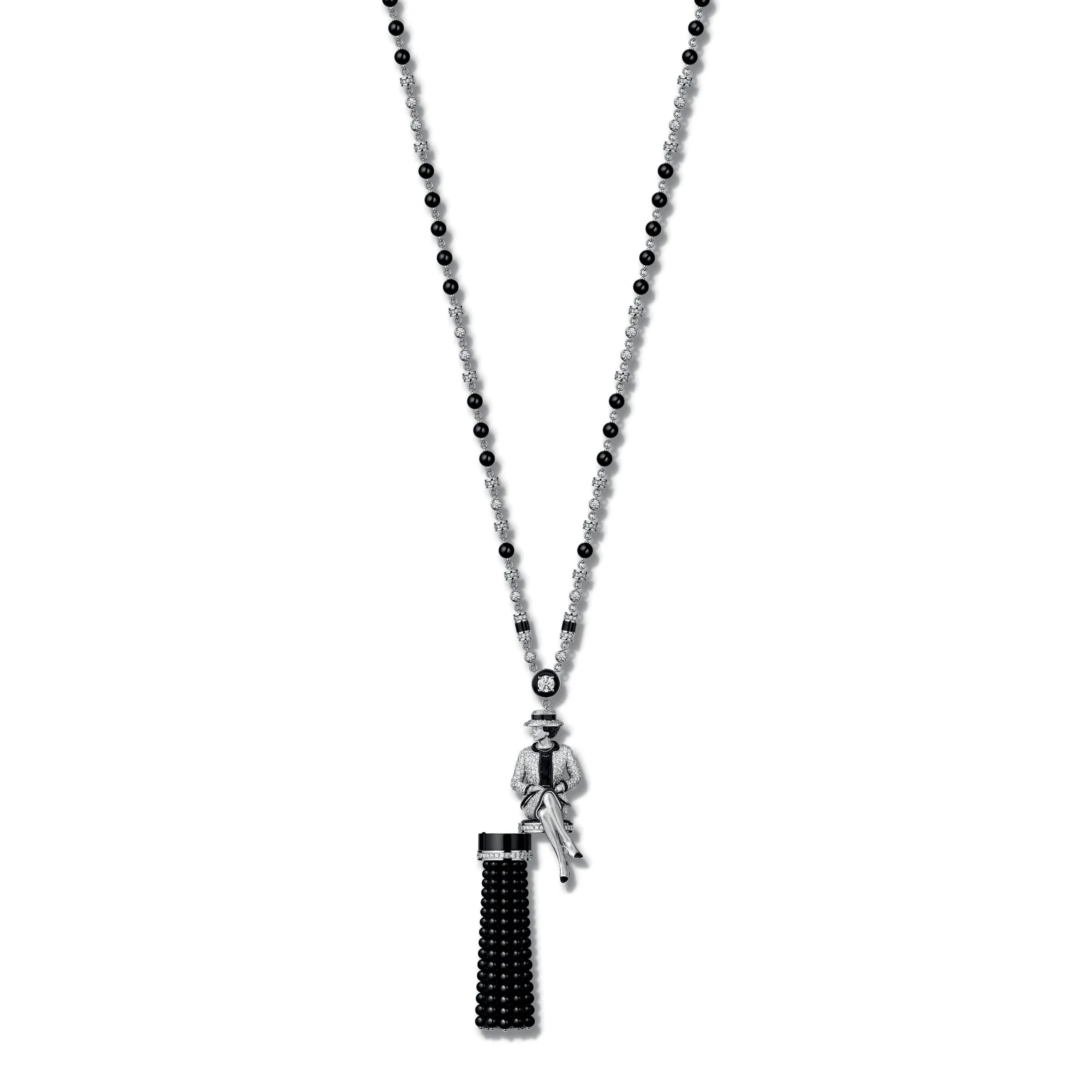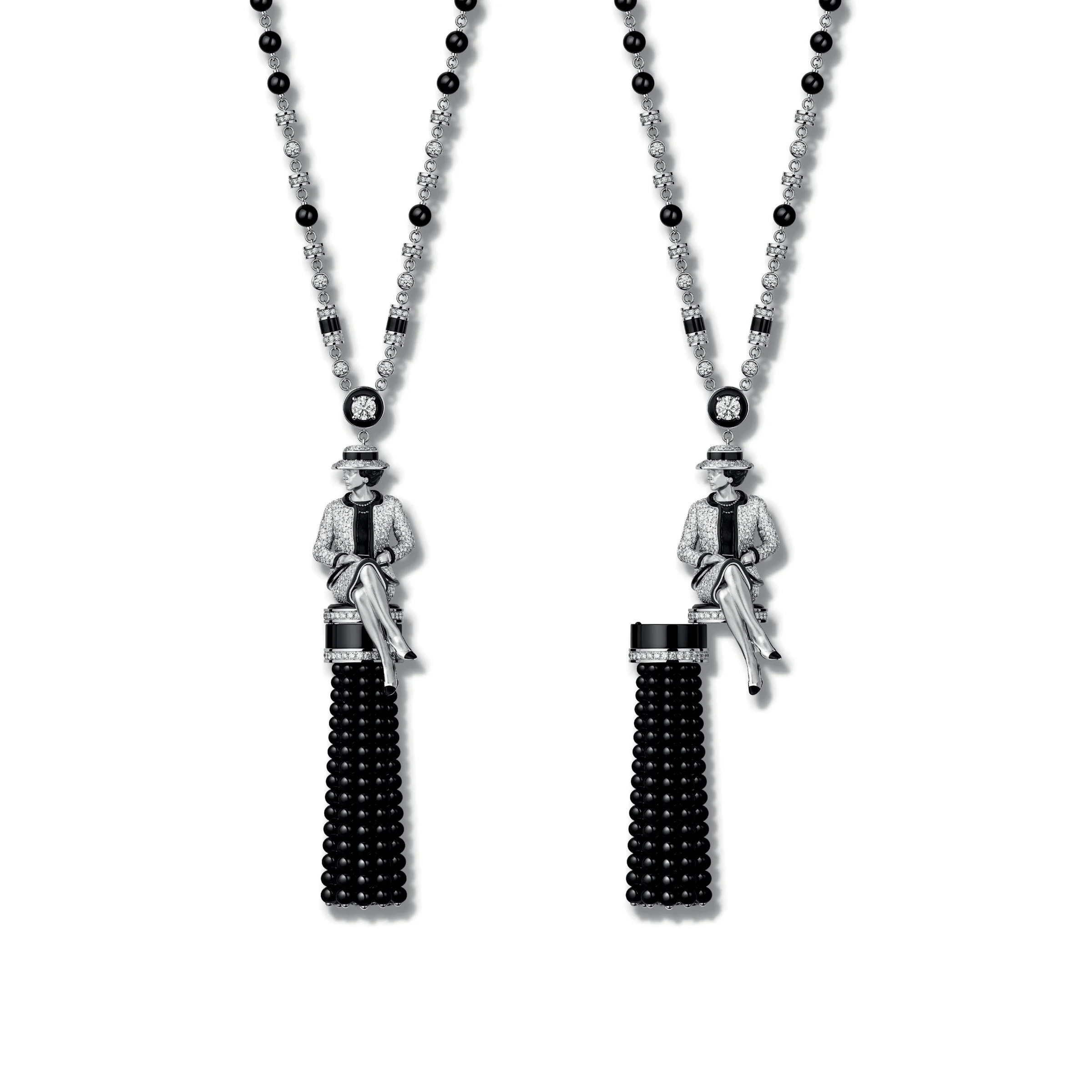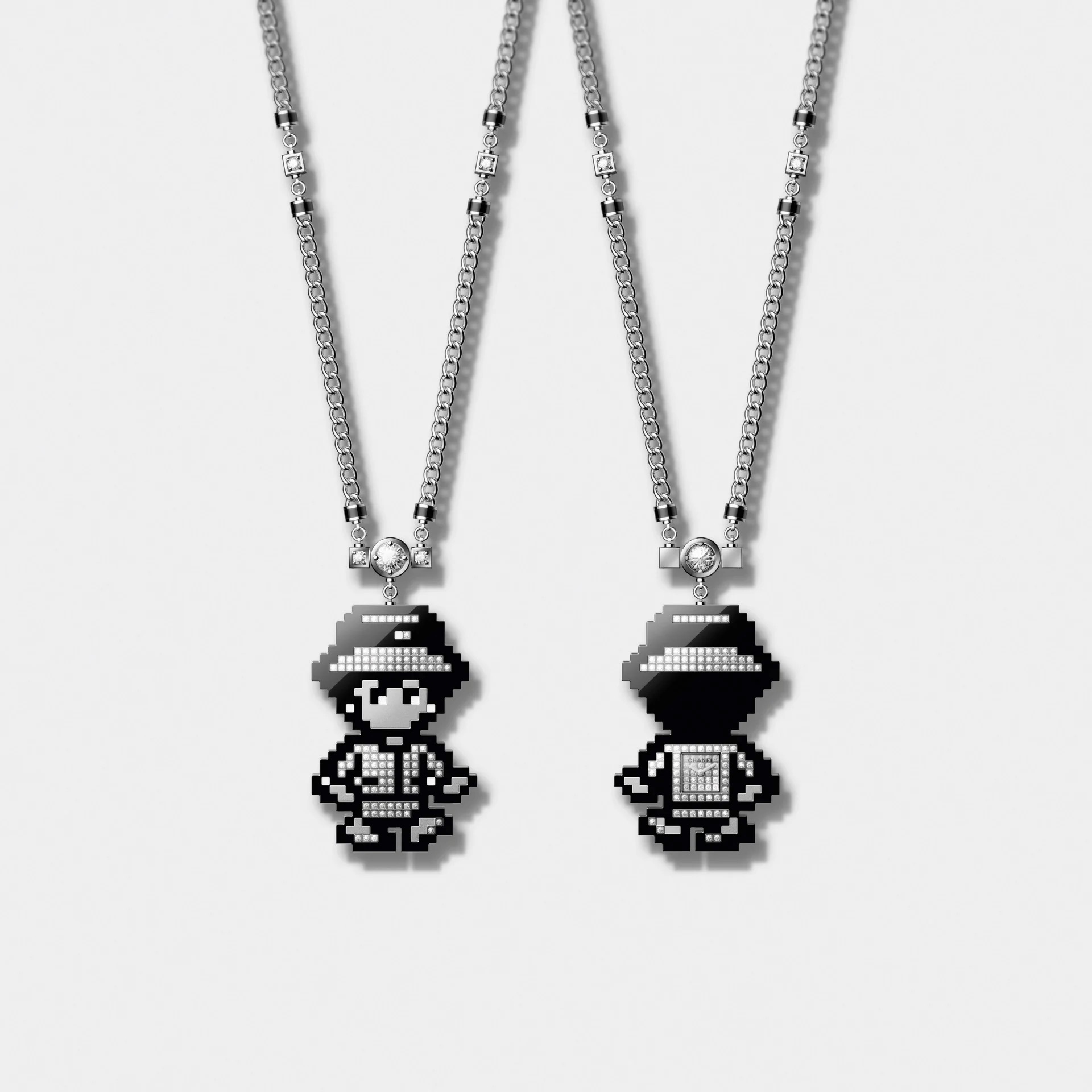 此外,项链式腕表——「Gabrielle 长项链」的表盘置于一个底座之上,底座上坐着 Gabrielle Chanel 的人偶;「COCO GAME 长项链」则采用像素艺术风格设计,Gabrielle Chanel 的形象化身为了电子游戏中的像素小人;「Première COCO GAME 戒指」则是一款饰有醒目八角形黑色线条的神秘戒指。每款均全球限量 5 枚。
