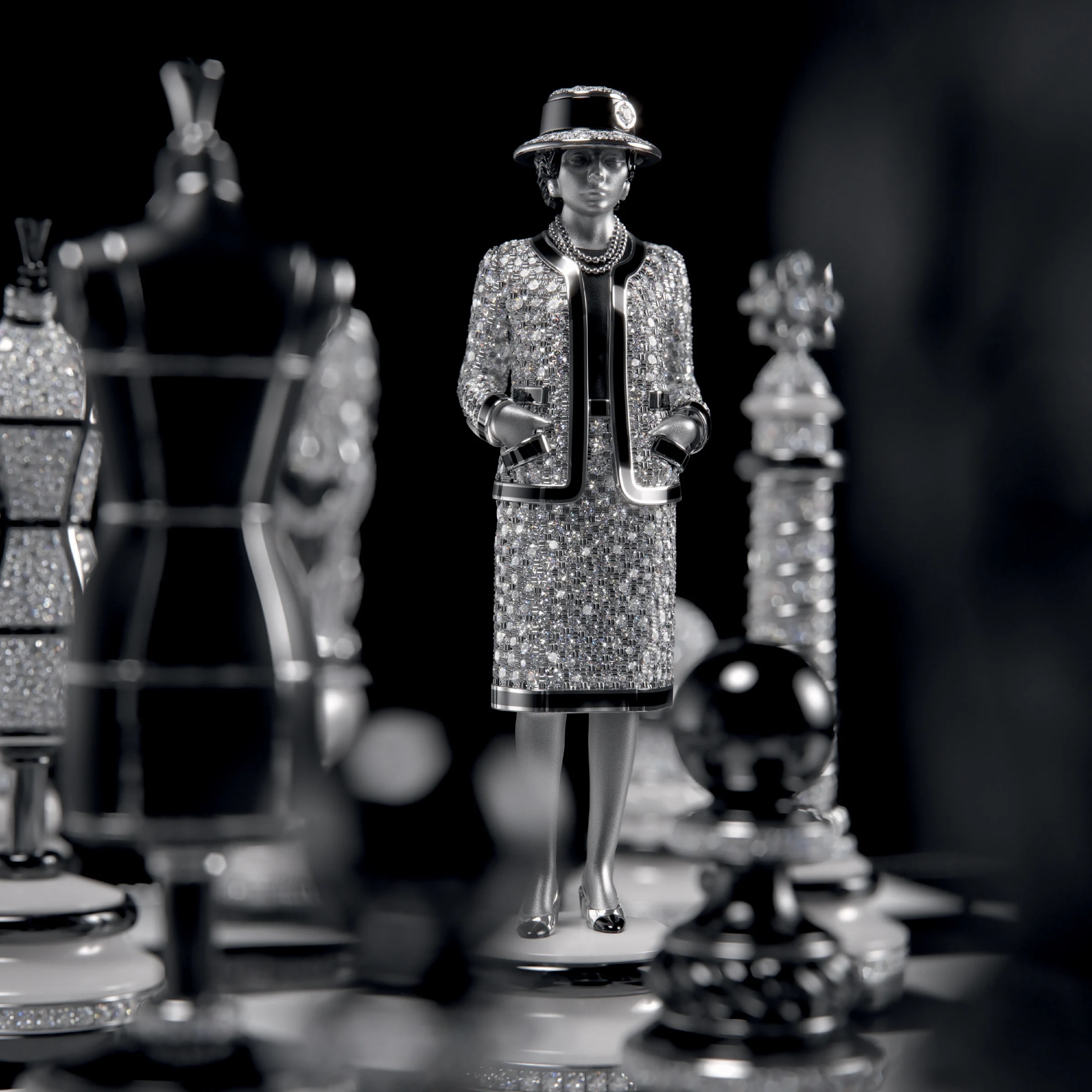 CHANEL 近日推出了其限量版腕表系列——「CHANEL COCO GAME」胶囊系列。该系列亮相于瑞士的「2026 日内瓦钟表与奇迹展」并已开启发售,阵容包括融合了国际象棋和腕表元素的「棋盘」、「Gabrielle 长项链」、「COCO GAME 长项链」和「Première COCO GAME 戒指」以及多款腕表。全新系列以创始人 Gabrielle Chanel 为中心,并探索了电子游戏的方方面面。其中,独一无二的「棋盘」以黑曜石为底座,表面由黑白陶瓷制成,并镶嵌有钻石。该棋盘包含 32 枚棋子,象征着 CHANEL 的世界,Gabrielle Chanel 「化身」为皇后并身着饰有钻石的斜纹软呢套装,棋盘底座内还隐藏着一个 25 毫米的表盘。