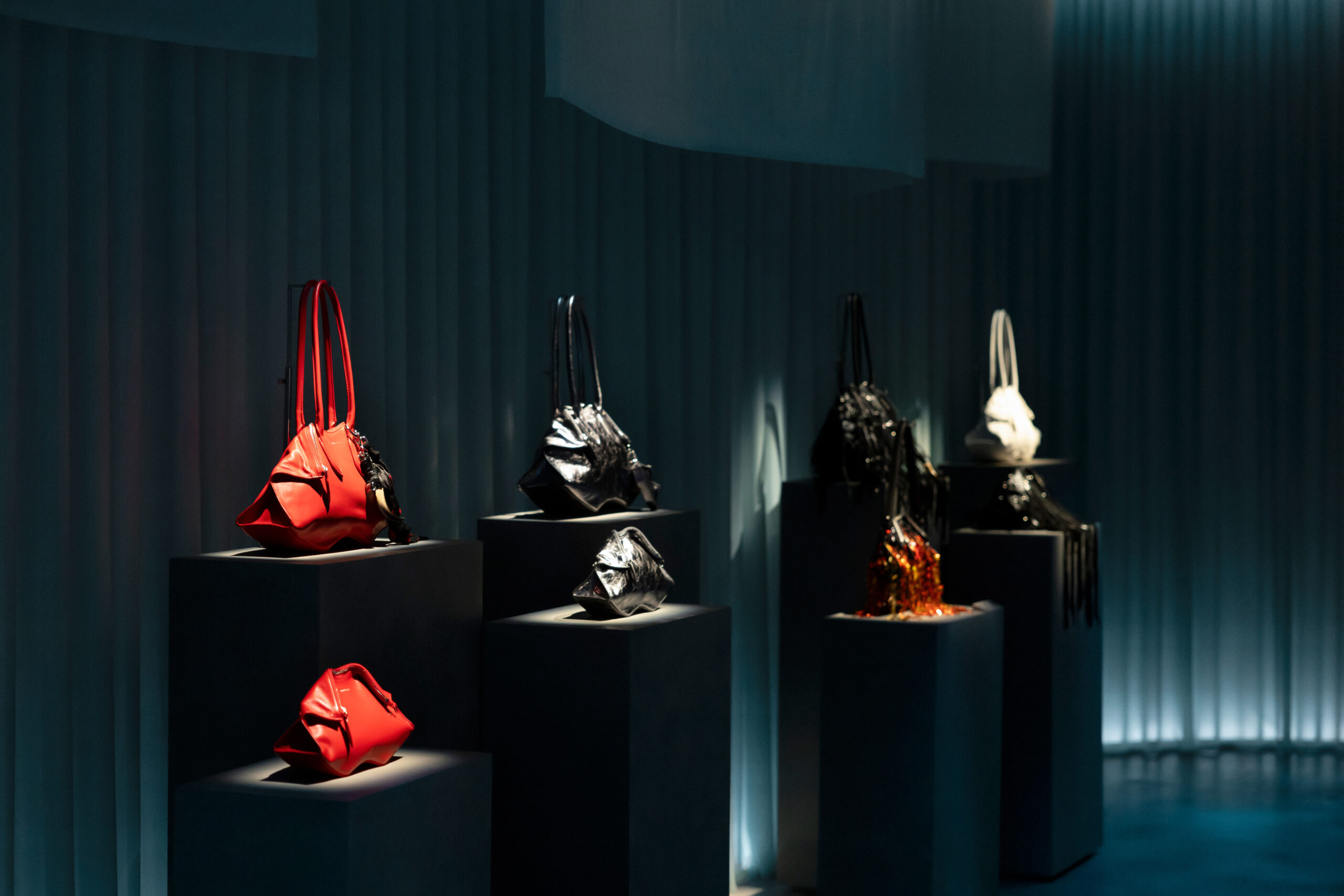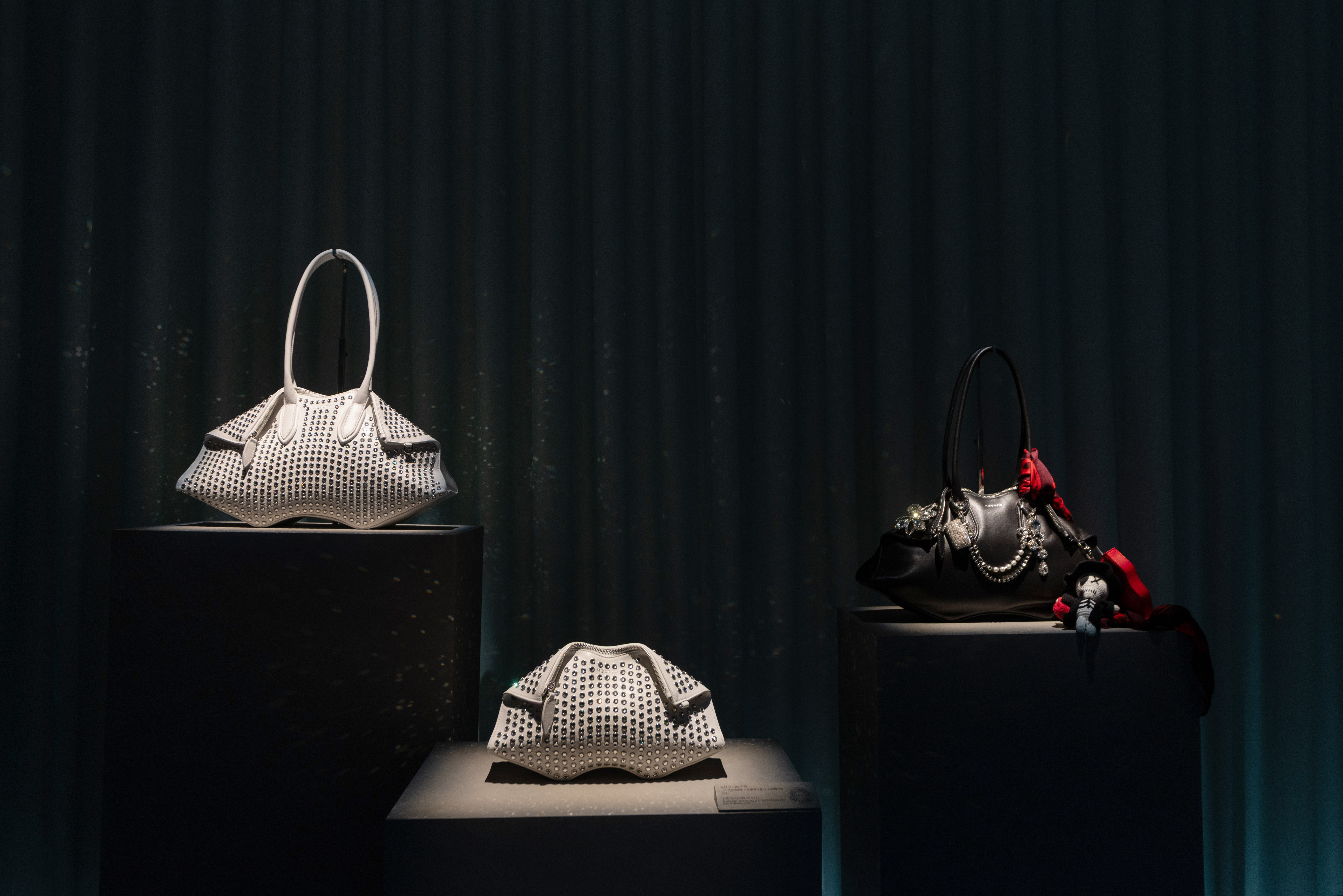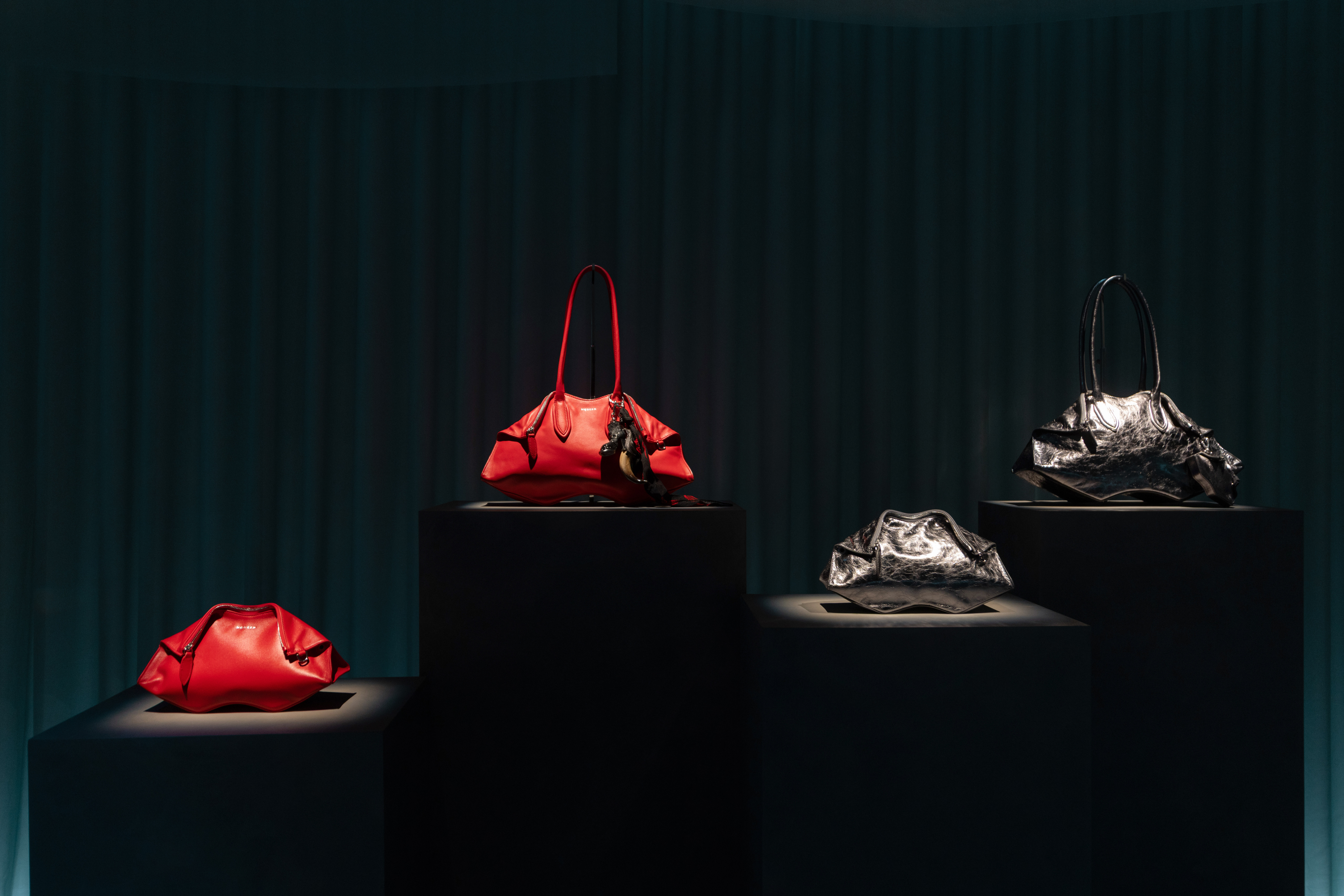 McQueen 于上海 Fotografiska 影像艺术中心呈现沉浸式展览「McQueen:表象之下」,深入探寻品牌独特艺术表达的起源与灵感。本次展览通过 Manta 手袋,以及于 3 月巴黎时装周首秀的 2026 秋冬系列,将品牌内核淋漓呈现,深入探索表象之下所蕴藏的内在二元性。麦昆的美学,根植于对立两极的张力:在流动与形塑、严谨与浪漫、自然的馈赠与危殆之间,汲取能量。2026 秋冬系列,正是一场对精心雕琢的光洁自我,与其下粗砺真实的深度探寻。空间展出的另一主要展品 Manta 手袋,复刻自品牌 2010 年春夏「柏拉图·亚特兰蒂斯」系列中的经典档案款「De Manta」,其立体折叠形态从蝠鲼中汲取灵感,将品牌对自然之美与力量的恒久迷恋,转化为精准的当代设计语言。