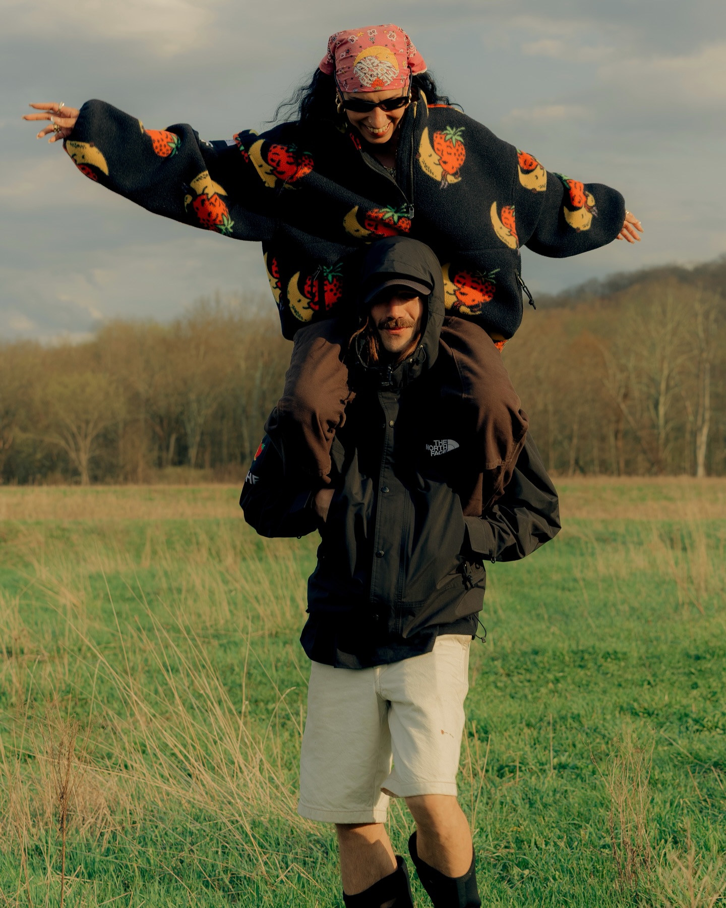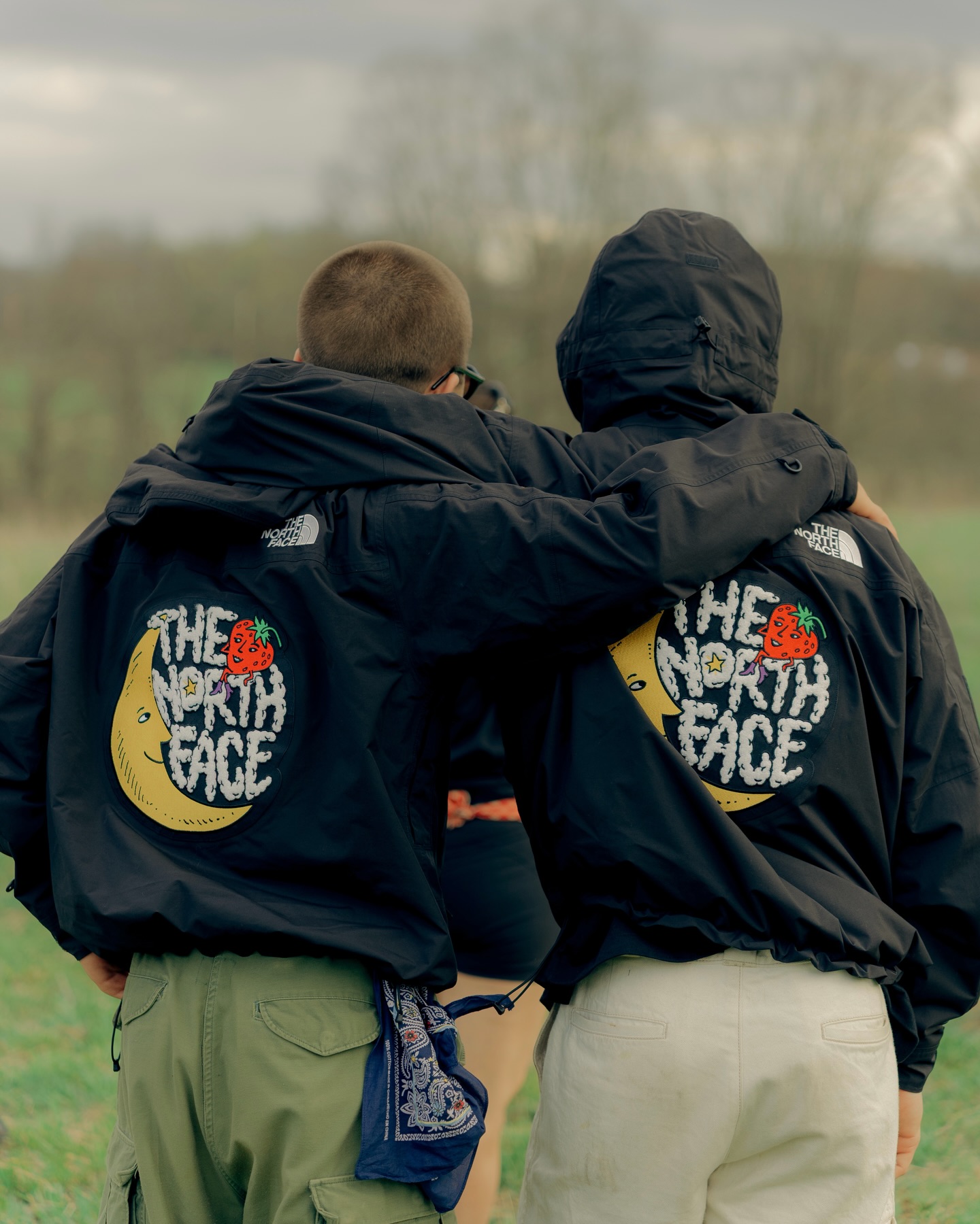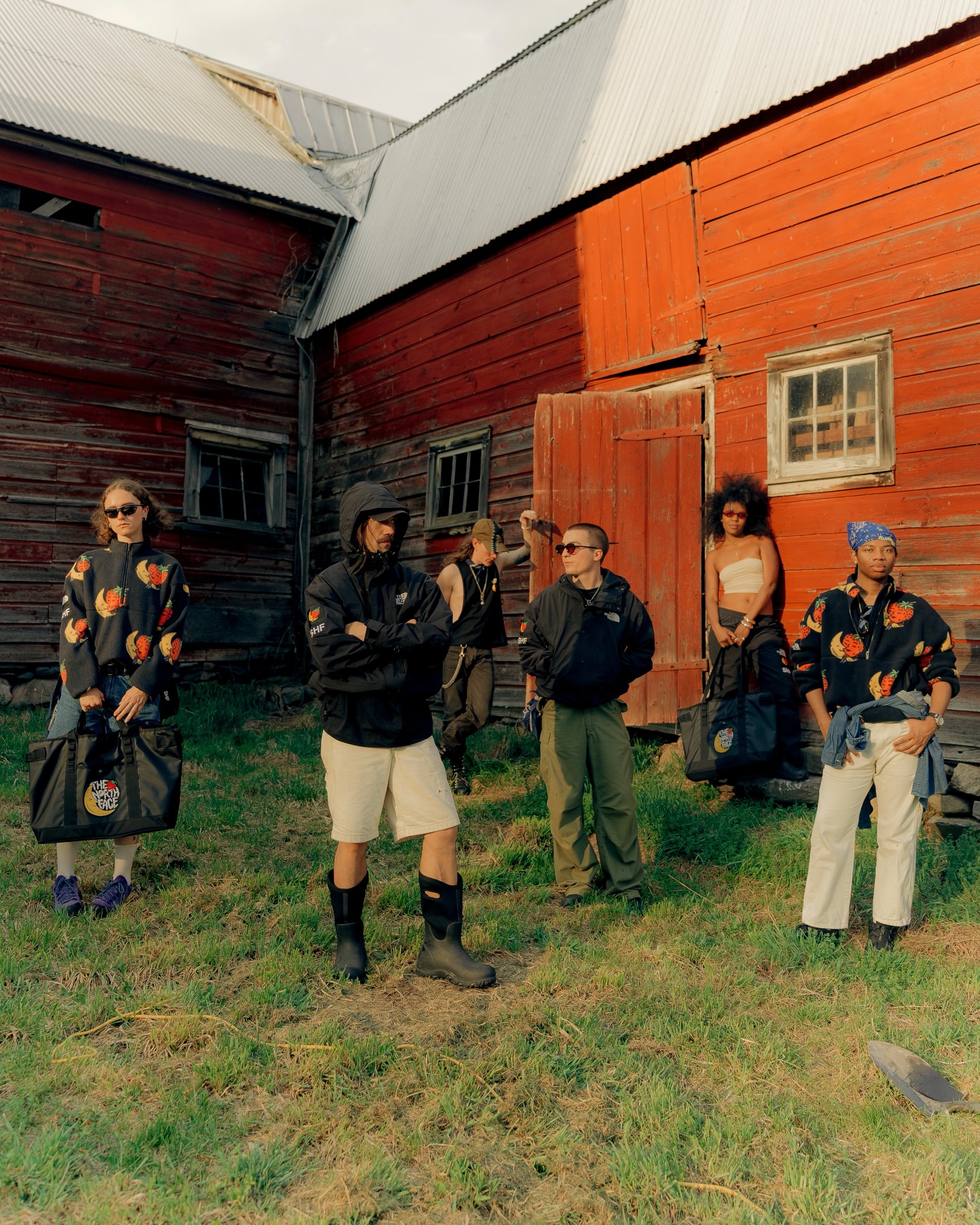 THE NORTH FACE 与 Sky High Farm Goods 正式合作推出 2026 春季六件套胶囊系列,包含了冲锋衣、半拉链抓绒卫衣、登山裤、农场帽、托特包以及印花 T 恤。该系列对 THE NORTH FACE 的经典廓形进行了针对性的「农业化」改良,针对多雨潮湿的农耕环境进行了性能更新,并点缀了 Sky High Farm Goods 标志性的「草莓月亮」图案,打造出一系列植根于土地工作与实用主义的单品。
