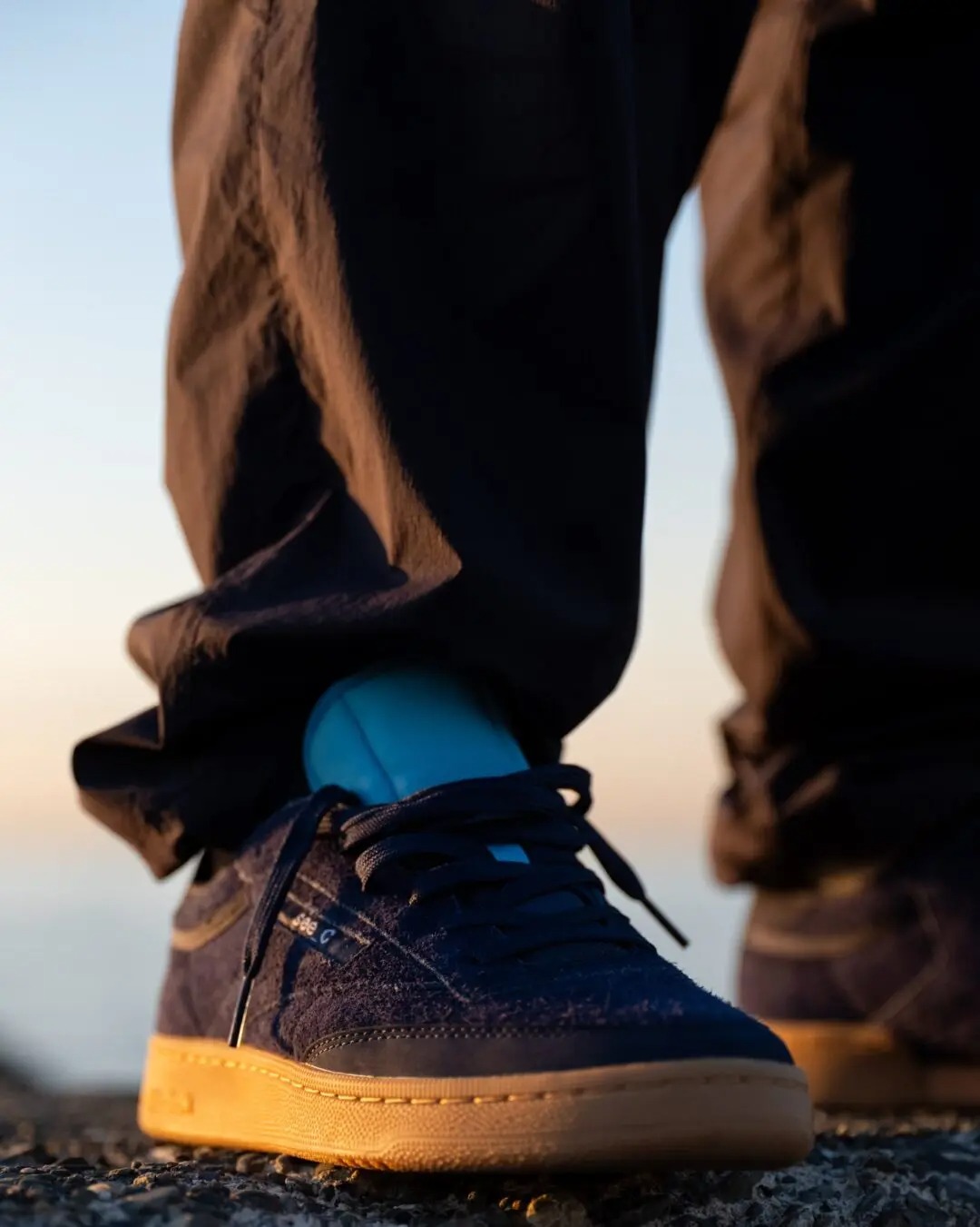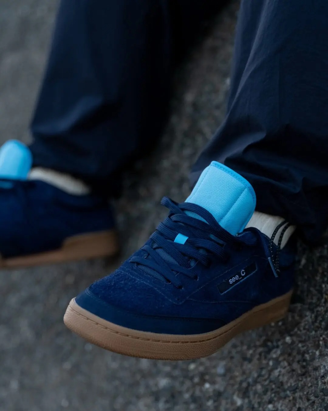 近日,eye_C 携手 SEE SEE、Reebok 与 URBAN RESEARCH 推出四方联名系列。核心鞋款以 Reebok 经典 CLUB C 为蓝本,采用深蓝色麂皮与牛巴革拼接鞋面,搭配渐变网眼鞋舌与复古生胶外底,附赠深蓝与白色两副鞋带,后跟压印 eye_C 与 SEE SEE 标识。同步释出服饰系列,包含渐变内衬运动套装、条纹长袖 T 恤及纯色 T 恤。据悉该合作系列将于 4 月 29 日在 URBAN RESEARCH 京都店先行发售,5 月 1 日起登陆 eye_C 及 Study Showroom 线上商店。