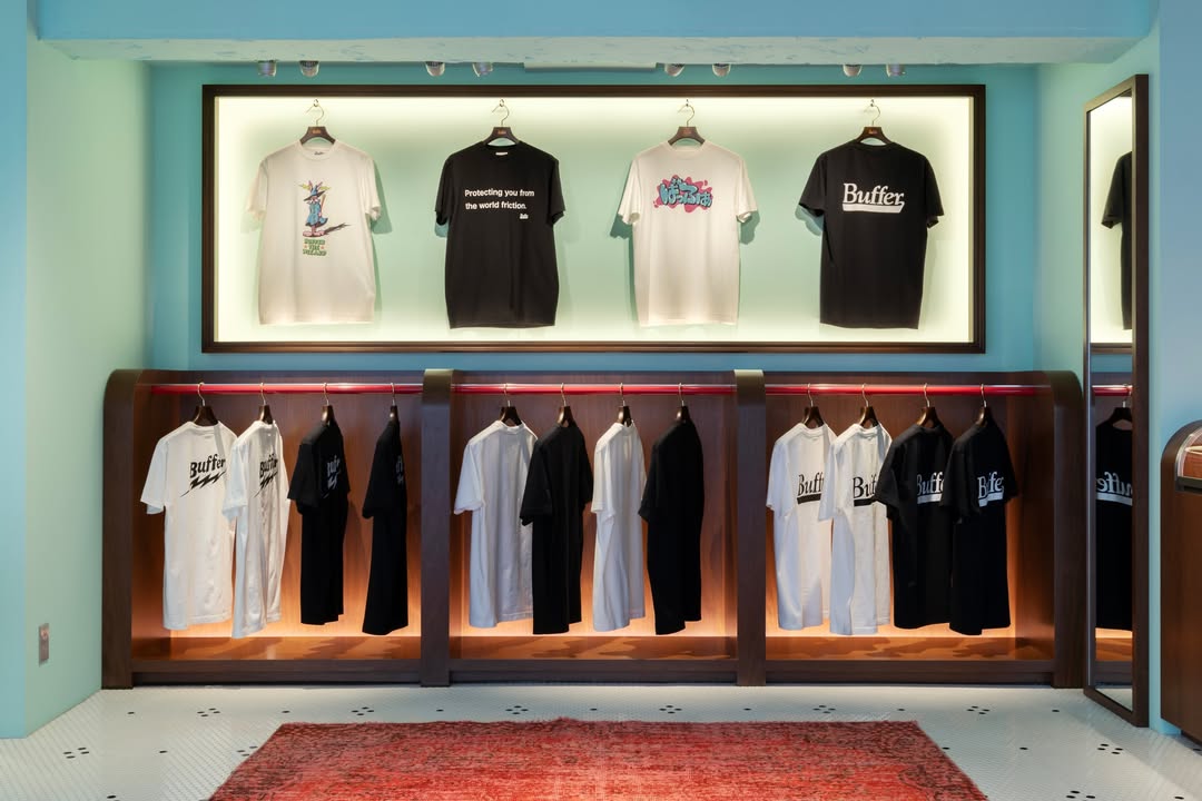由西山彻操刀的 HUMAN MADE Inc. 旗下新品牌 Buffer,其首家门店正式于东京开业。该品牌视觉由艺术总监上山悠二等多位艺术家和插画师参与创作,西山彻带领的创意团队打造了品牌代表性角色粉色兔子 Buffy(巴菲),引领消费者进入 Buffer 的世界,感受跨世代文化共鸣与意想不到的创意探索。首发系列包含注重质感的图案 T 恤及周边商品,包括袜子、徽章、贴纸、别针和空气清新剂等,保留 90 年代美式纪念品的氛围,有机会前往的朋友不妨亲自到店感受一番。