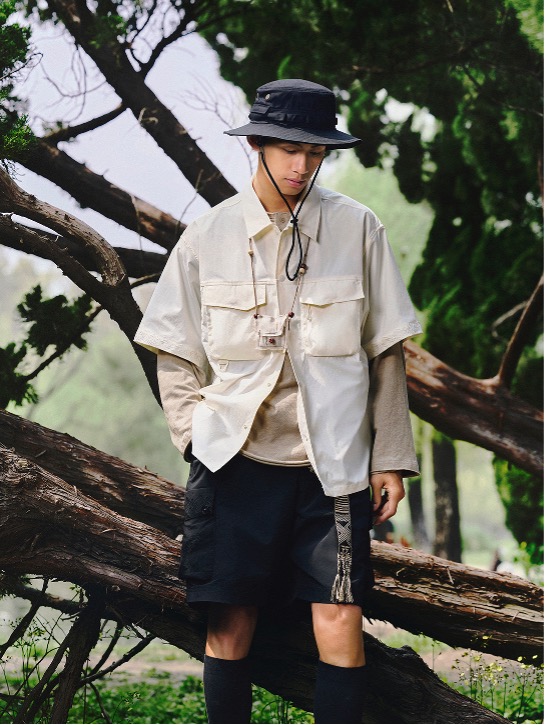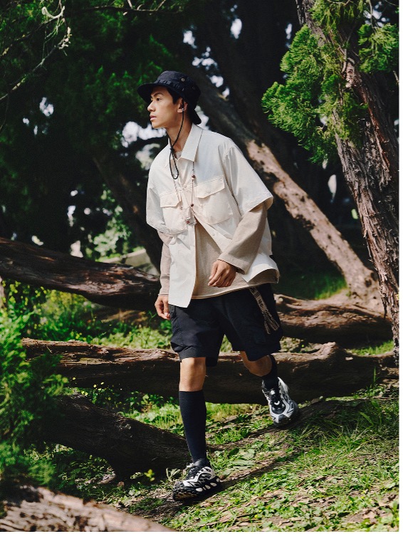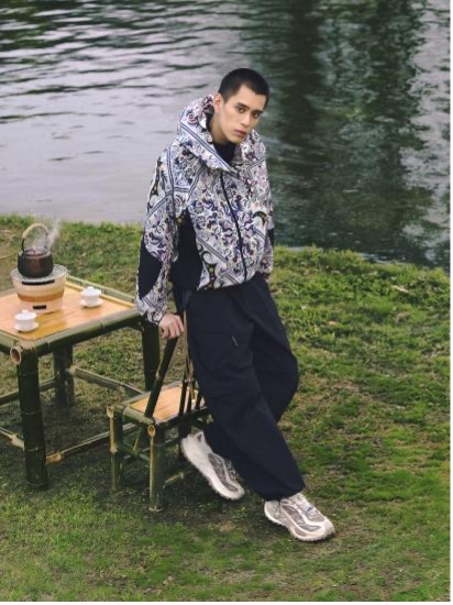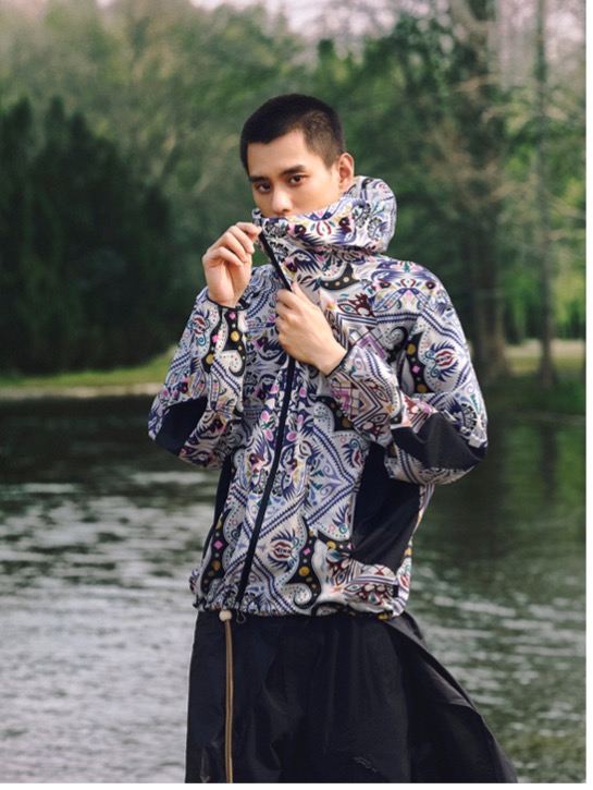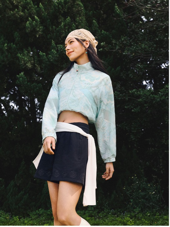 与游侠 2.0 鞋款同期发布的潮流户外服饰系列,呈现出中国李宁对民族工艺当代表达的另一种路径。灵感源自苗族「百鸟衣」——这件被称为「穿在身上的史诗」,集平绣、堆绣、马尾绣等多元技法于一体,通身鸟形纹样与层叠羽状流苏,承载着「敬畏自然、万物有灵」的古老信仰。本季服饰设计提取蝴蝶纹样与百鸟羽纹,通过山系色块重组与图案转译,将传统文化元素融入现代户外语境,在呈现非遗工艺细节的同时,呼应当下轻户外审美趋势。在功能与造型层面,系列产品围绕都市生活与近郊旅行的多元场景展开:外套具备 UPF50+ 防晒功能,满足城市通勤与周末出游的防护需求;裤装与短袖衬衫均采用 Cordura 耐磨面料,有效提升防刮蹭表现;可拆卸裤腿设计则出于造型与实用性的考量,实现一裤多穿的灵活搭配,让造型在都市日常与轻户外之间自由切换。