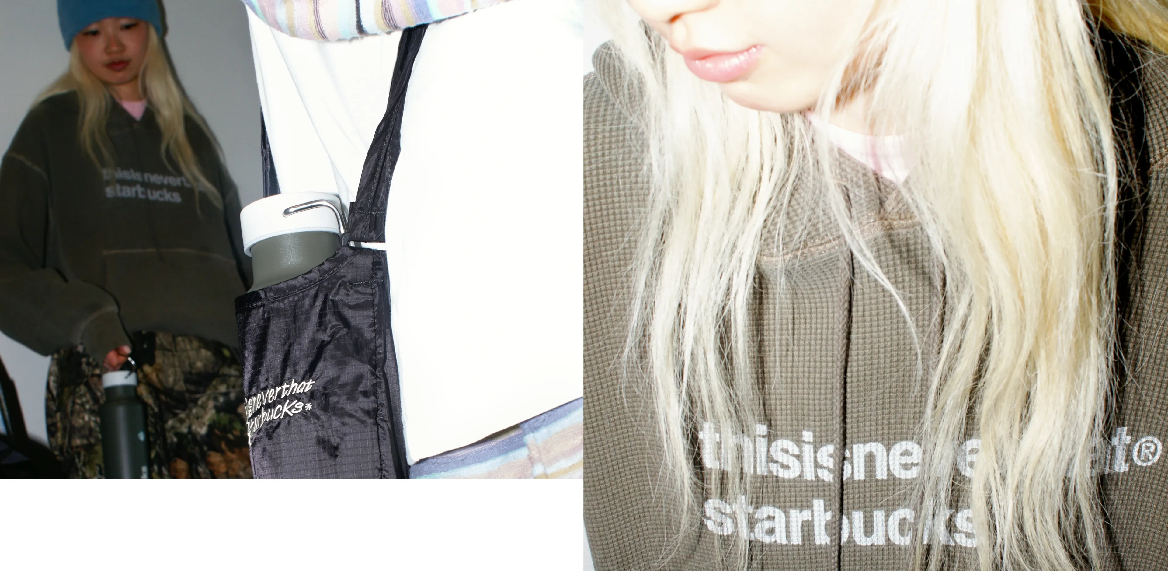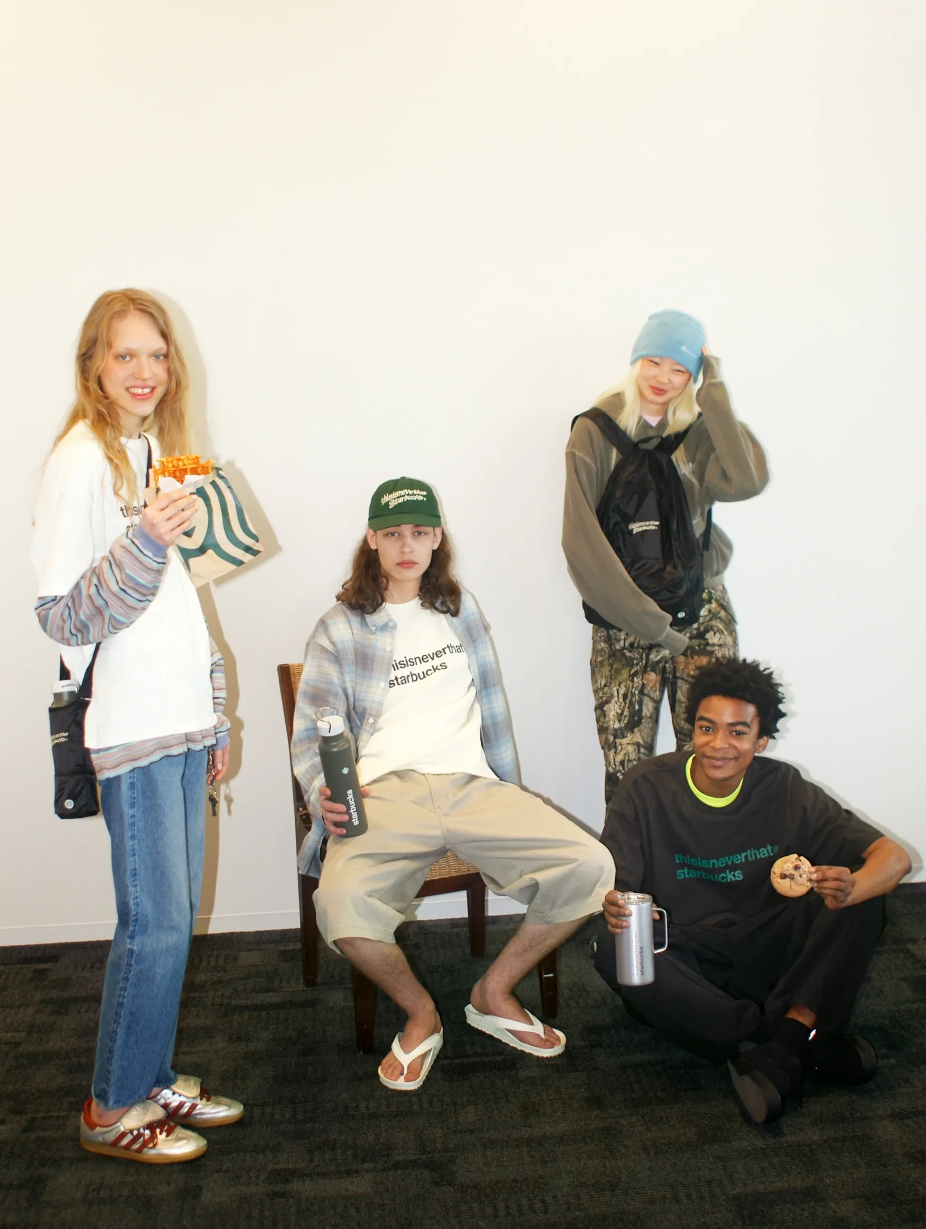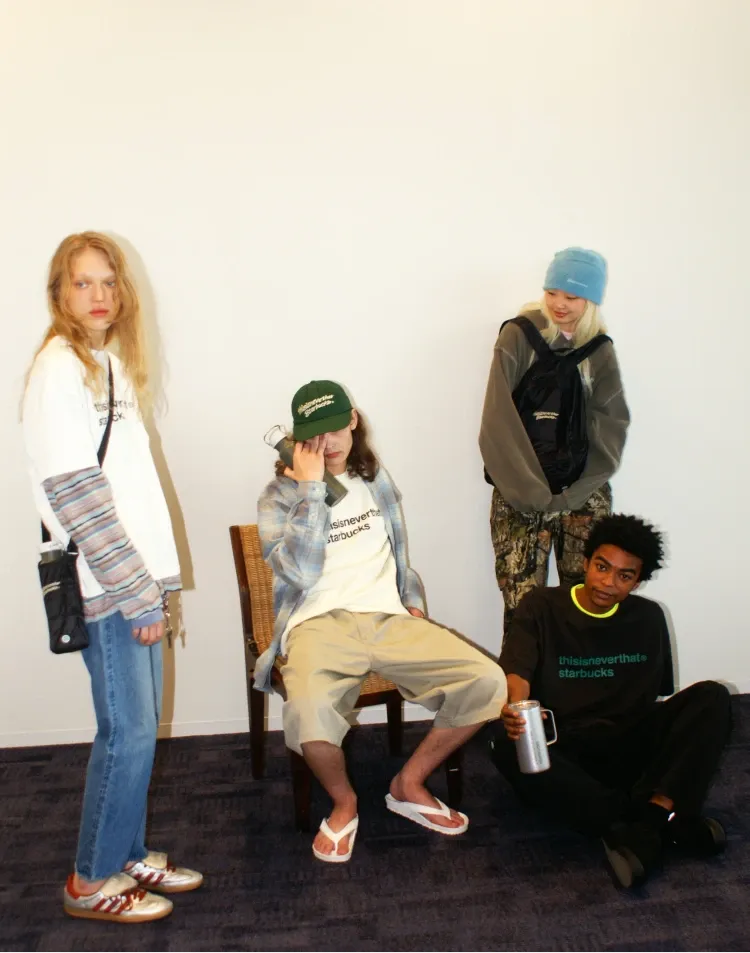 Starbucks 首度携手 thisisneverthat® 推出联名系列「neverthatcoffee」。系列以华夫格针织与棉质面料为主,经成衣水洗与颜料染色呈现做旧质感,并饰有复古风 Starbucks 标识。单品涵盖 T 恤、连帽衫、不锈钢马克杯、水瓶及可折叠背包等,融合街头美学与咖啡文化,传递「未完成的自由」与社群共享的核心理念。据悉该合作系列将于 4 月 28 日上午 6 时起在星巴克官网专属页面发售,感兴趣的朋友不容错过。