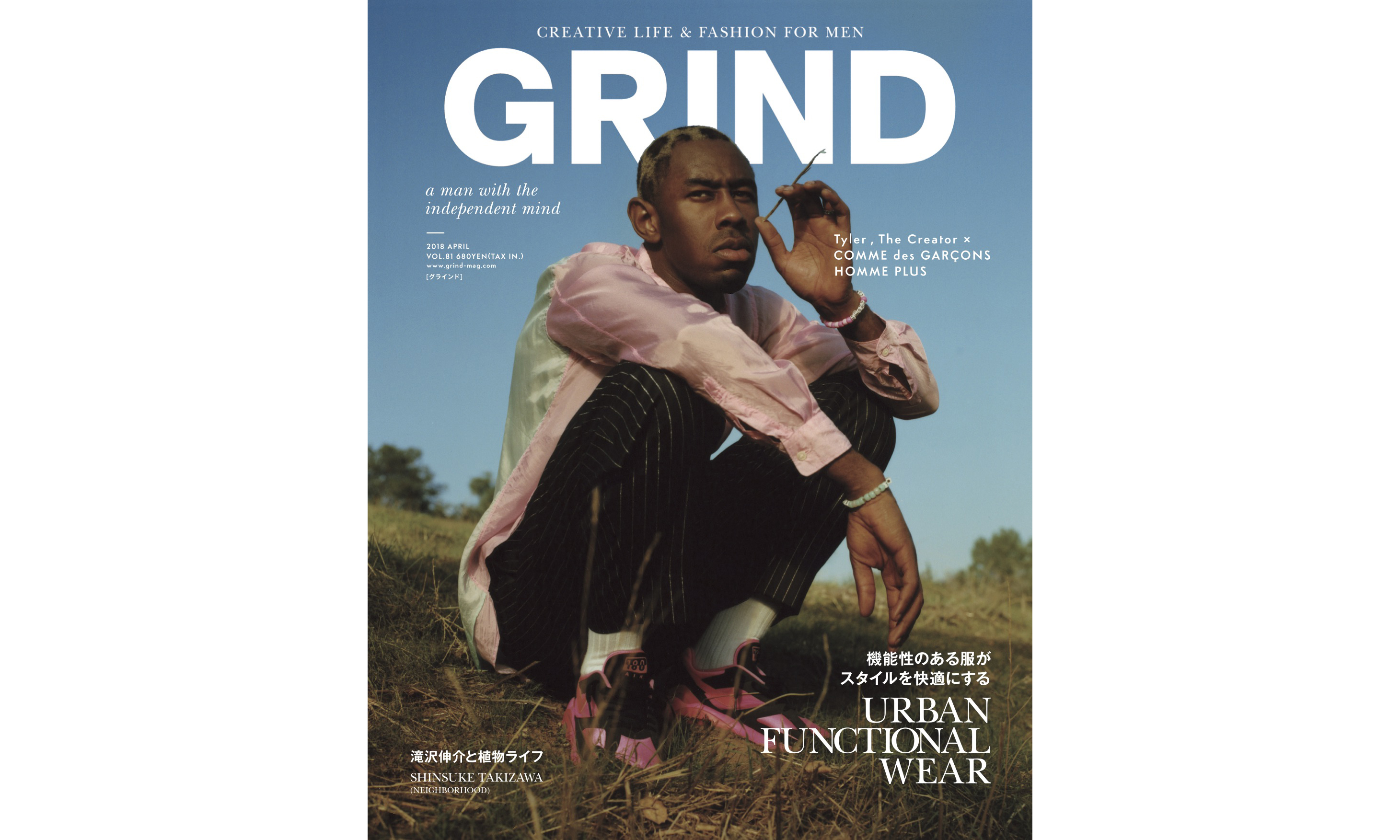 日本时尚杂志《GRIND》日前在其网站公布即将于 3 月 9 日发布最新一期,人气高涨的 Tyler, the Creator 作为本次四月刊封面人物,演绎了 COMME des GARÇONS HOMME Plus 2018 春夏系列服饰,搭配 COMME des GARÇONS HOMME Plus x Nike Air Max 180 鞋款,以及 Tyler 的全新豹纹发型。本期杂志还将带来 NEIGHBORHOOD 主理人泷泽伸介关于 “植物” 话题的访谈,以及 “Techwear” 和 “Urban Functional Wear” 的专题内容。
