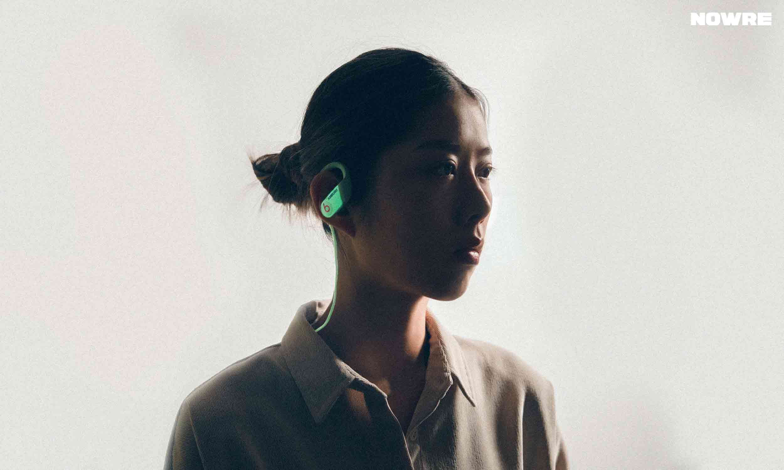 AMBUSH x Beats Powerbeats 耳机主体和连线部分均以夜光材质打造,在正常光照下呈现出淡绿色;夜晚则化身「音乐饰品」,荧光效果与音乐的律动完美契合。Yoon 表示:「夜晚的东京从不熄灭,Powerbeats 的夜光也像万千霓虹一样与城市融为一体。 」