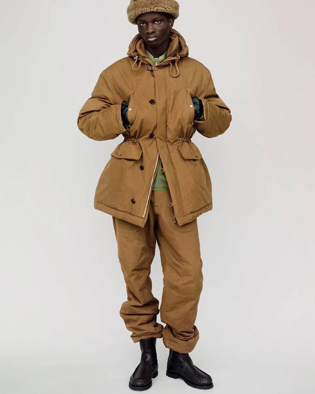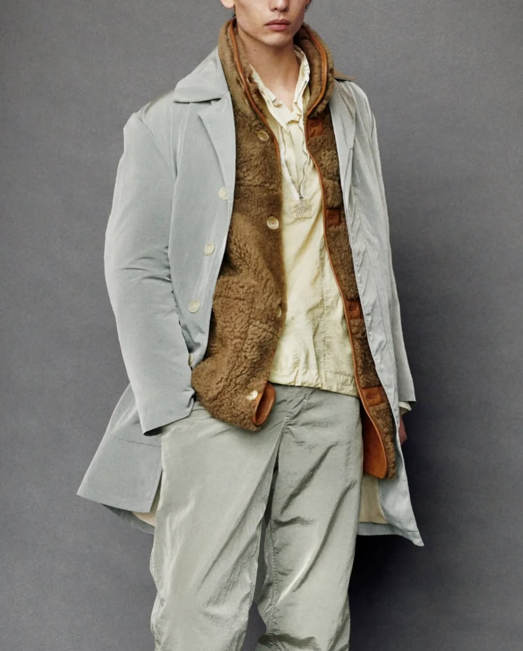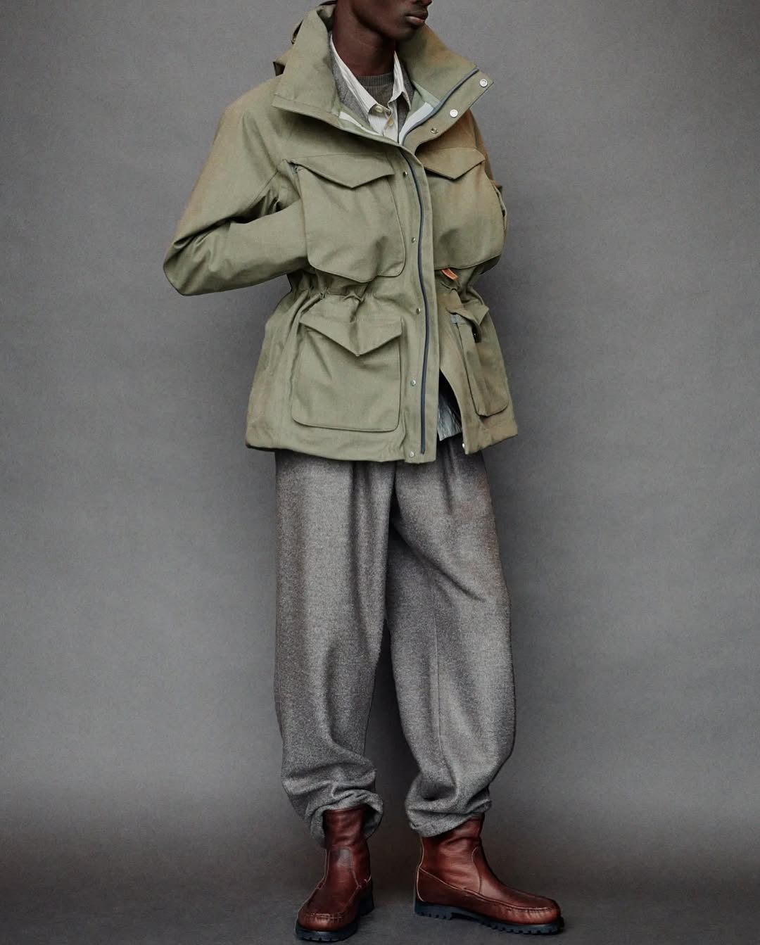 RANRA 于稍早前正式亮相了品牌的 2025 秋冬系列,长期以来对自然材质的坚持依旧清晰可见,大量粗剪羊毛以及皮毛一体制成的夹克。新一季的亮点则是品牌在有意凸显「冒险家」气质,从单品阵容的构成上便有迹可循,高密度棉布制成的 M-65、金属混纺肌理 Blazer 以及羊毛西裤、cargo pants 等单品,配合上修身、流畅的廓形以及一贯的自然色系,毫不费力地塑造出一种镇定自若的冒险家形象。此外,该系列中还出现了皮革手套、费尔岛毛衣以及重复进行搭配的高帮乐福鞋款,感兴趣的朋友不妨持续保持关注。