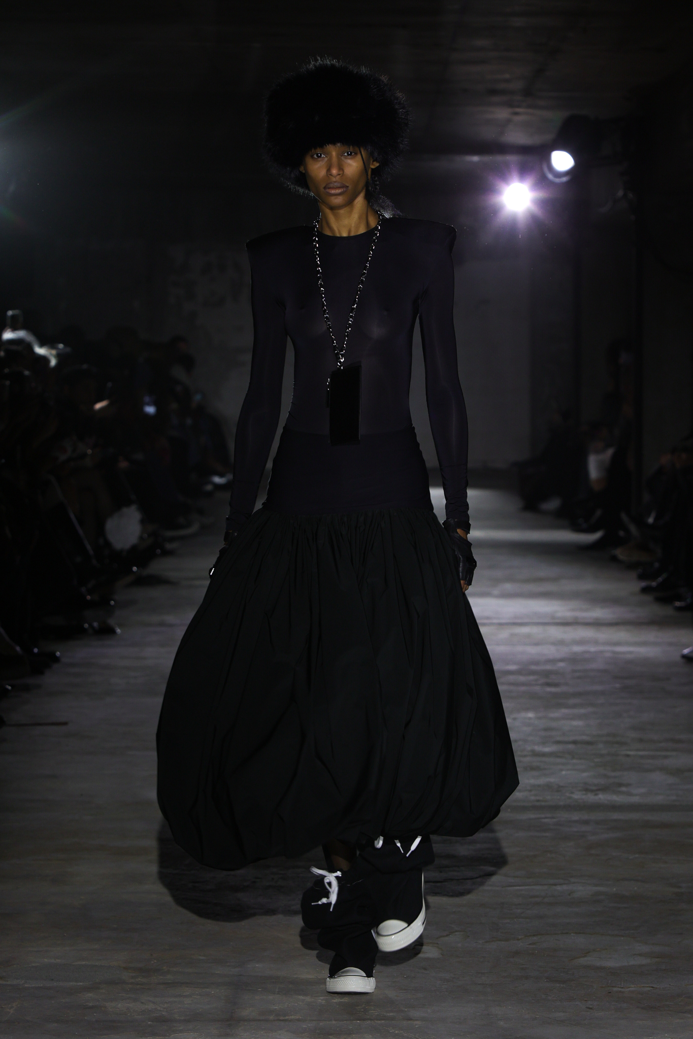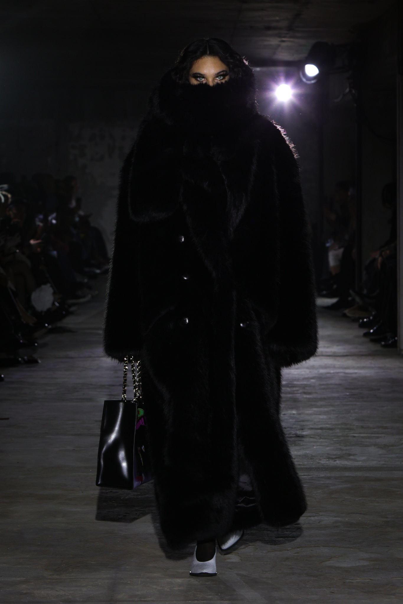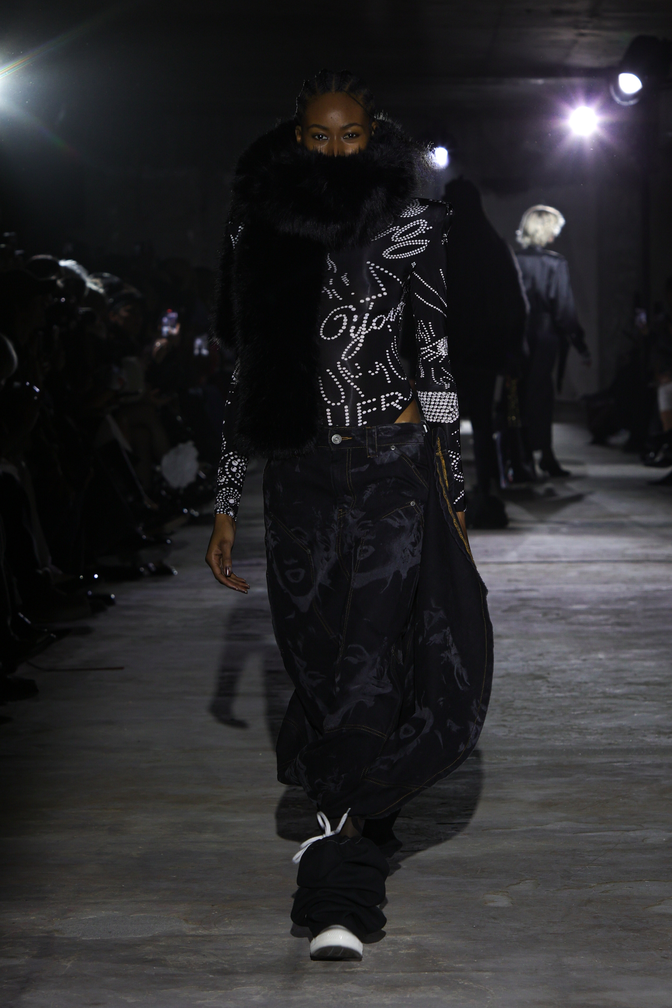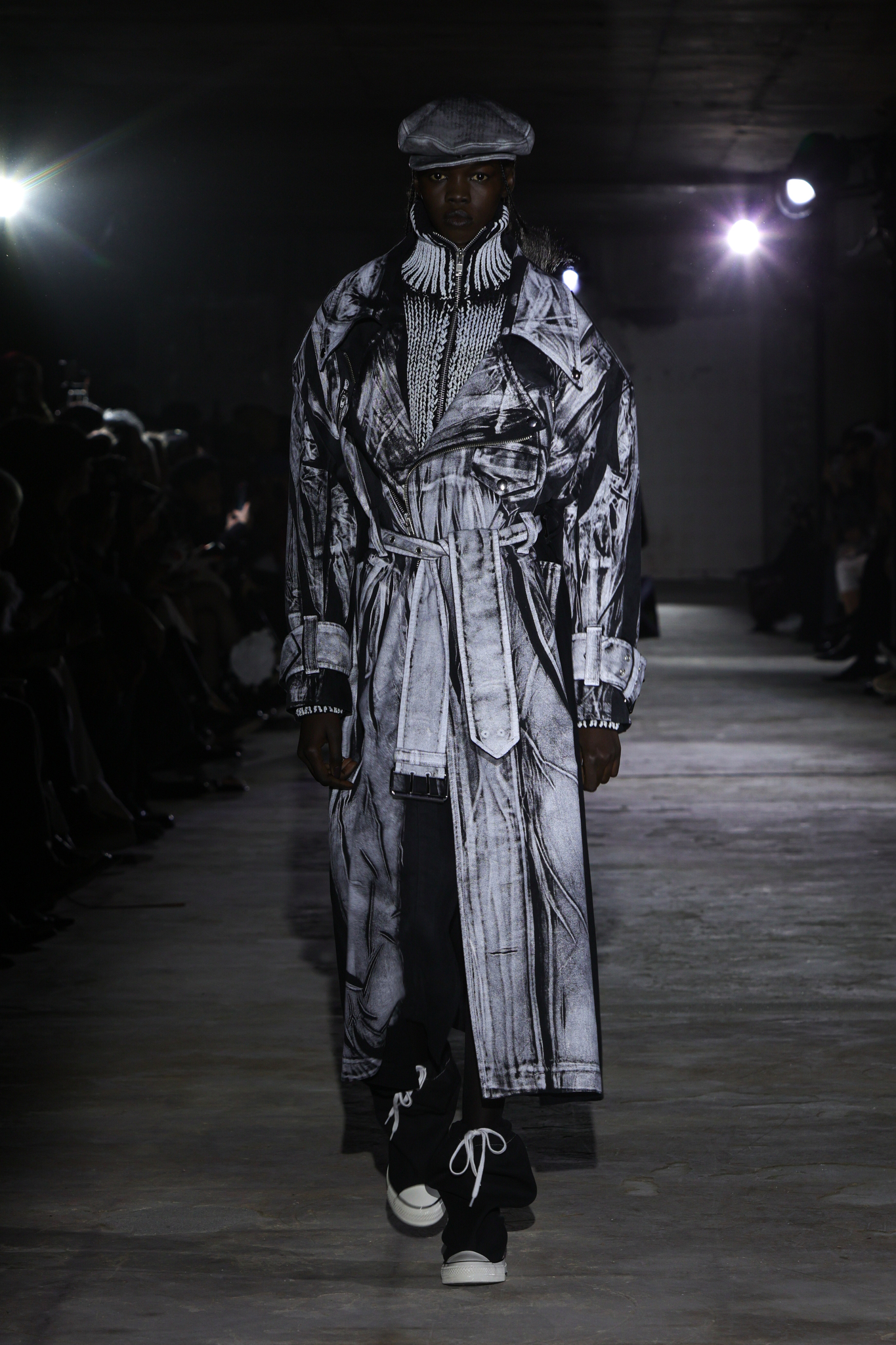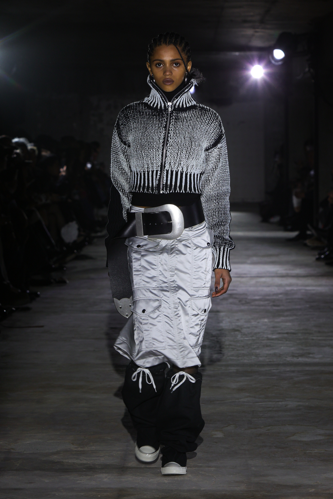 值得注意的是,本季 VAQUERA 还与 Converse 展开了合作,推出了一系列重新演绎的经典鞋款包括解构版 Chuck Taylor All Star 以夸张的加厚鞋底和不对称鞋面设计,打破运动鞋的传统印象;高帮帆布鞋加入金属链条、豹纹印花和超长鞋带。部分款式还采用涂漆效果,展现 VAQUERA 一贯的朋克精神,让 VAQUERA 在奢华与日常之间游刃有余的平衡能力,让品牌的叛逆风格更加可穿、可触及。
