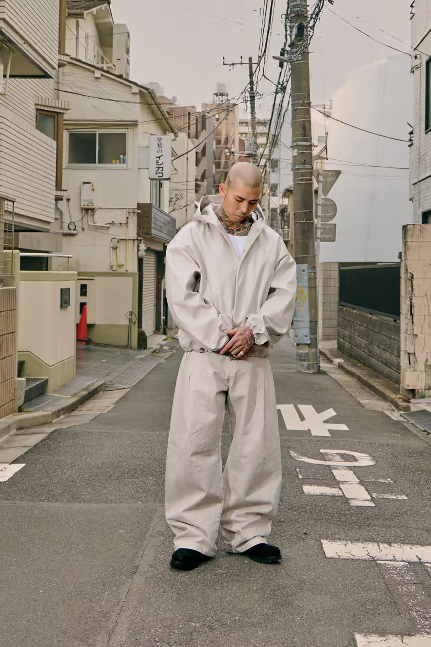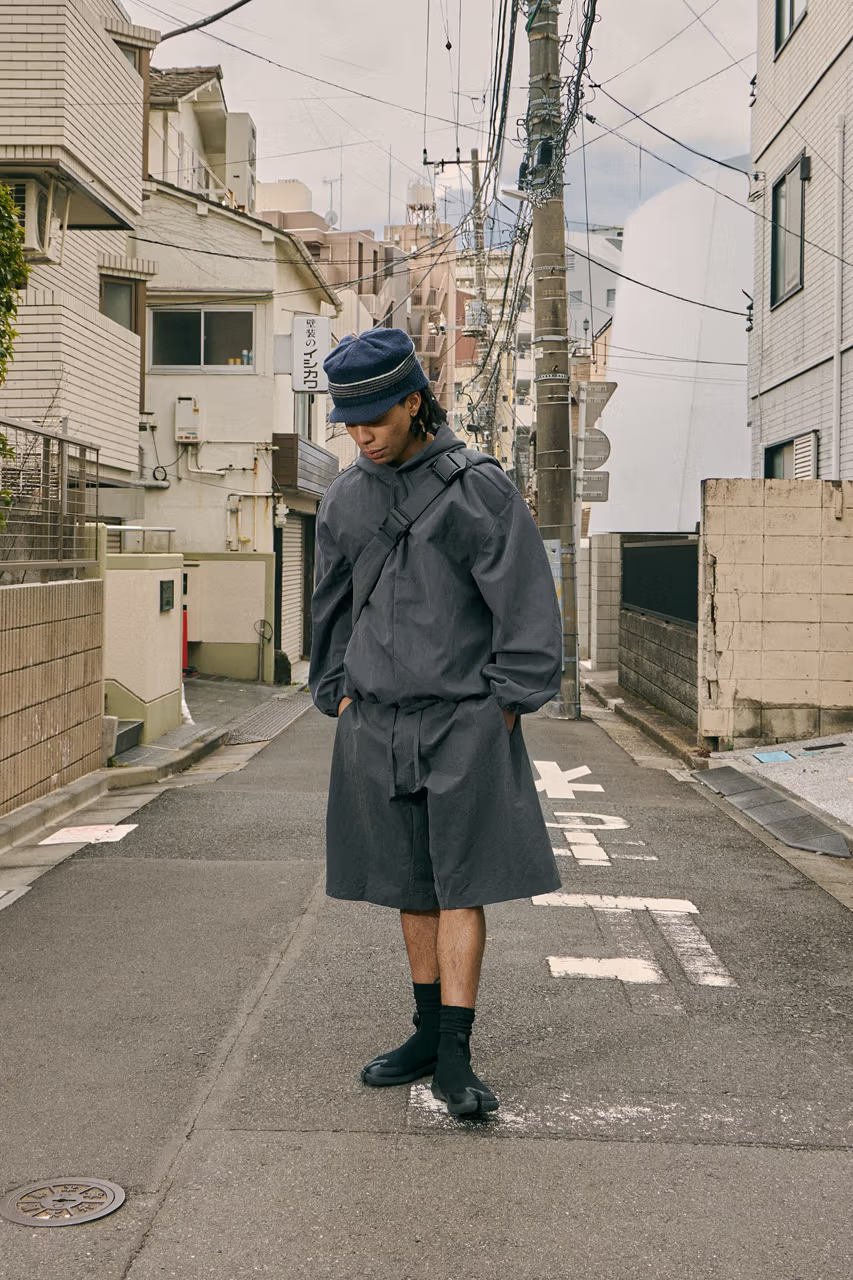 聚焦于服装,该系列延续了 Seventh 一贯的极简廓形、挺括扎实的面料以及低饱和的配色呈现,也能从服装的轮廓以及设计细节中发现品牌向日本传统穿着致敬,例如垮裤与日式校服等灵感来源。工装风格的服装亦巧妙通过不对称的处理,更添时装感。