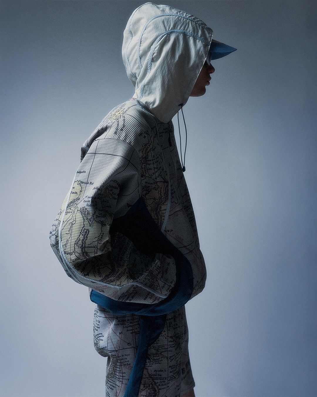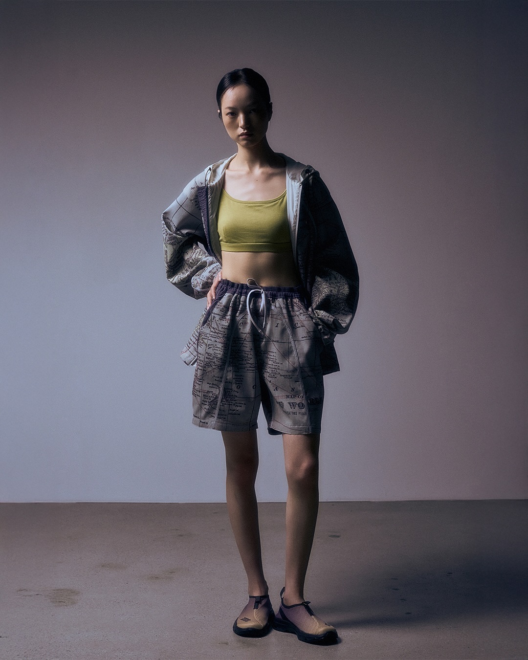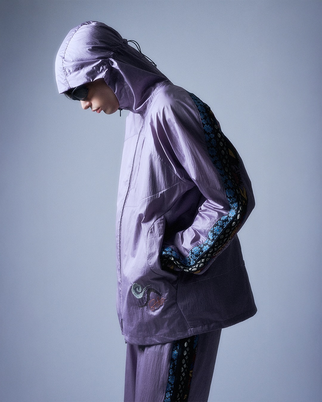 本季系列涵盖轻量防风外套、多口袋工装裤、速干紧身骑行裤、功能背心与多款头戴配件,整体轮廓以宽松、便捷为主,适配春夏出行与机动性需求。配色上延续品牌惯有的深色基调,并大胆引入浅紫、黄褐、冰蓝等偏冷色系,同时辅以地图印花、图腾刺绣、拼接元素等细节,强化视觉辨识度。