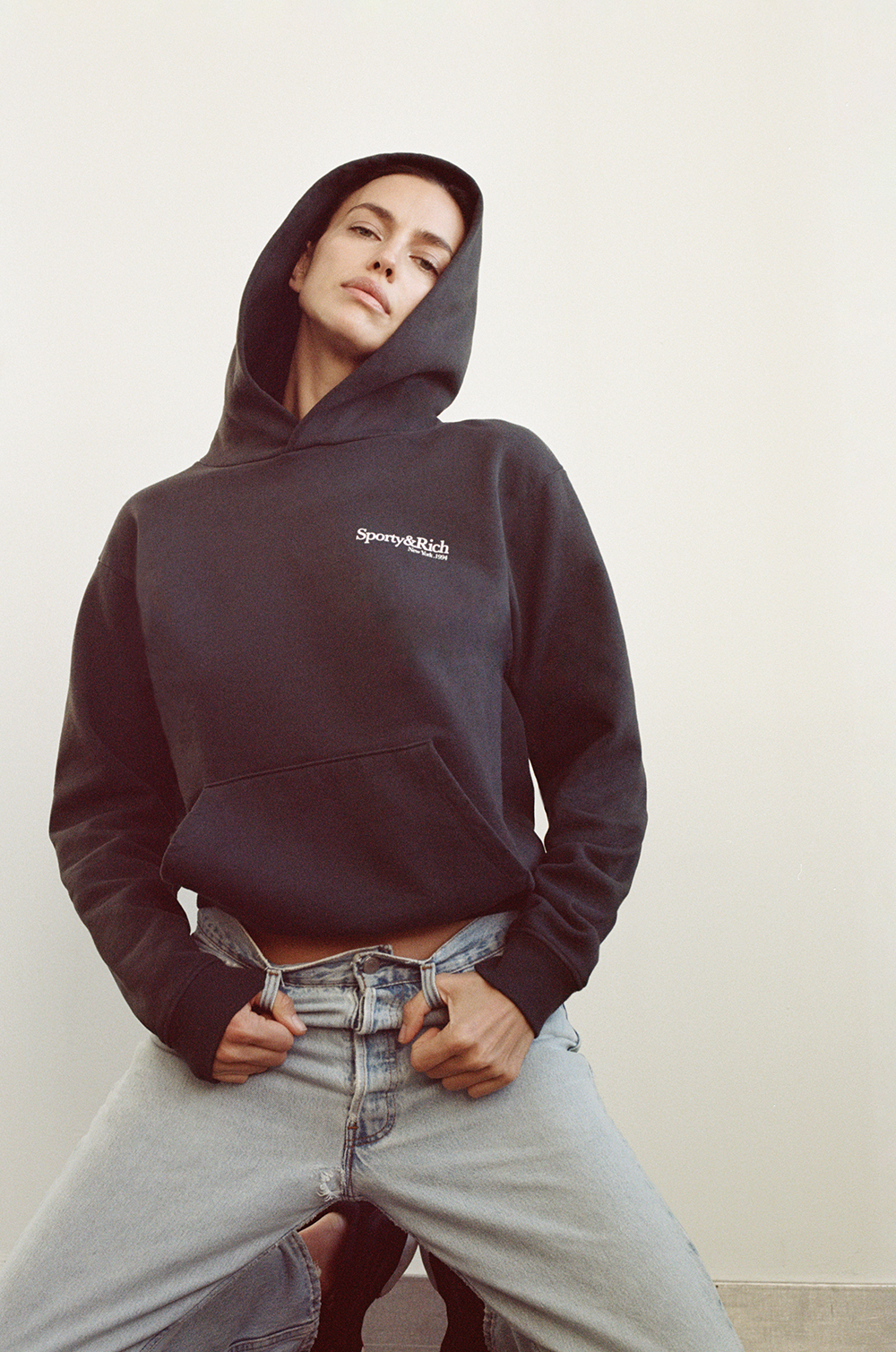Sporty & Rich 所代表的并不仅仅是一种穿衣风格,更是一种态度的传达——从「Be Nice. Get Lots of Sleep. Drink More Water.」到「Health is Wealth」,Emily 通过直白有力的 Slogan,构建了品牌视角下对 Wellness 的定义。全新 SS25 Sports Drop 系列也延续这一理念,由超模 Irina Shayk 出境演绎。复古鲜亮的色系,搭配百搭松弛的休闲套装,唤起怀旧同时注入现代态度。