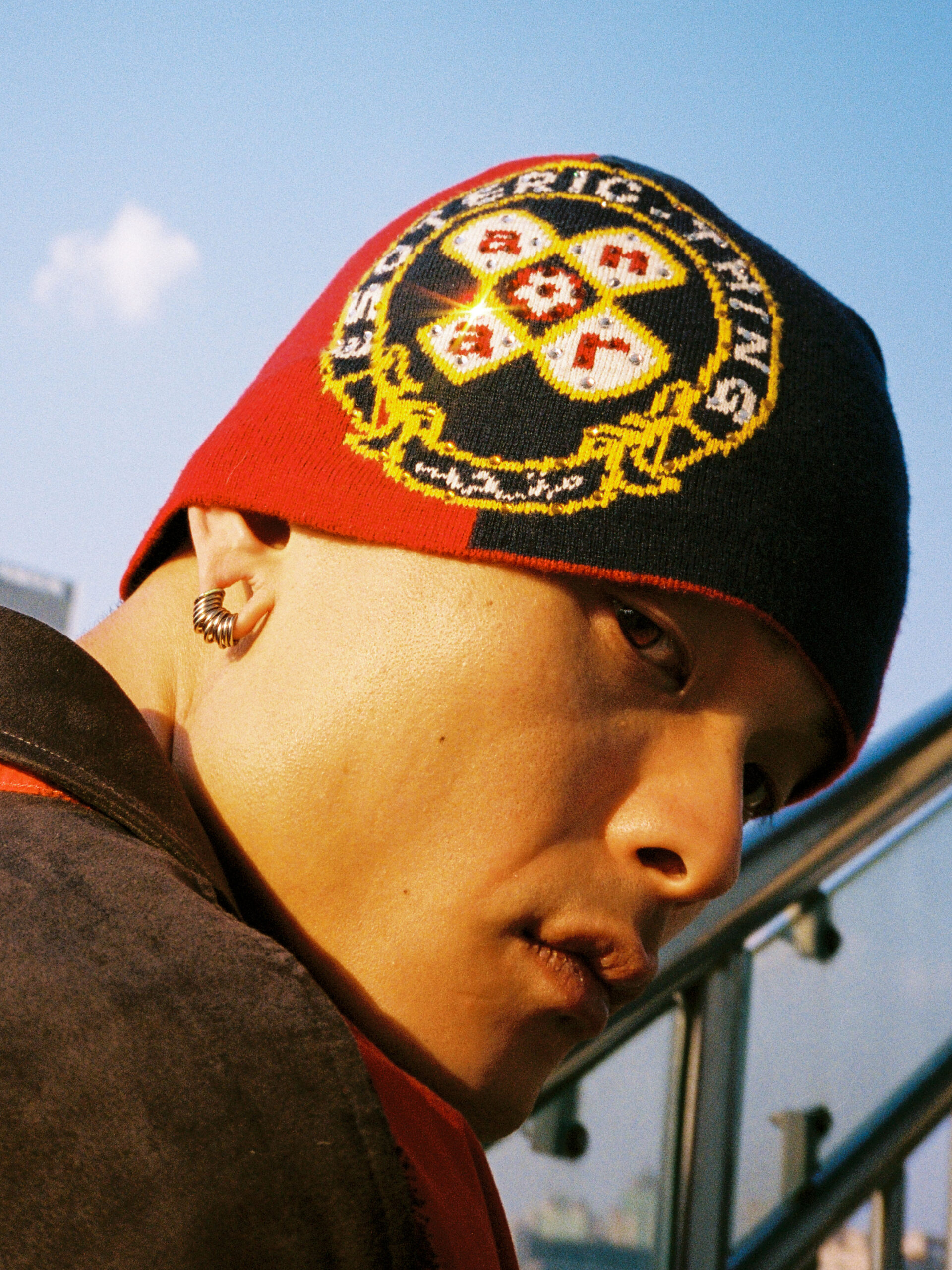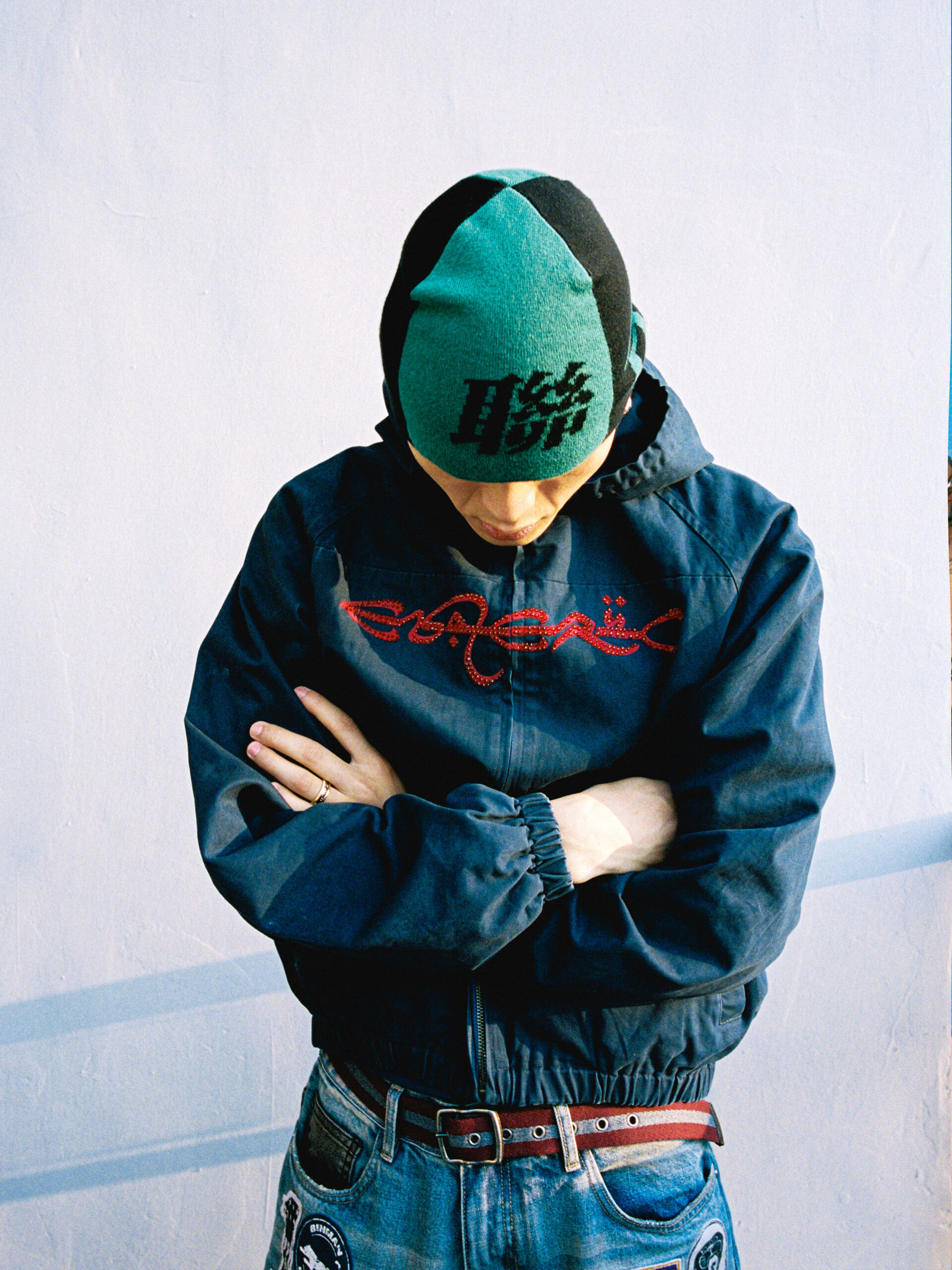 连帽夹克与做旧牛仔裤亦为本系列重磅单品。夹克采用短宽廓形,前后的 Logo 元素与环形徽章图案均饰以满钻效果以提升产品细节;做旧牛仔裤采用刺绣徽章工艺,结合水洗做旧质感传递品牌一贯的复古感受,刺绣徽章内容在同系列的黑色货车帽中也有体现。