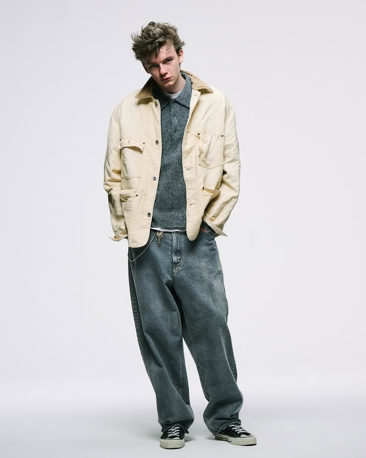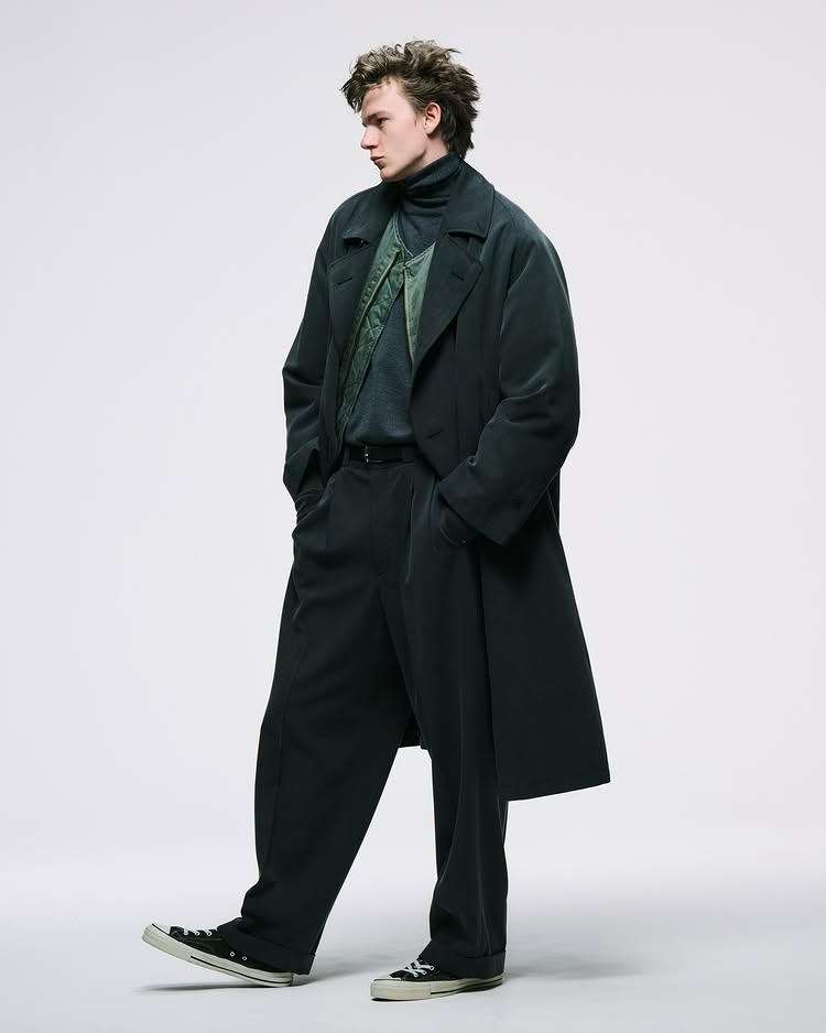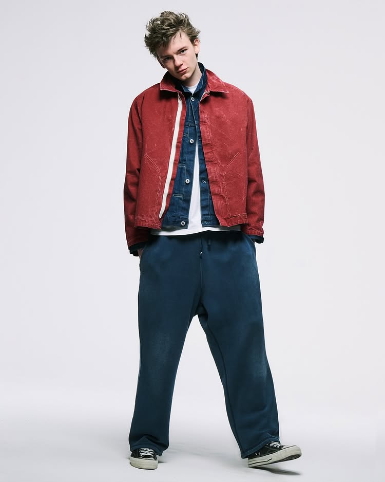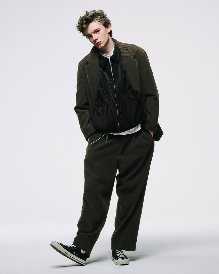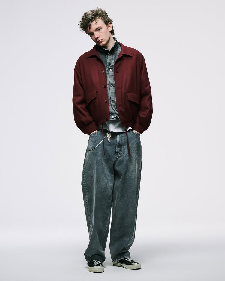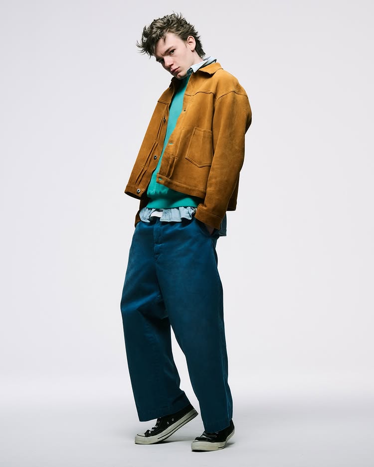 日本新锐男装品牌 A.PRESSE 即将推出 2025 年春夏系列的第二部分。在一组延续品牌一贯极简风格的形象拍摄中,创始人重松一真以擅长的复古语汇与工艺细节,探索运动服、军装与剪裁服饰之间的自然衔接。各类面料交错组合,呈现出一种不经意却经精准拿捏的混搭结构。