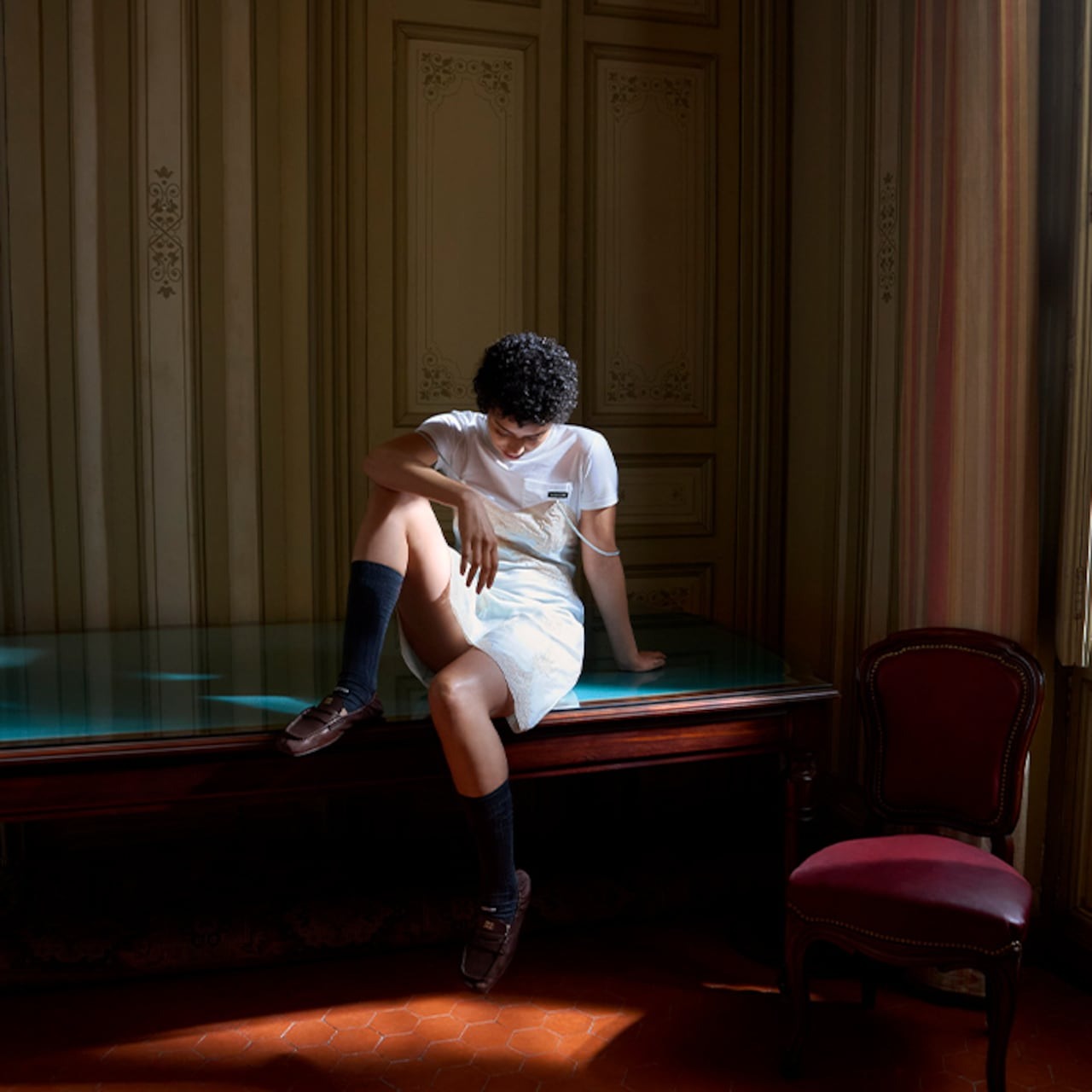 Martin 的设计灵感源自 1920 年代法国南部的异乡艺术家社群,辅以对战间时期浪漫氛围的想象,勾勒出一群恍若百年前流连圣特罗佩的波西米亚后代,穿梭于褪色庄园与微光之中。系列大量选用全球古着市场搜集而来的旧针织面料、丹宁布与古董蕾丝等素材,辅以回收羊绒与再生工艺,为廓形宽松的套头衫、带水手领的外套以及礼服等单品赋予新的生命与意涵。同时,Martin 也为本次合作首次手持导筒,摄制短片《Grande Envie》,以虚构人物为线索,为系列灵感构建出完整而梦幻的视觉呈现。据悉,系列单品将于 6 月 7 日率先登陆伦敦 New Bond Street Miu Miu 旗舰店,并在店内独家发售两周,6 月 21 日起陆续登陆全球指定门店。